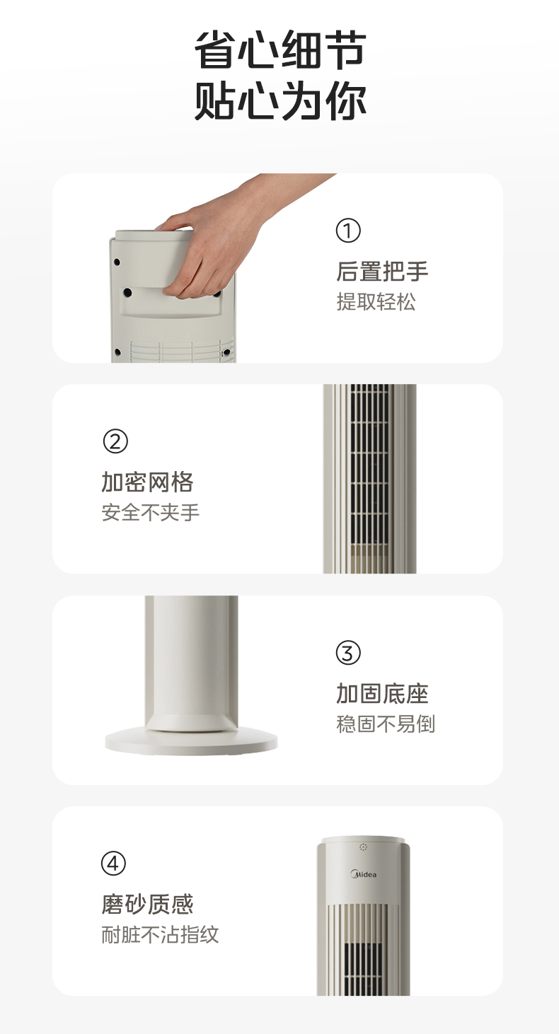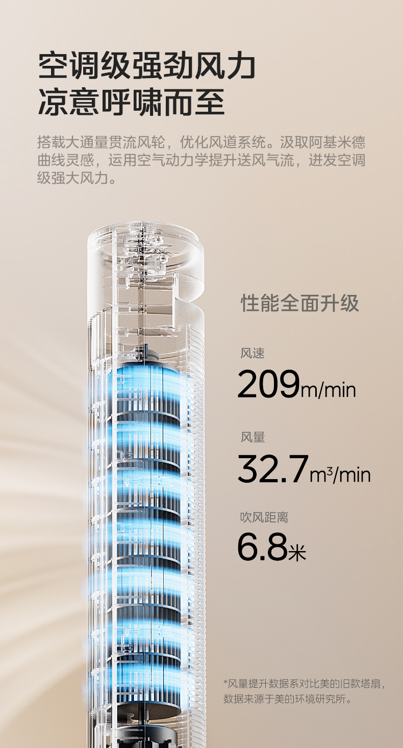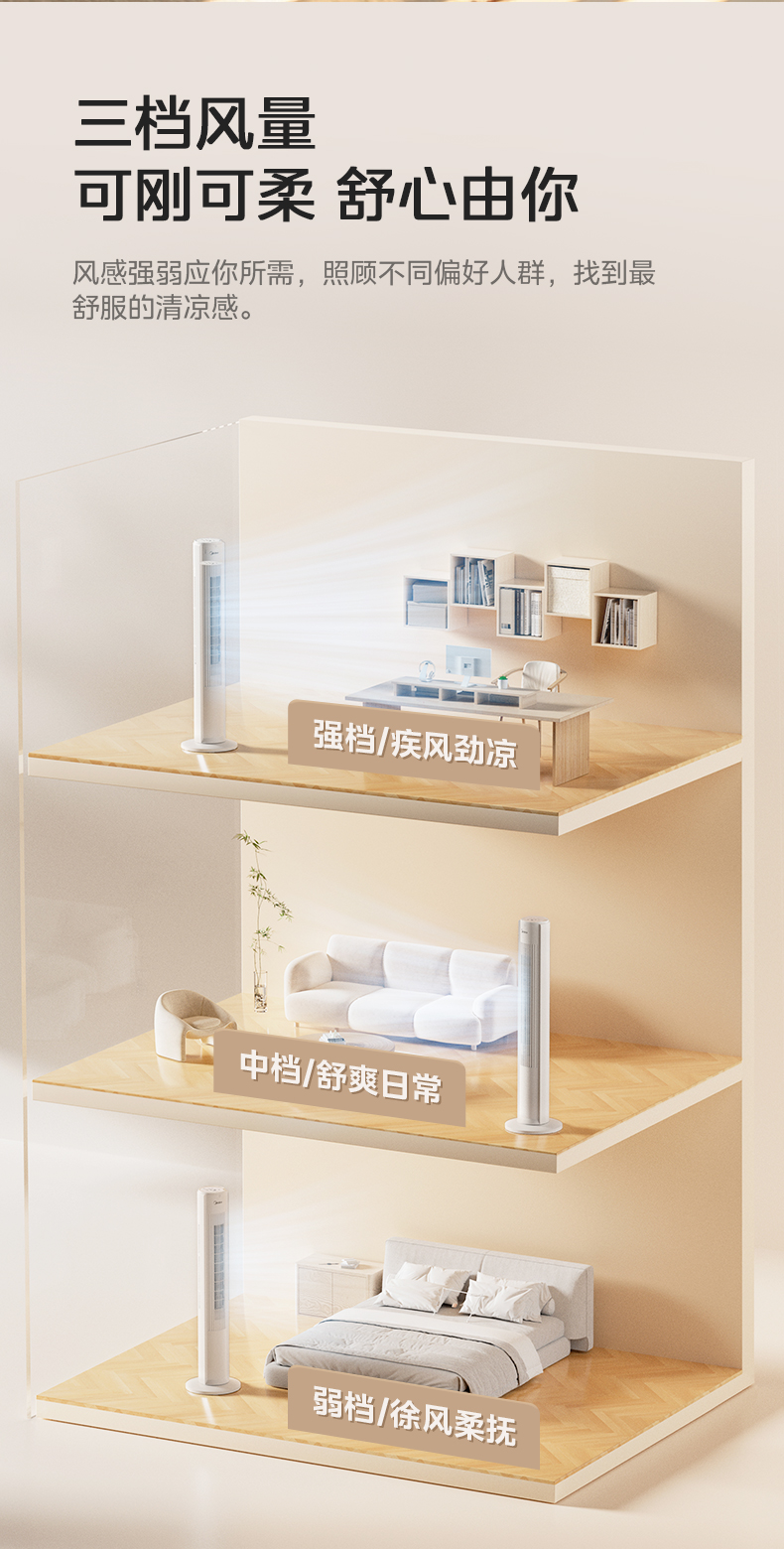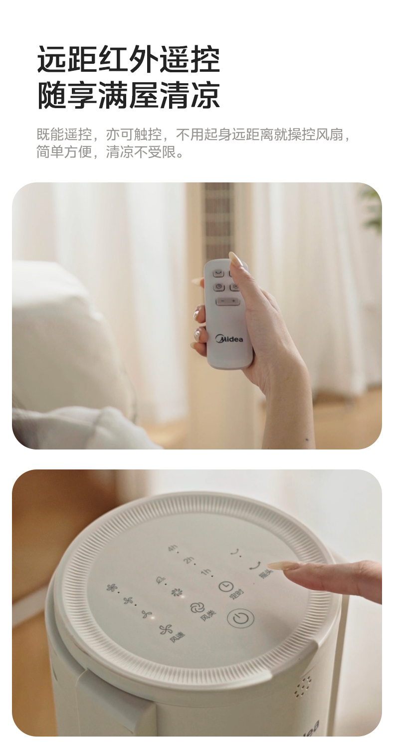 美的塔扇25升级款电风扇家用无叶风扇轻音塔式落地扇