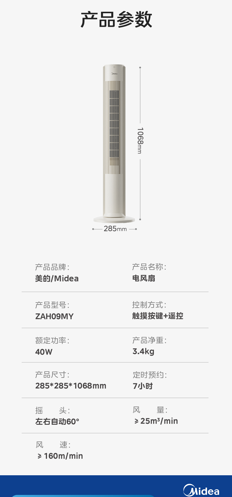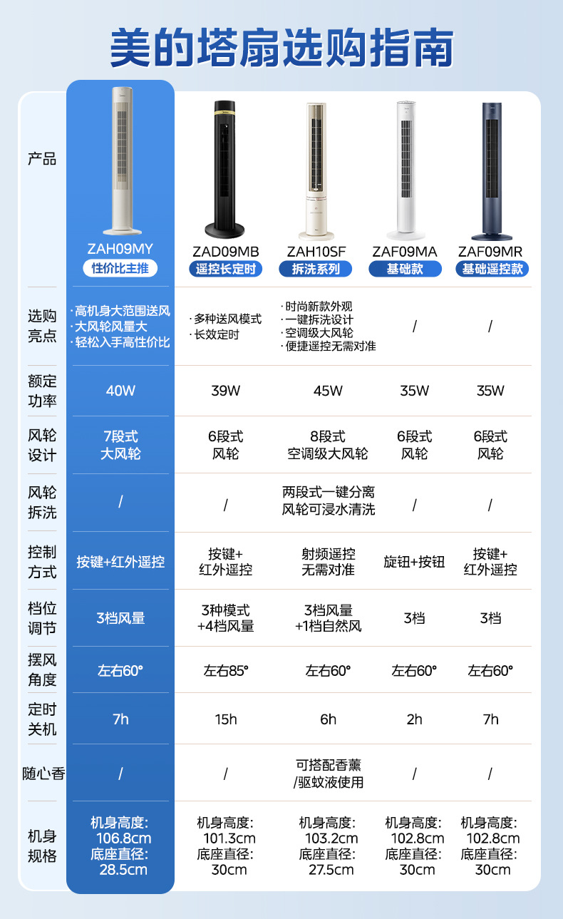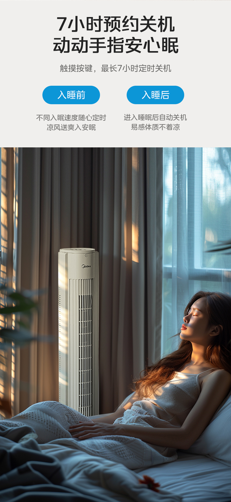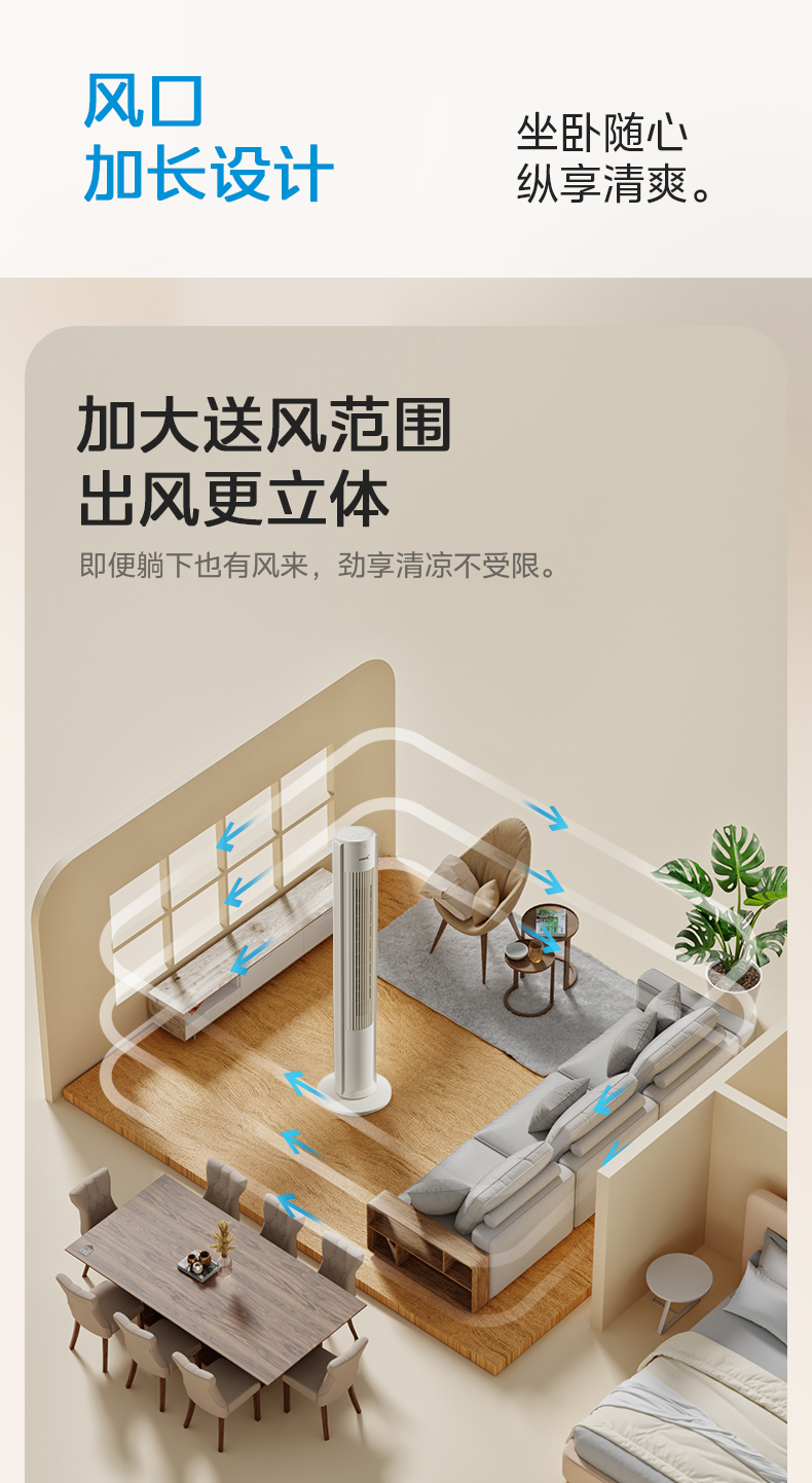 美的塔扇25升级款电风扇家用无叶风扇轻音塔式落地扇