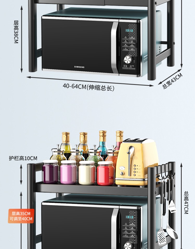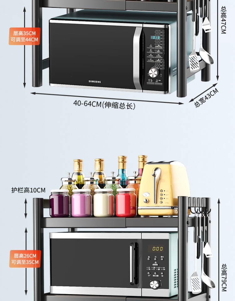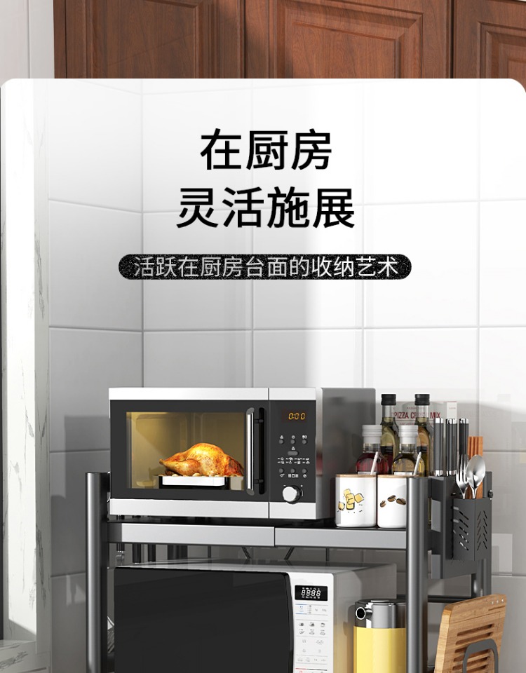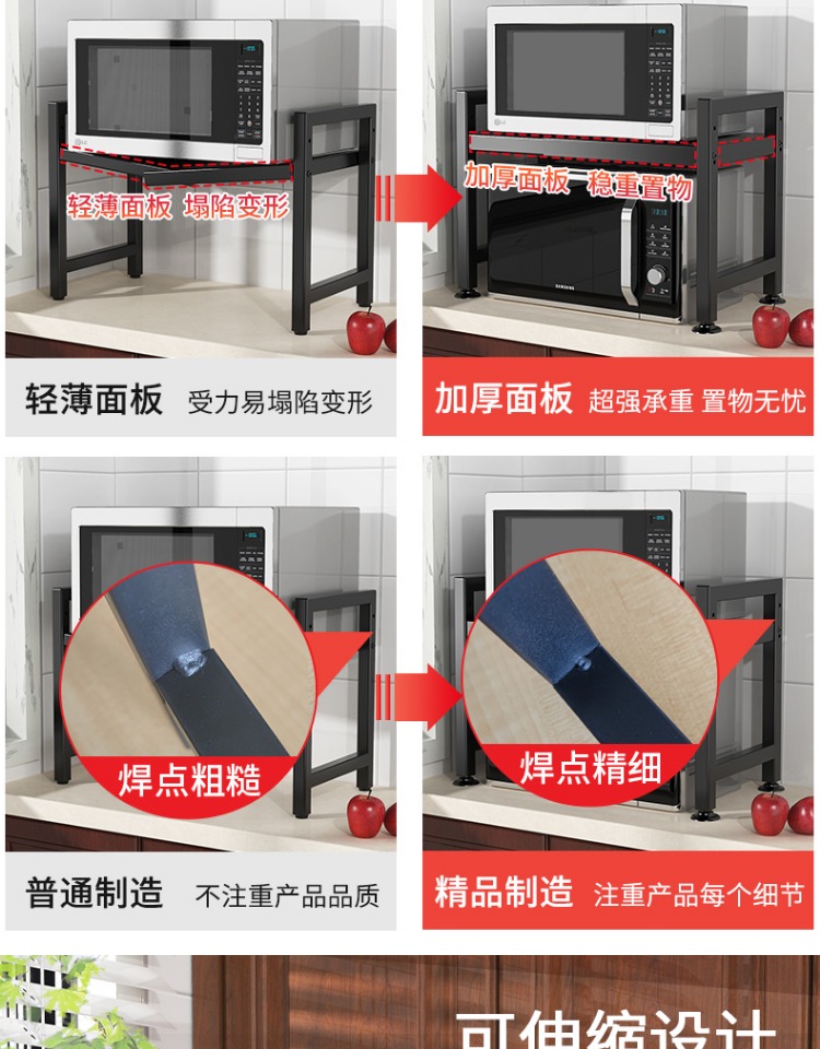 可伸缩厨房微波炉置物架多功能电饭锅煲收纳架子家用台面烤箱支架