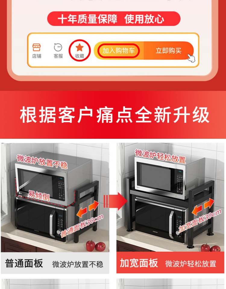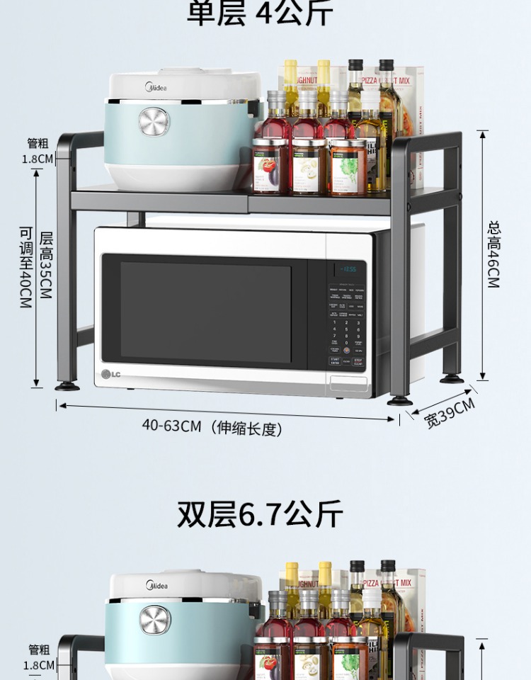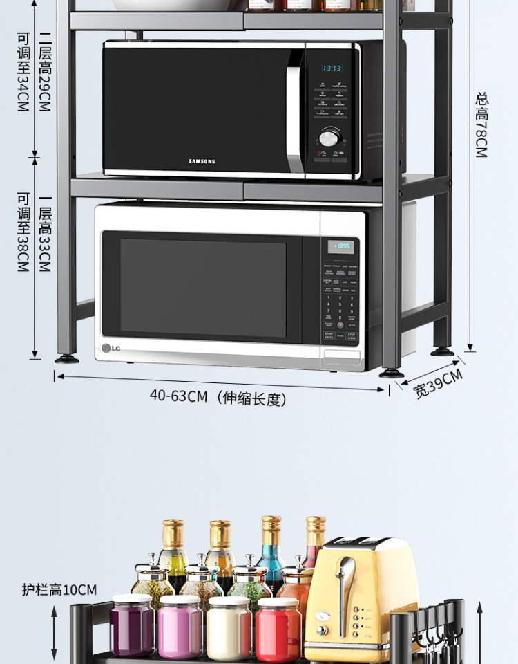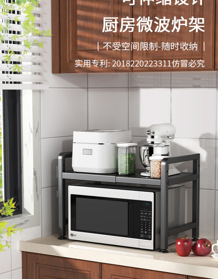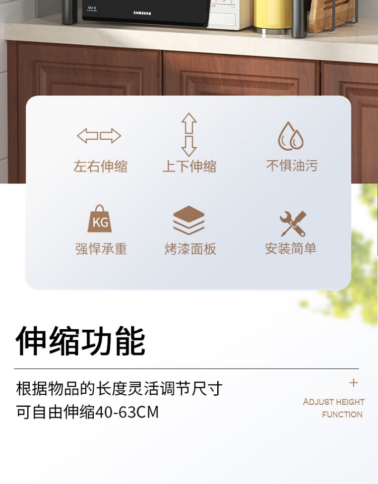 可伸缩厨房微波炉置物架多功能电饭锅煲收纳架子家用台面烤箱支架