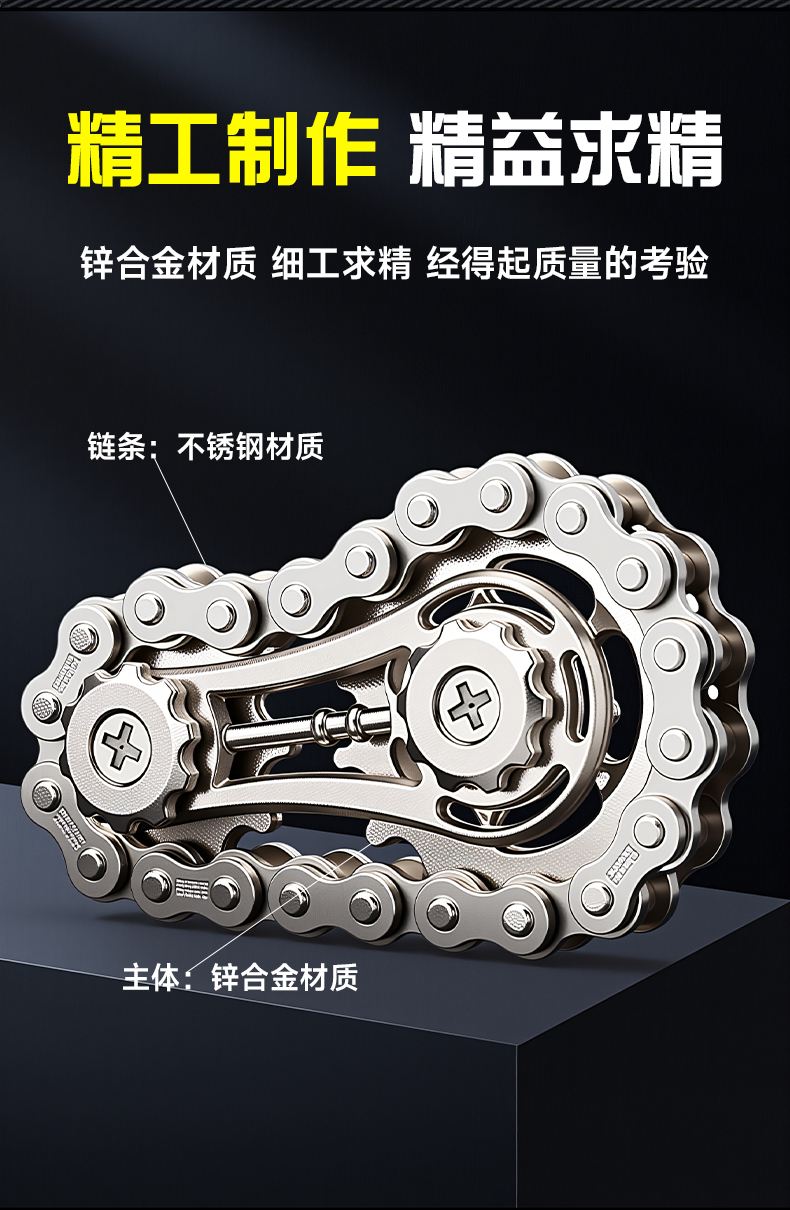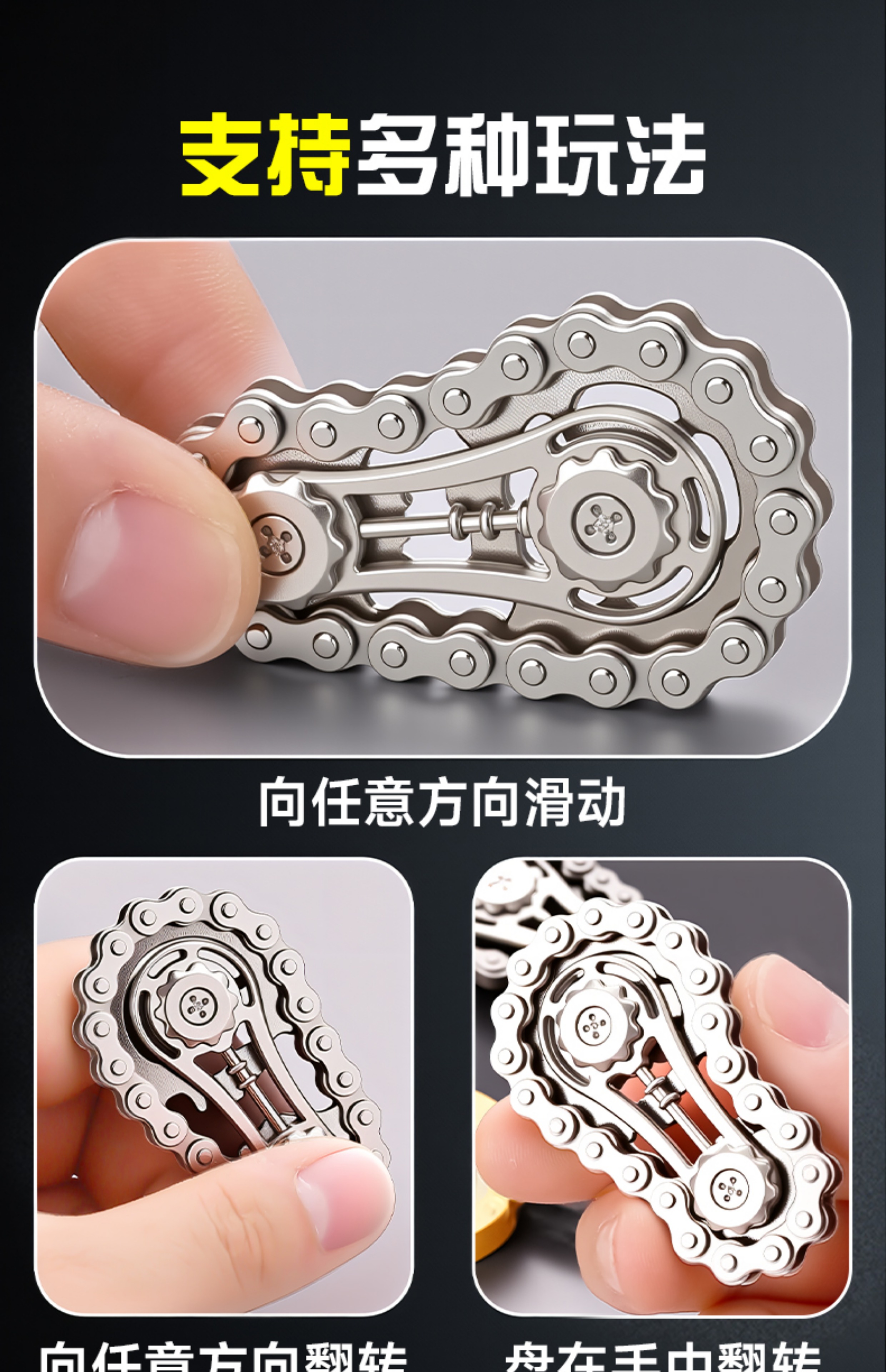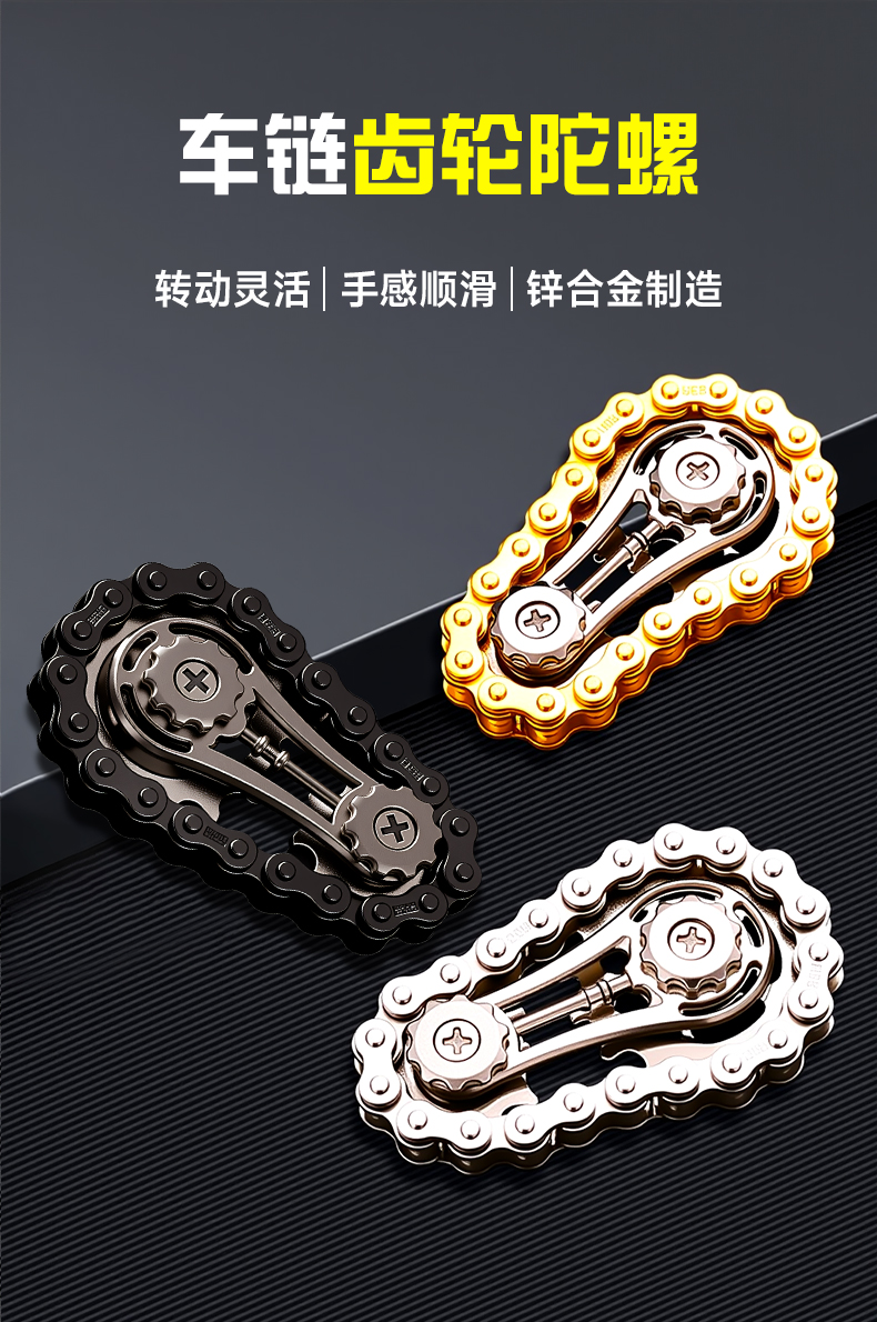 齿轮指尖陀螺玩具链齿金属机械把玩手件手指旋转解压手把件链条