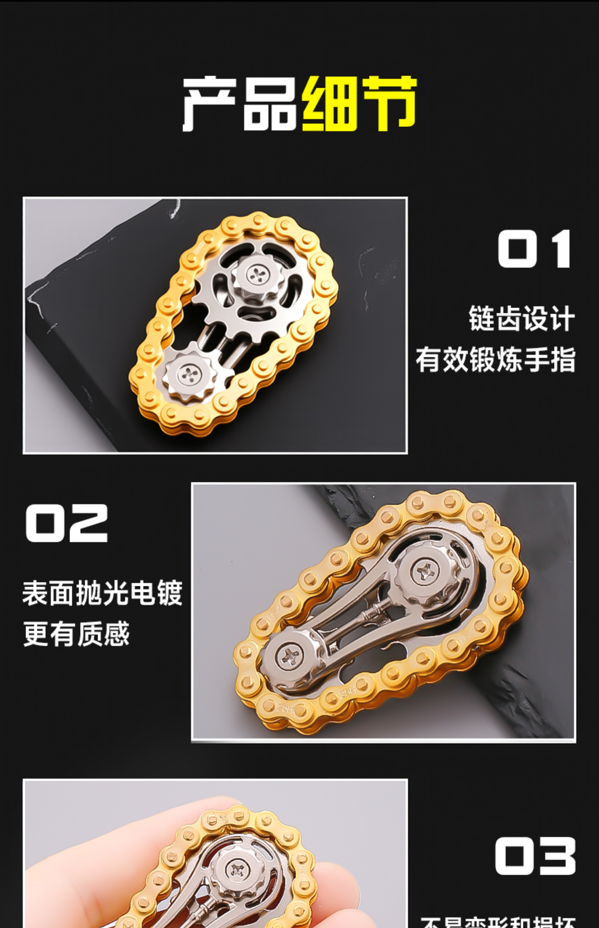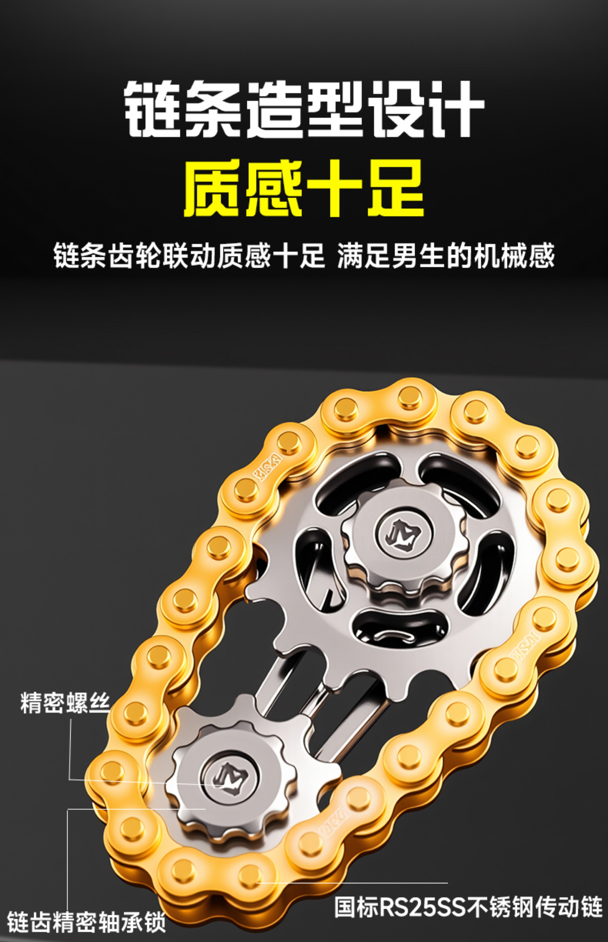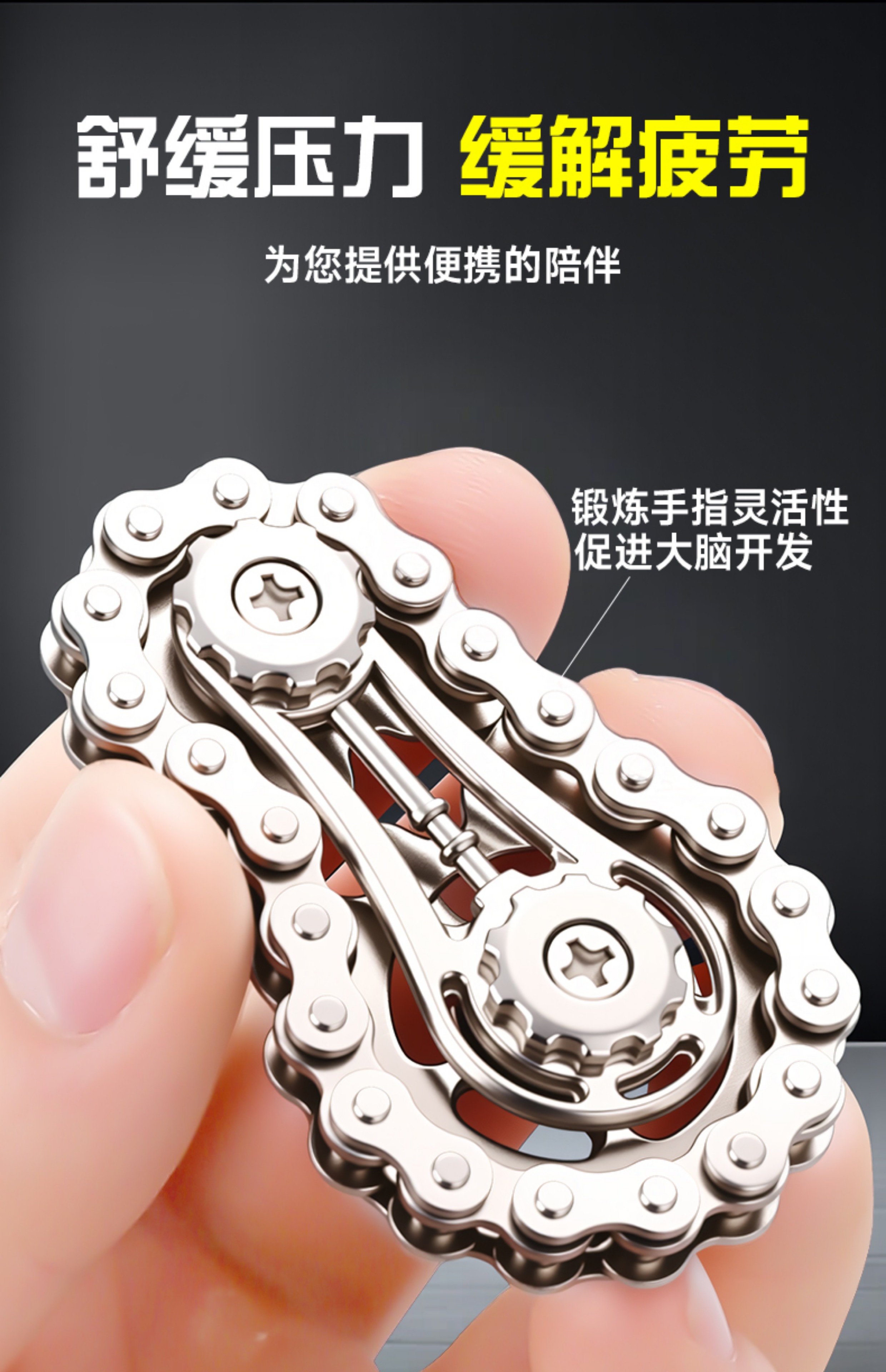 齿轮指尖陀螺玩具链齿金属机械把玩手件手指旋转解压手把件链条