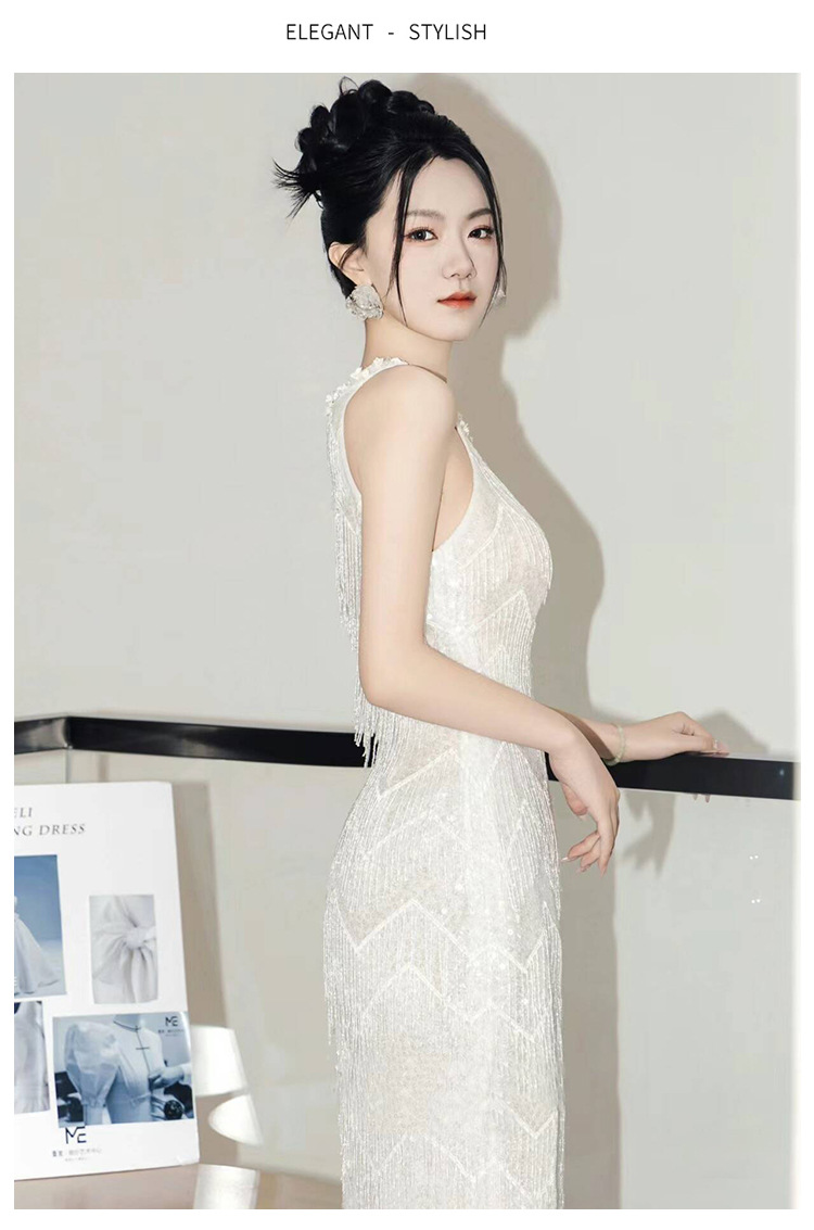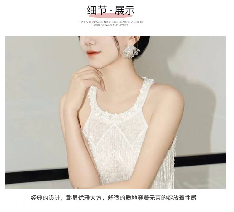 亮片轻婚纱细闪高端轻奢白色挂脖法式出门纱鱼尾流苏晨袍礼服显瘦