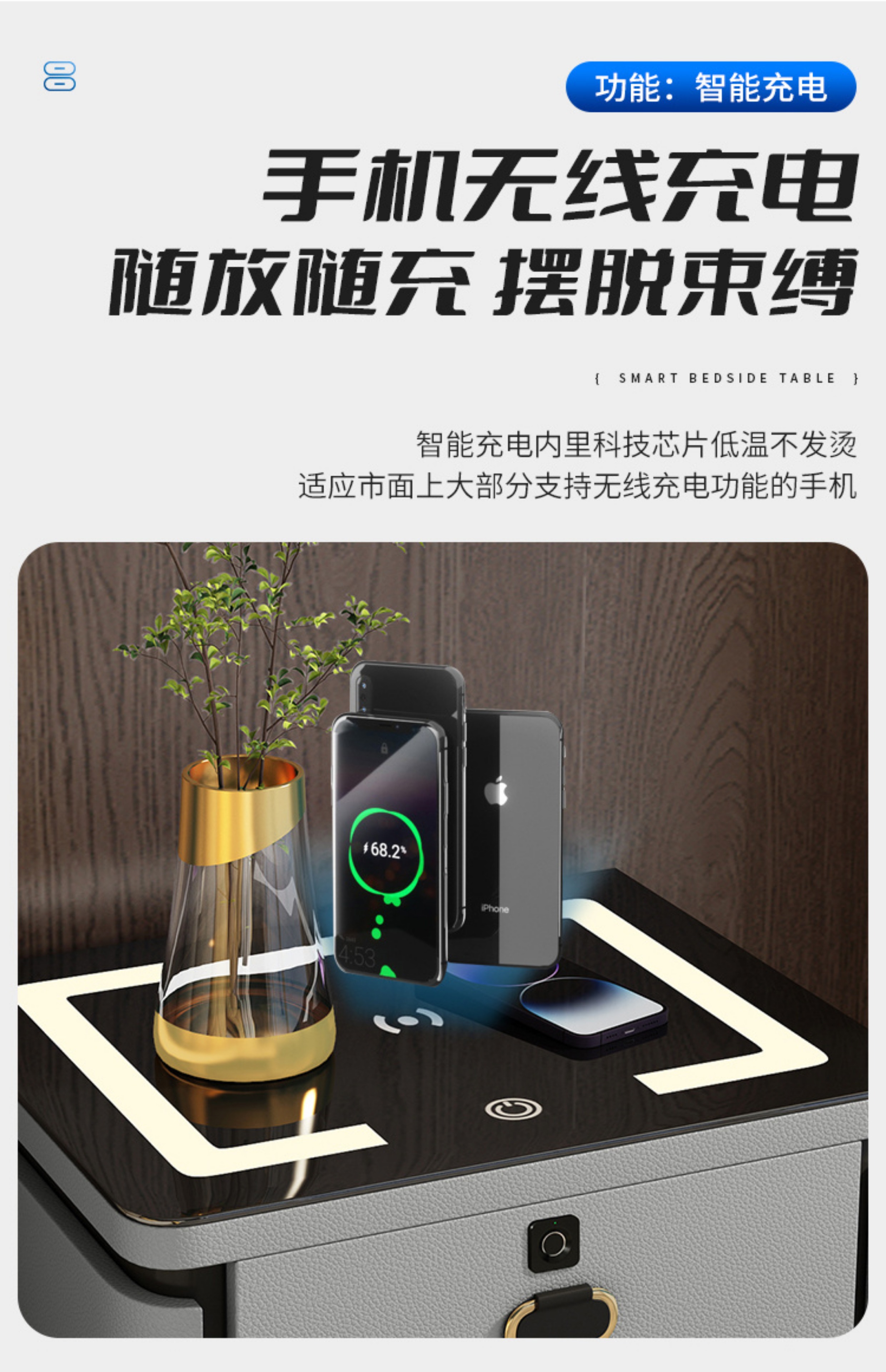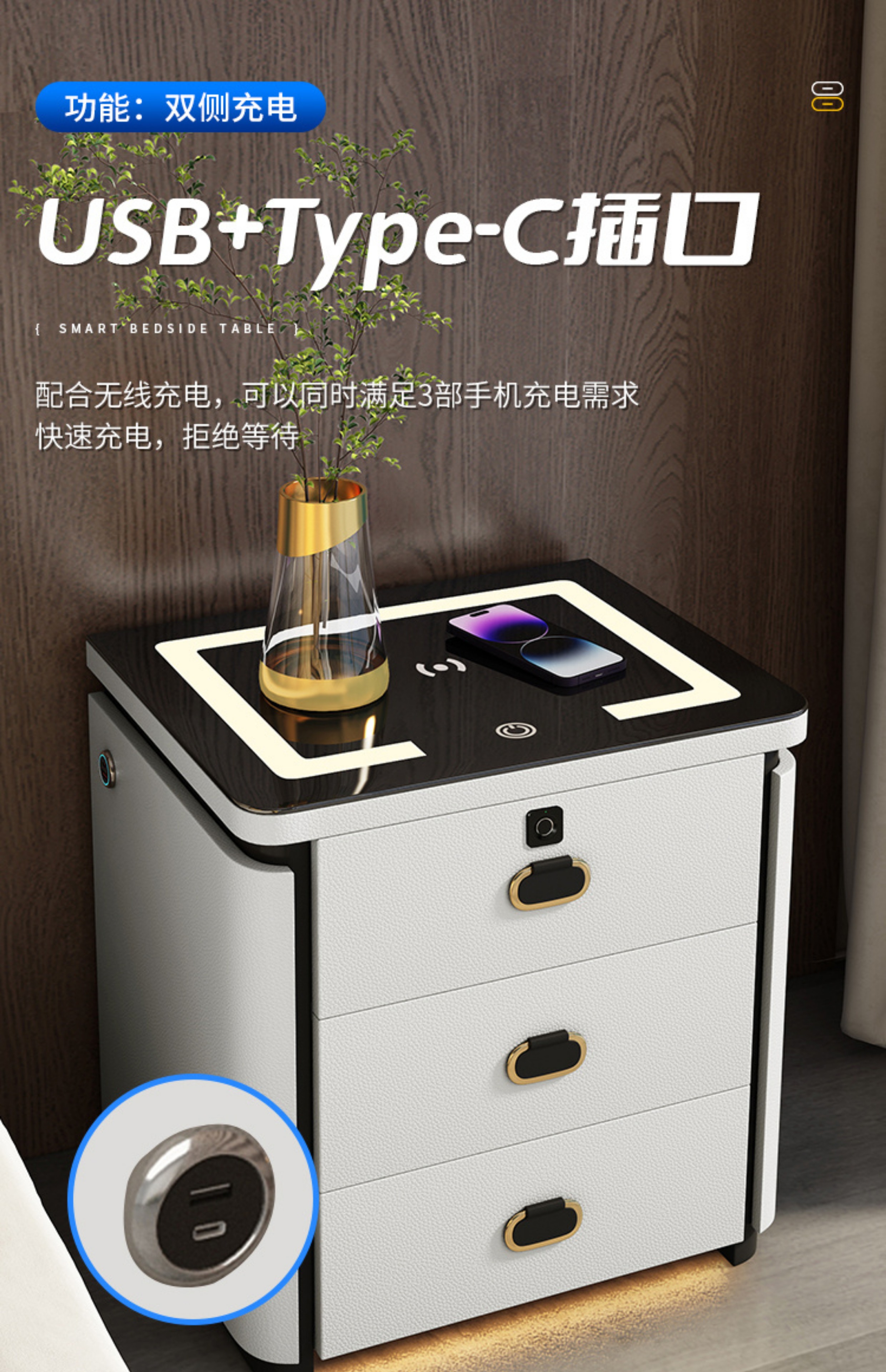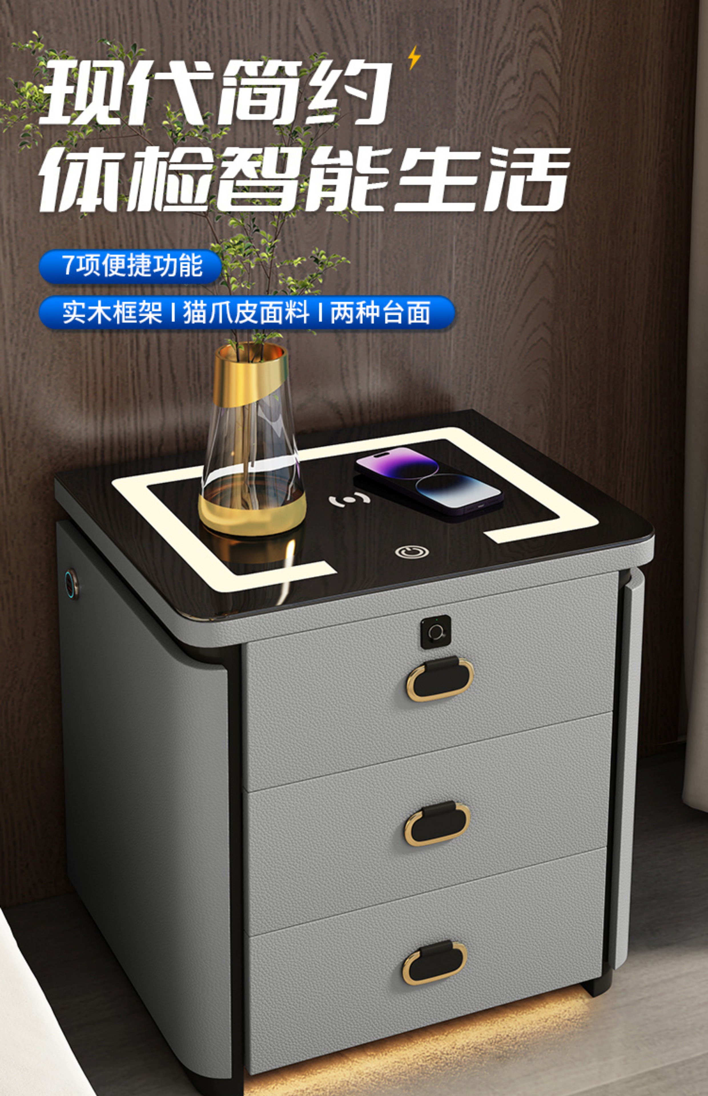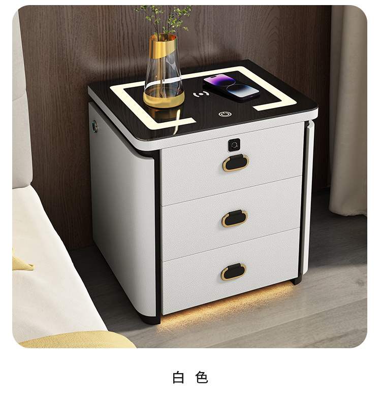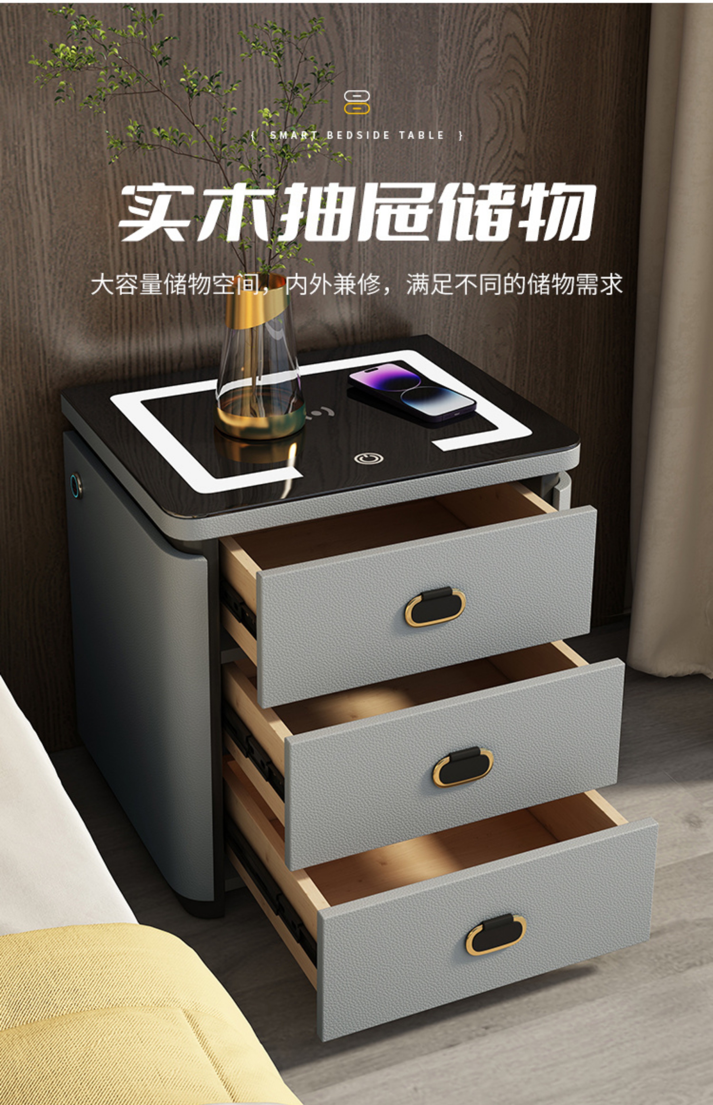 智能床头柜简约现代多功能带锁无线充电实木网红款轻奢三抽床边柜