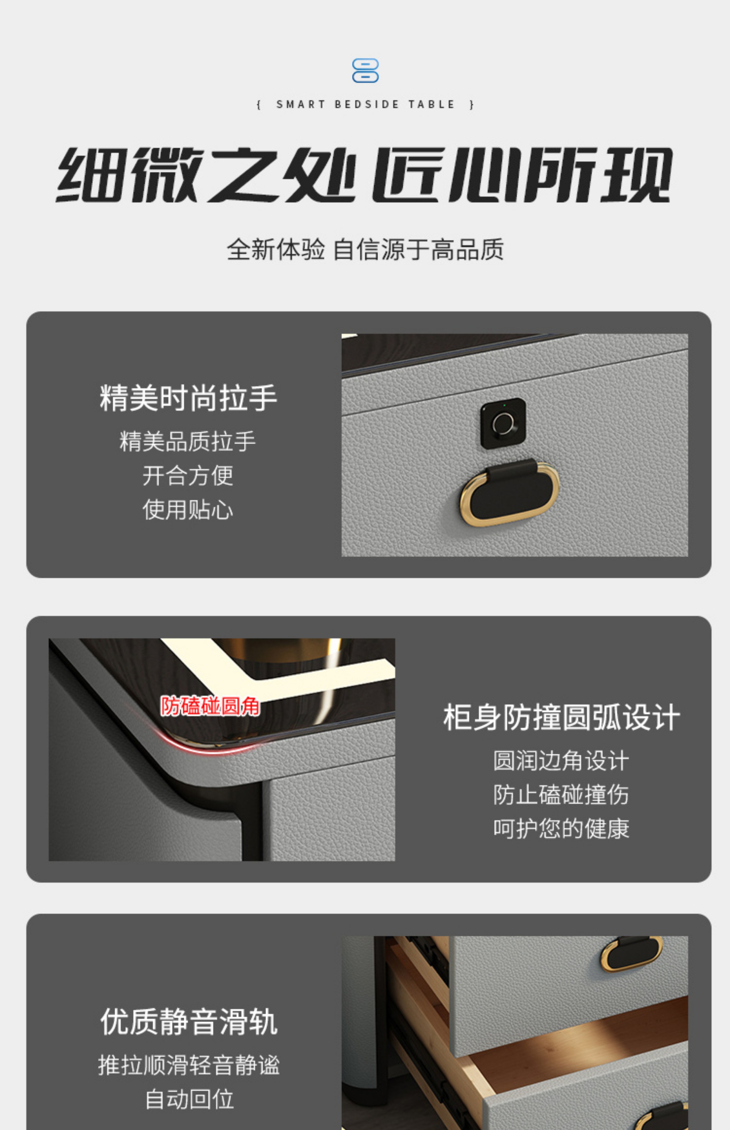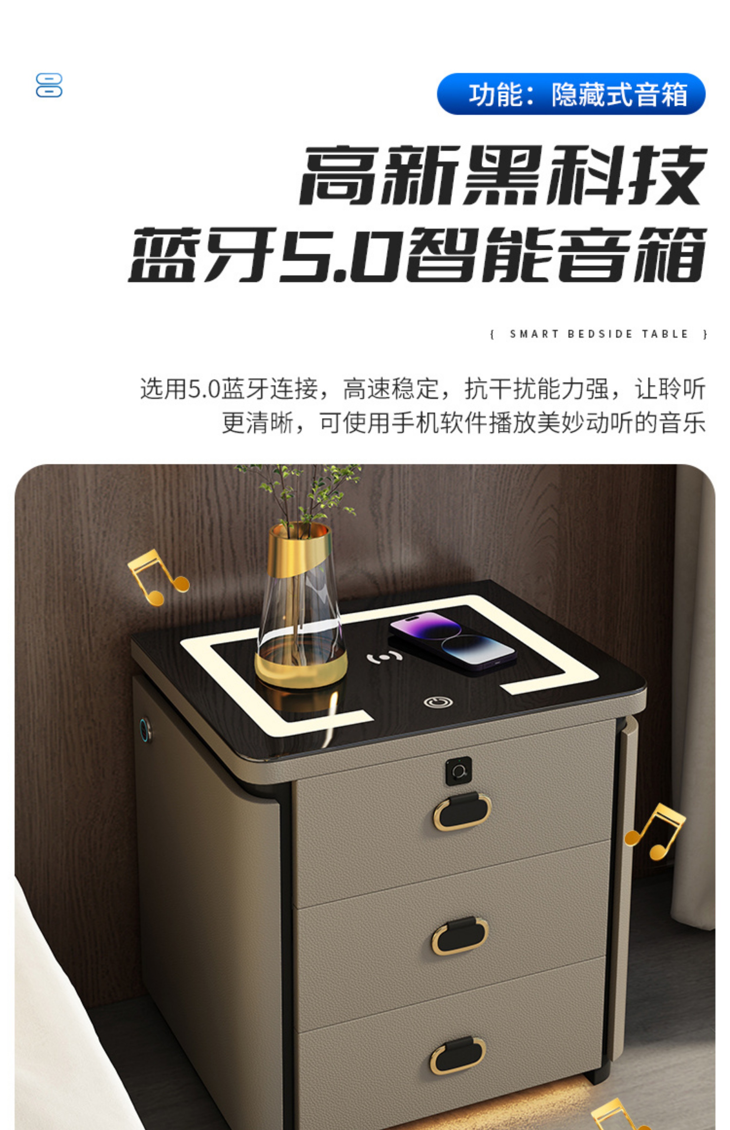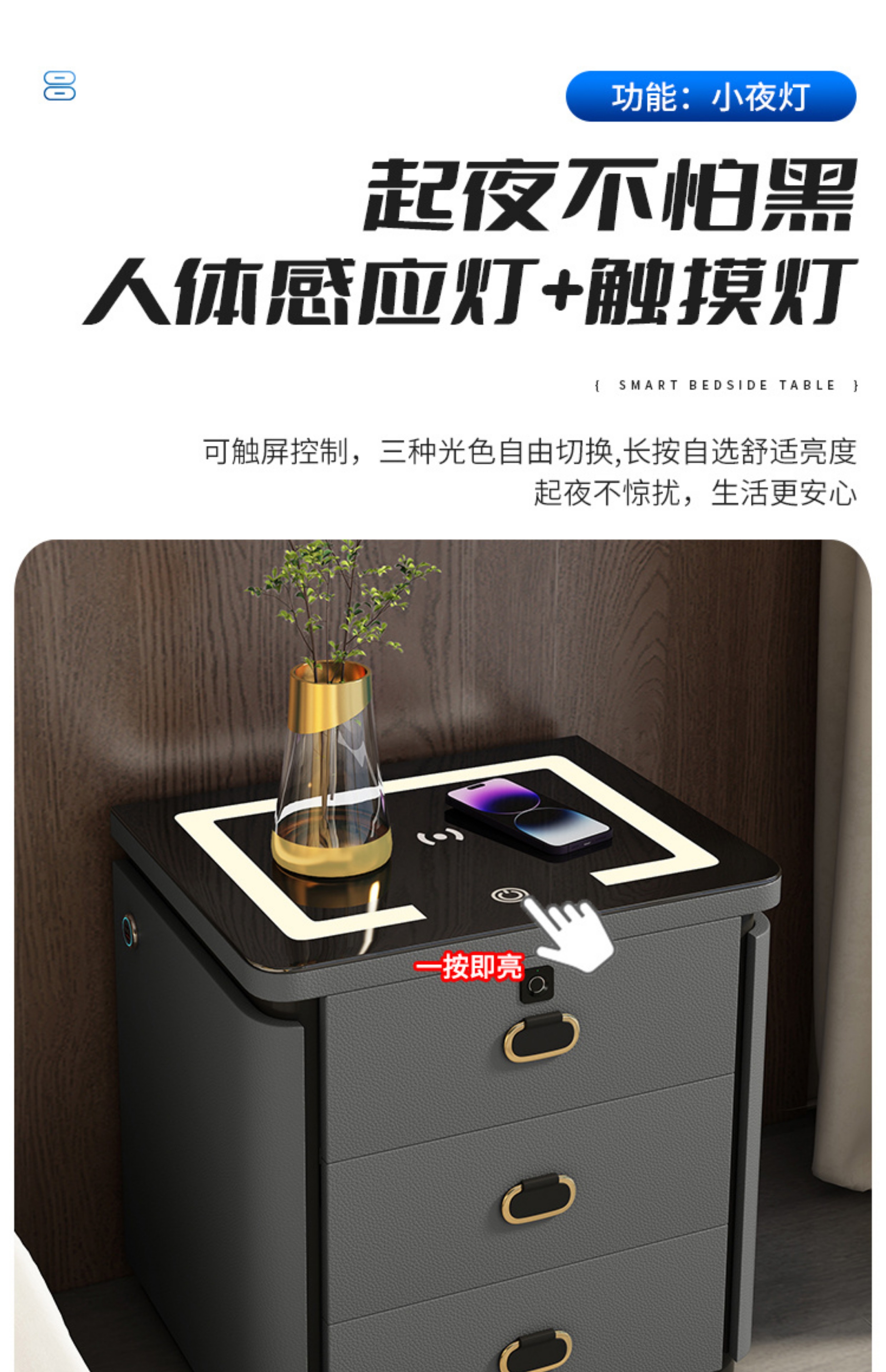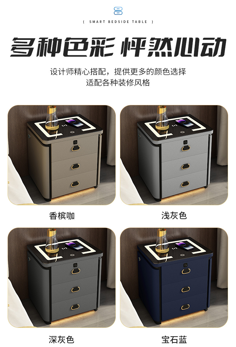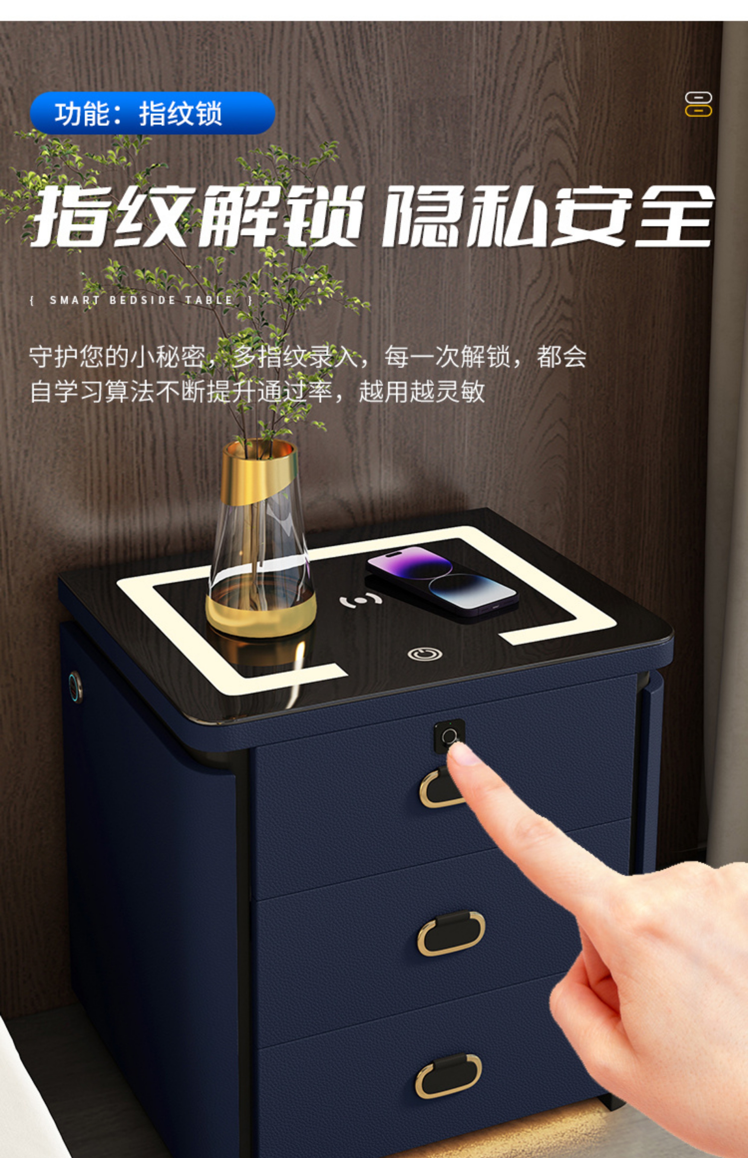 智能床头柜简约现代多功能带锁无线充电实木网红款轻奢三抽床边柜