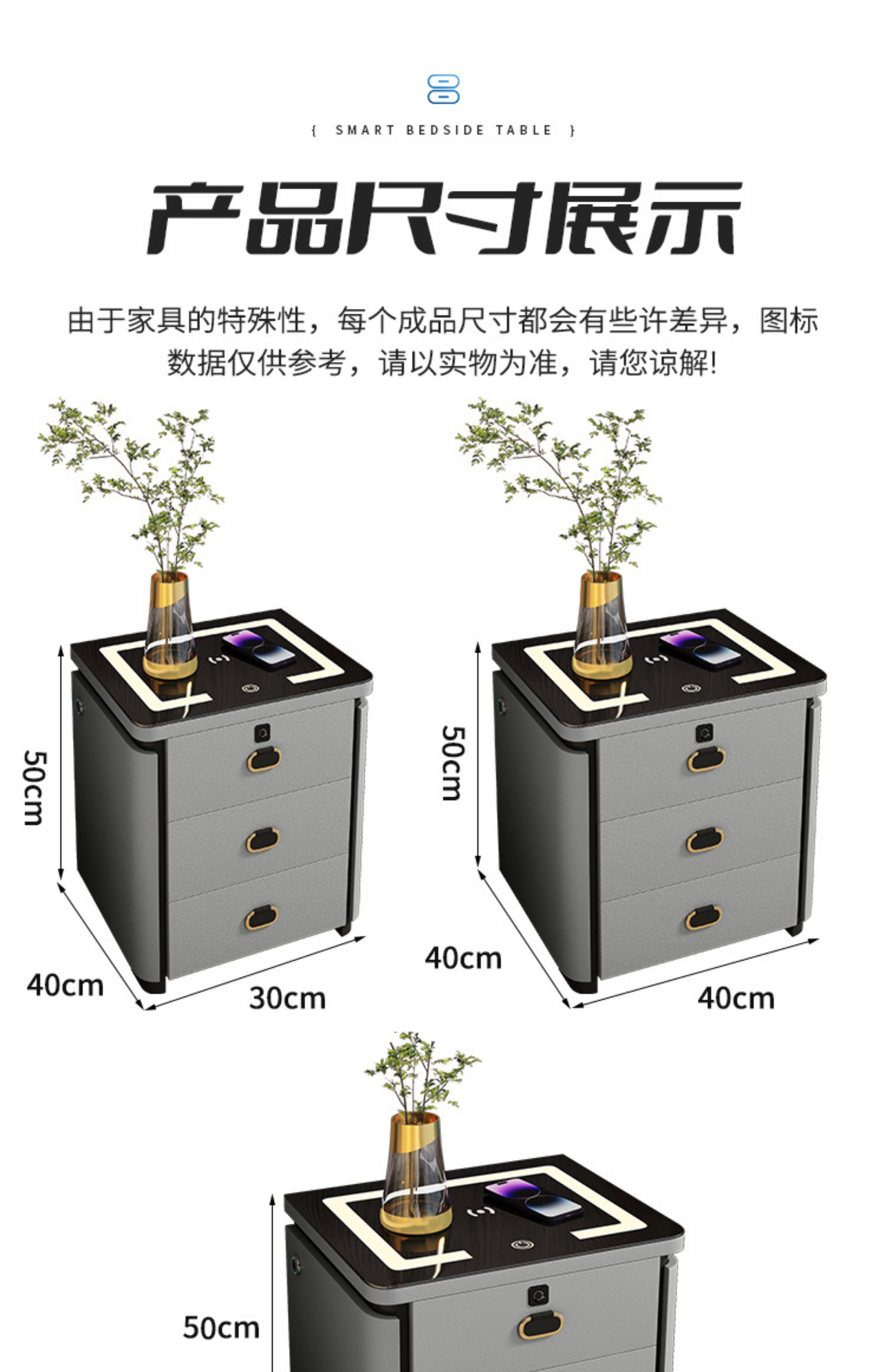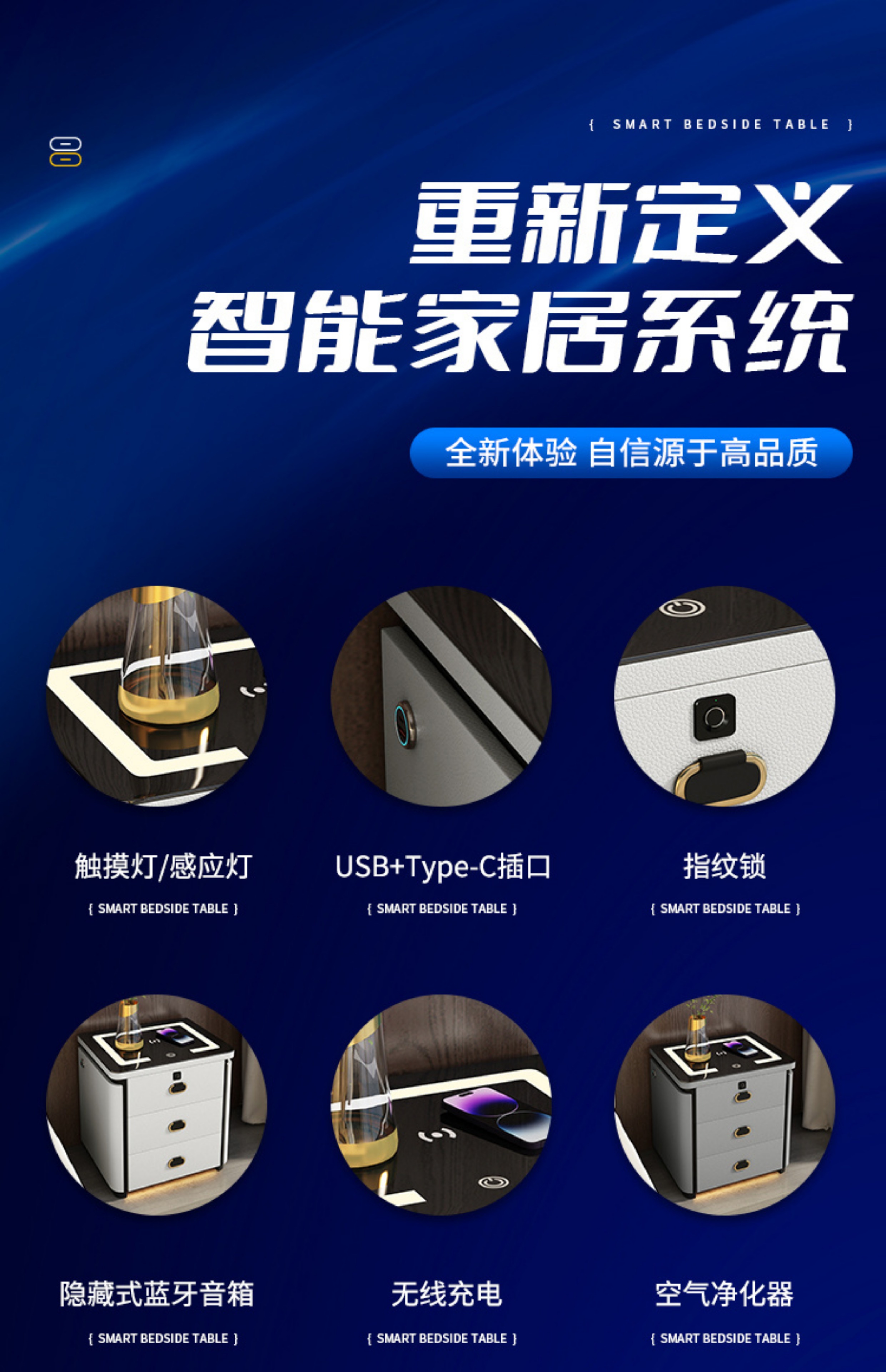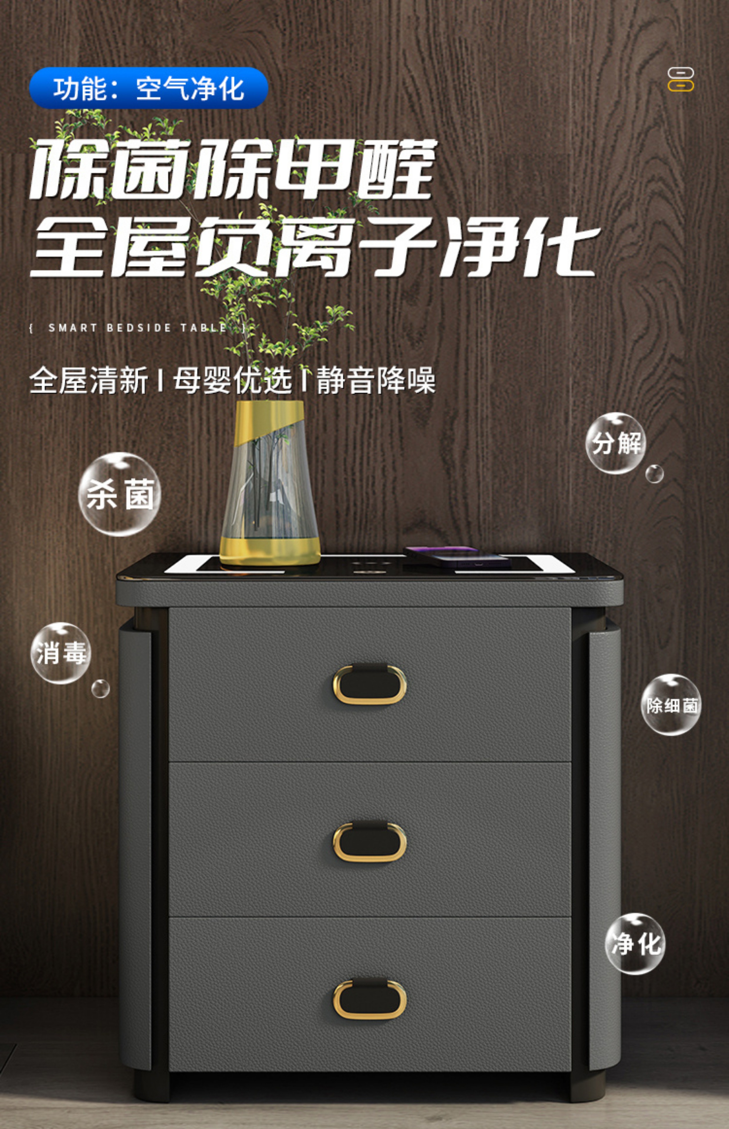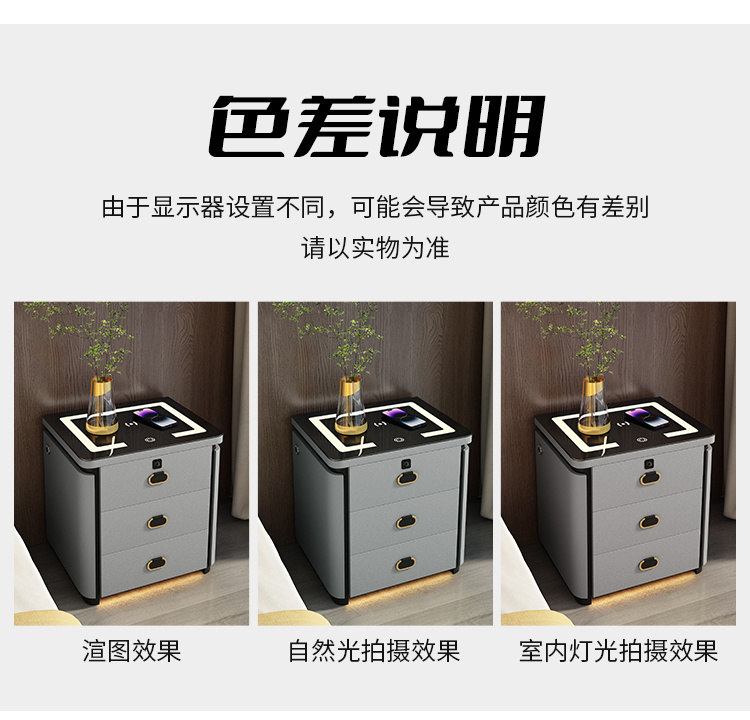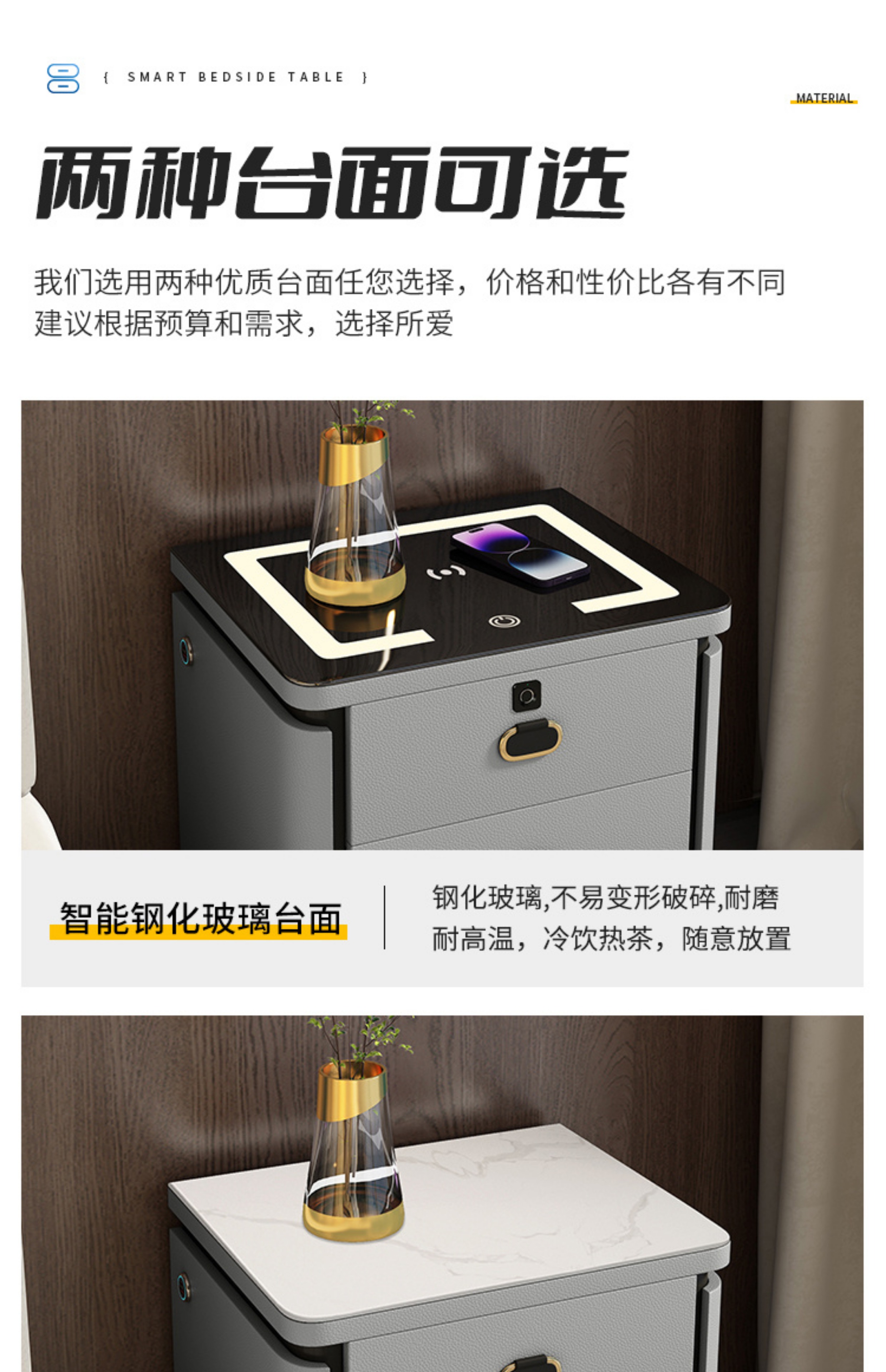 智能床头柜简约现代多功能带锁无线充电实木网红款轻奢三抽床边柜