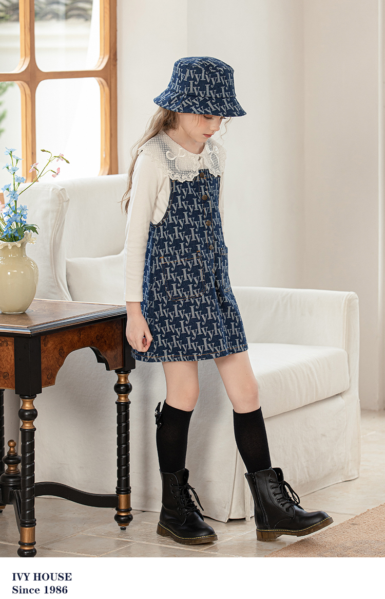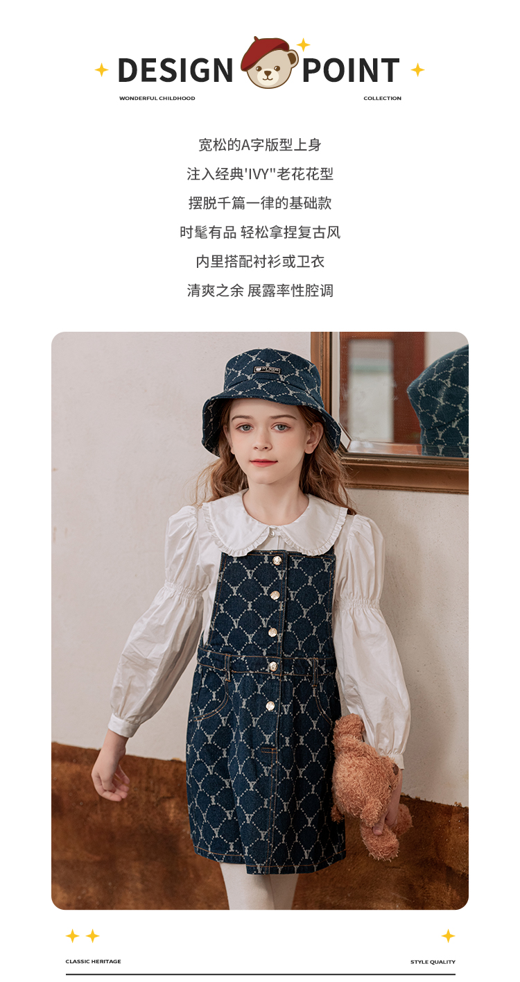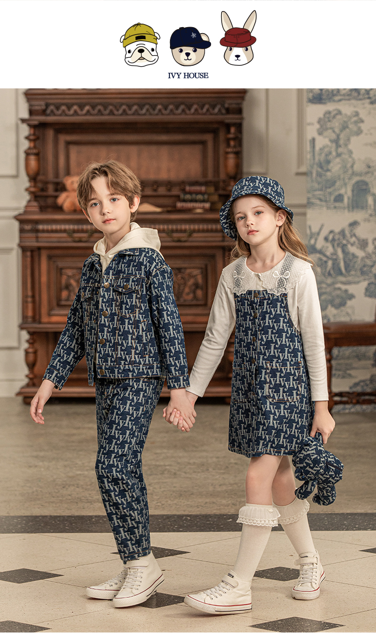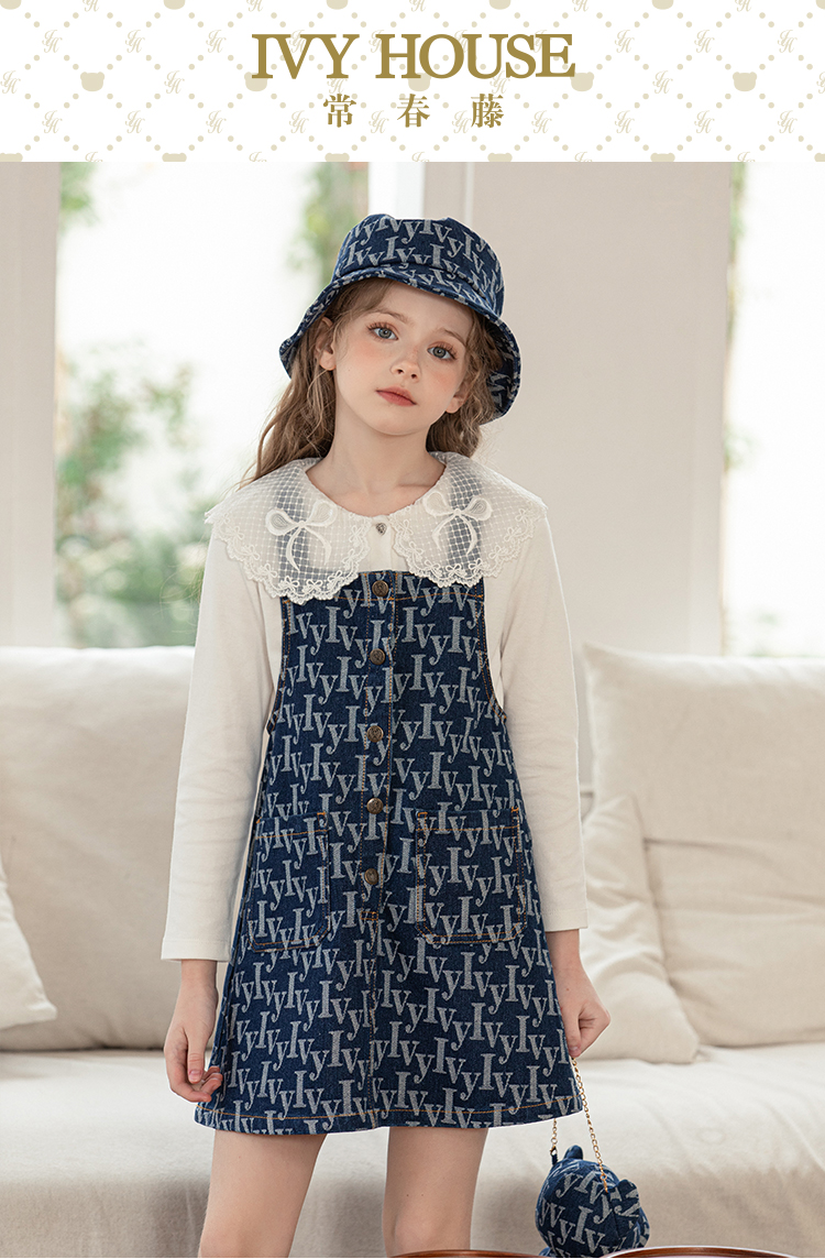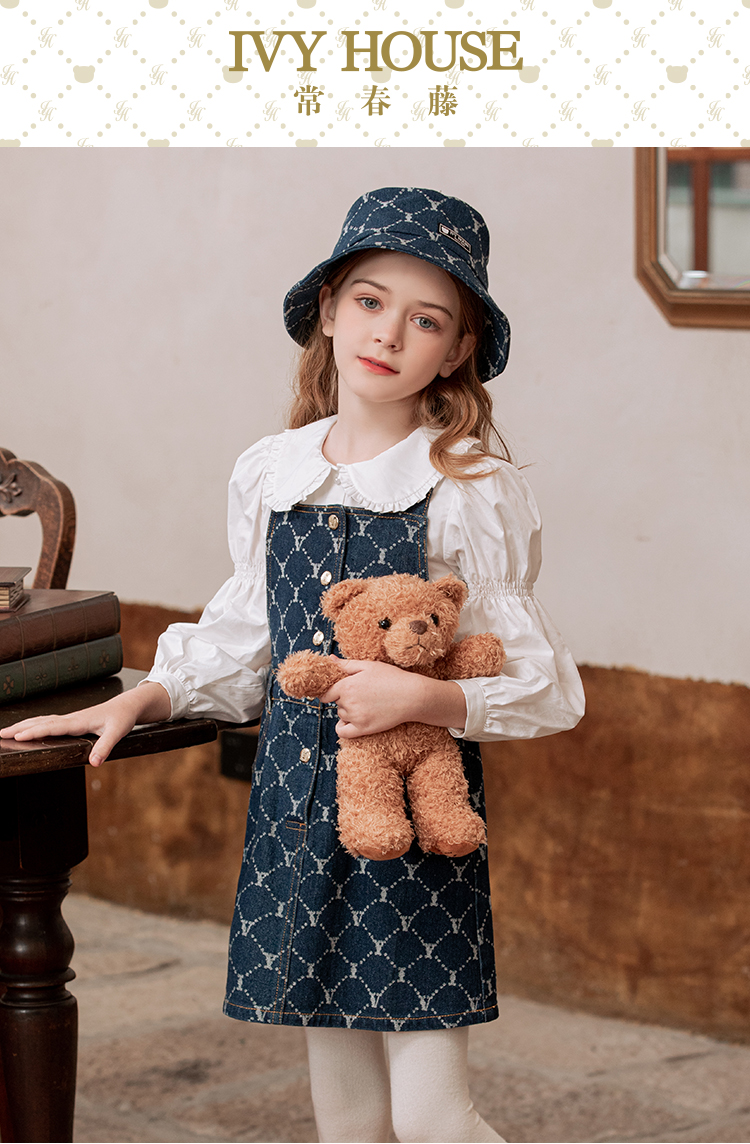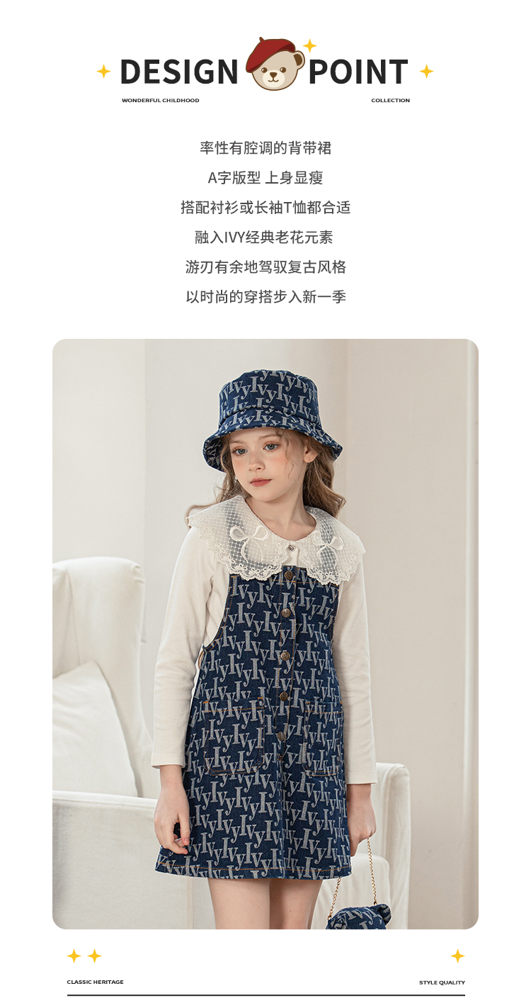 IVY HOUSE常春藤儿童装女童连衣裙秋季 老花牛仔背带裙外套亲子装