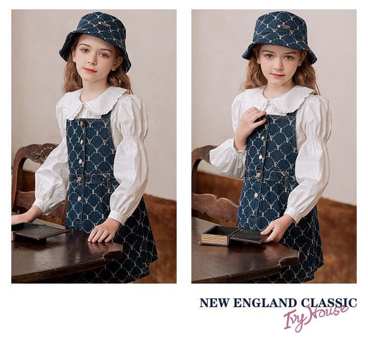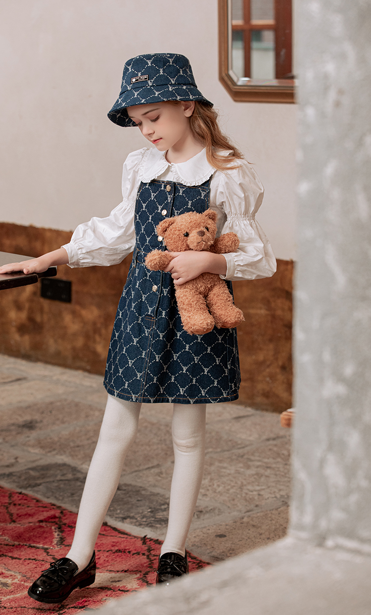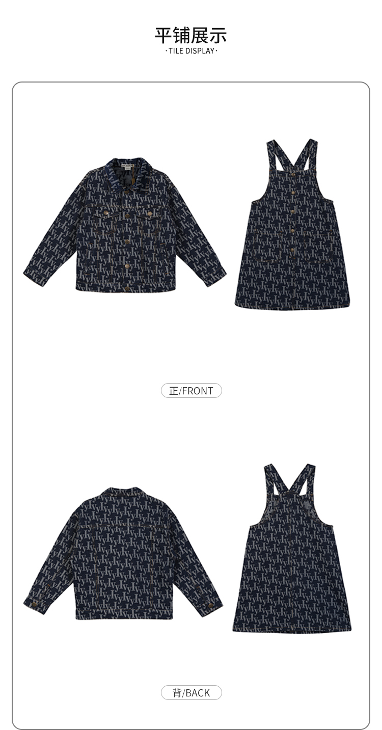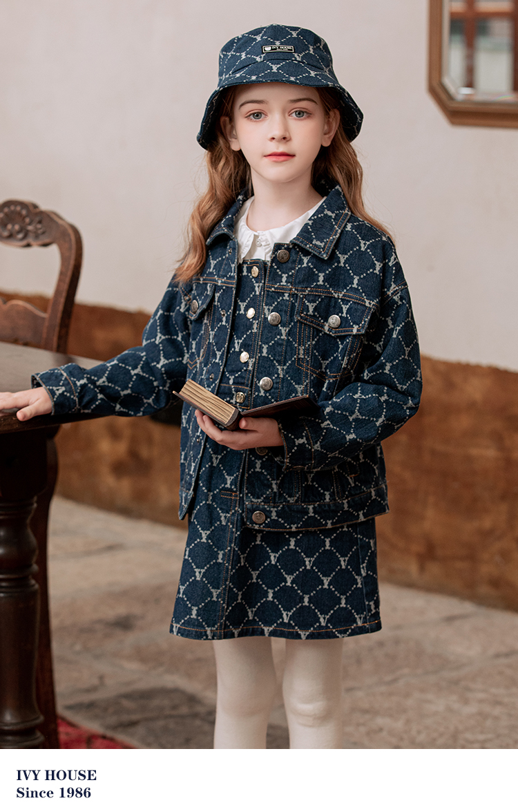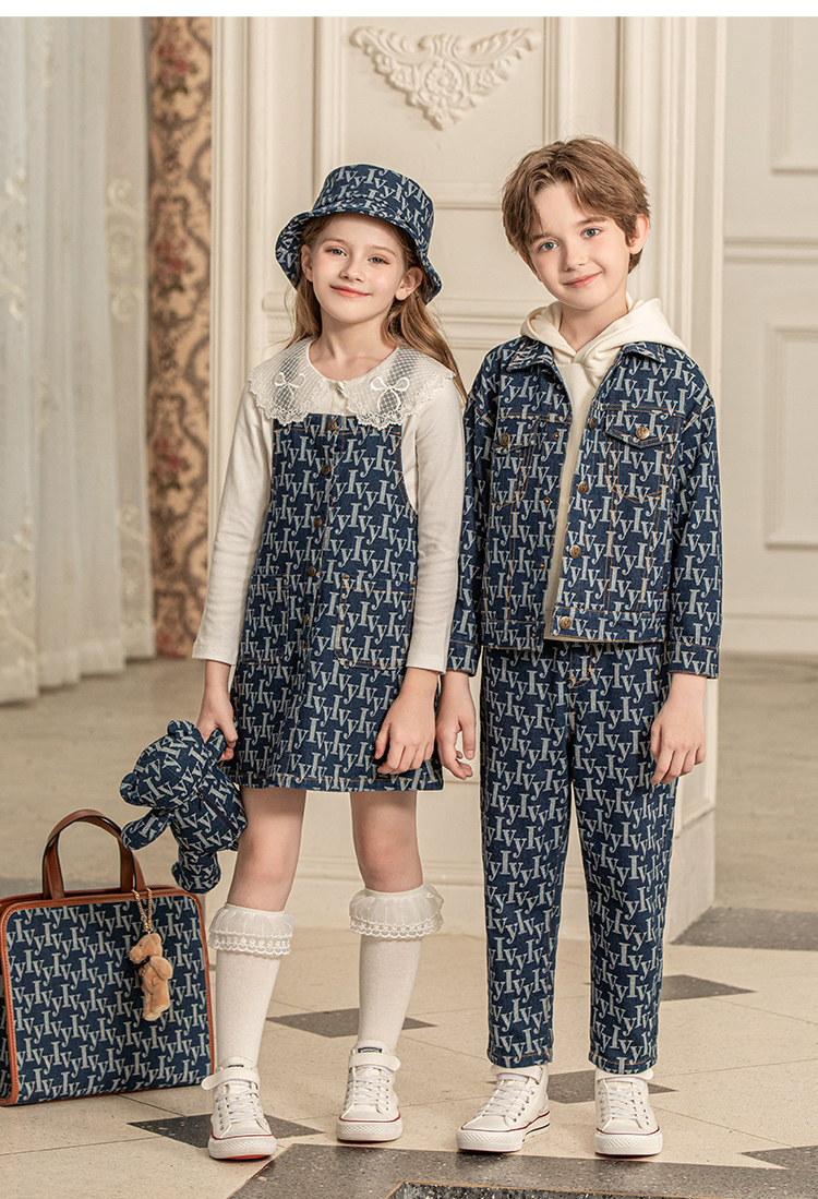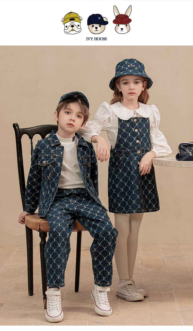 IVY HOUSE常春藤儿童装女童连衣裙秋季 老花牛仔背带裙外套亲子装