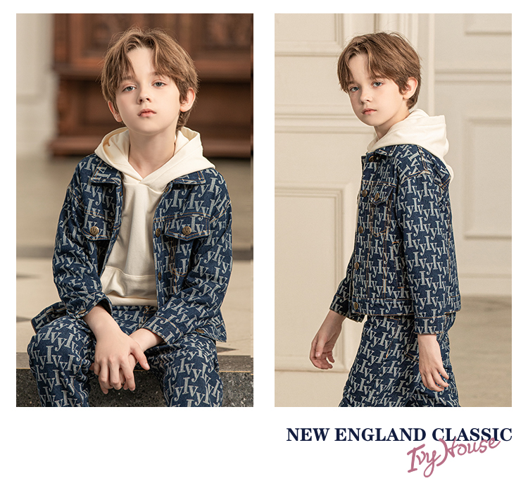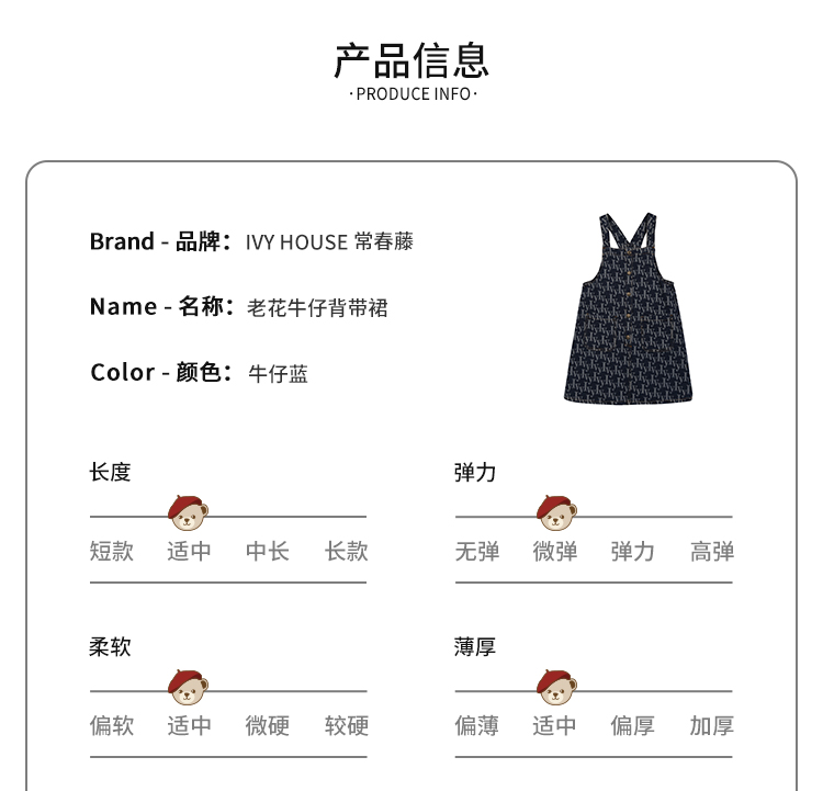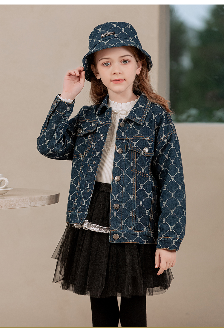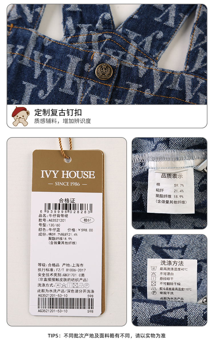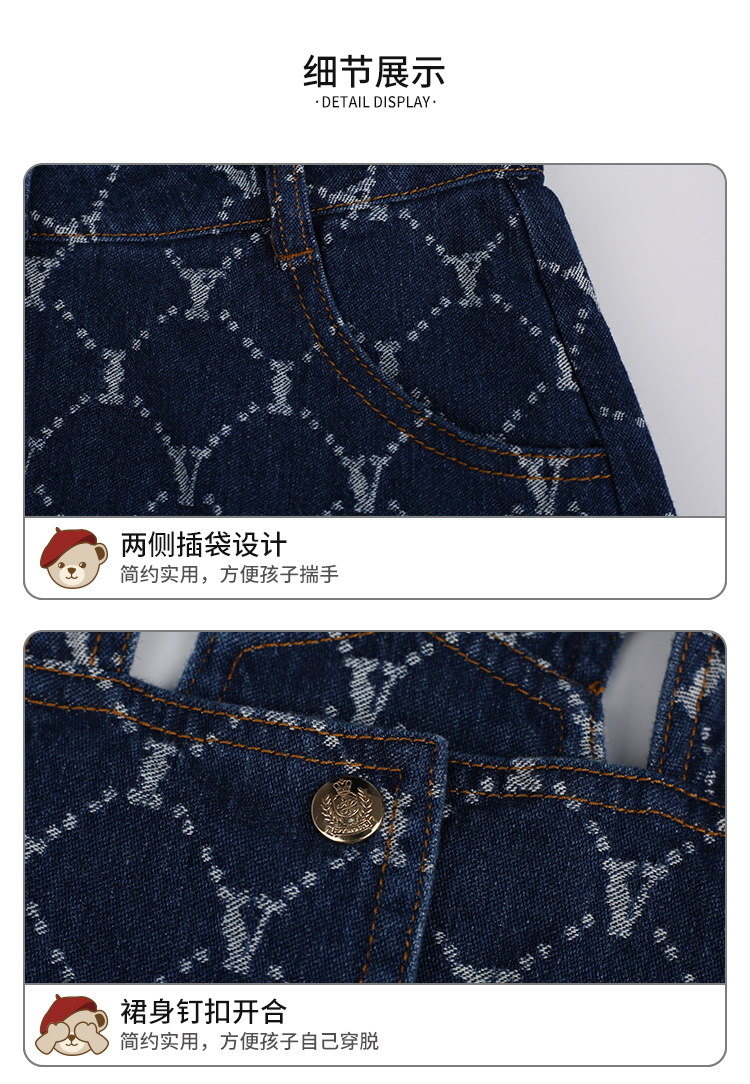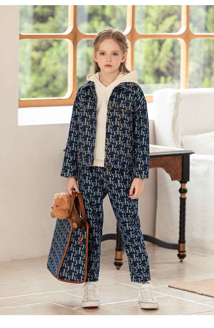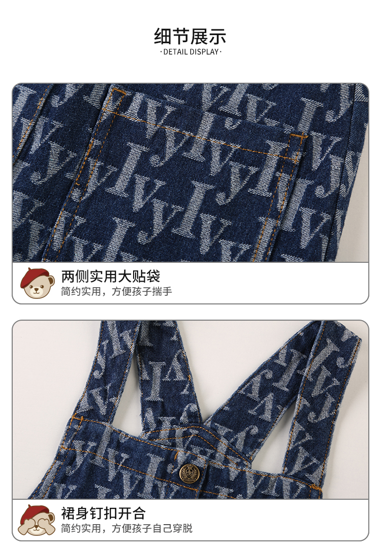 IVY HOUSE常春藤儿童装女童连衣裙秋季 老花牛仔背带裙外套亲子装