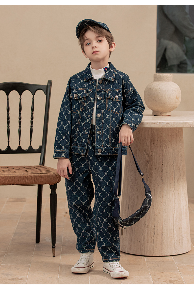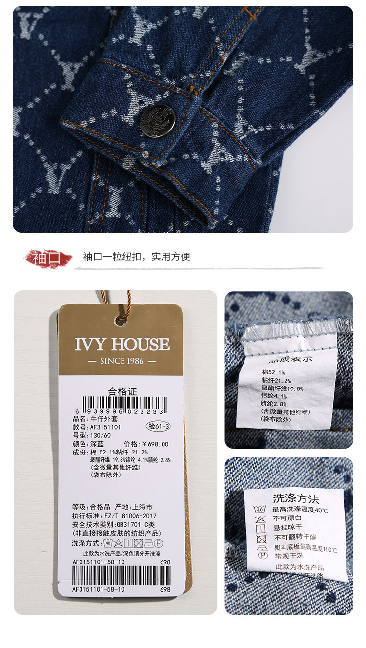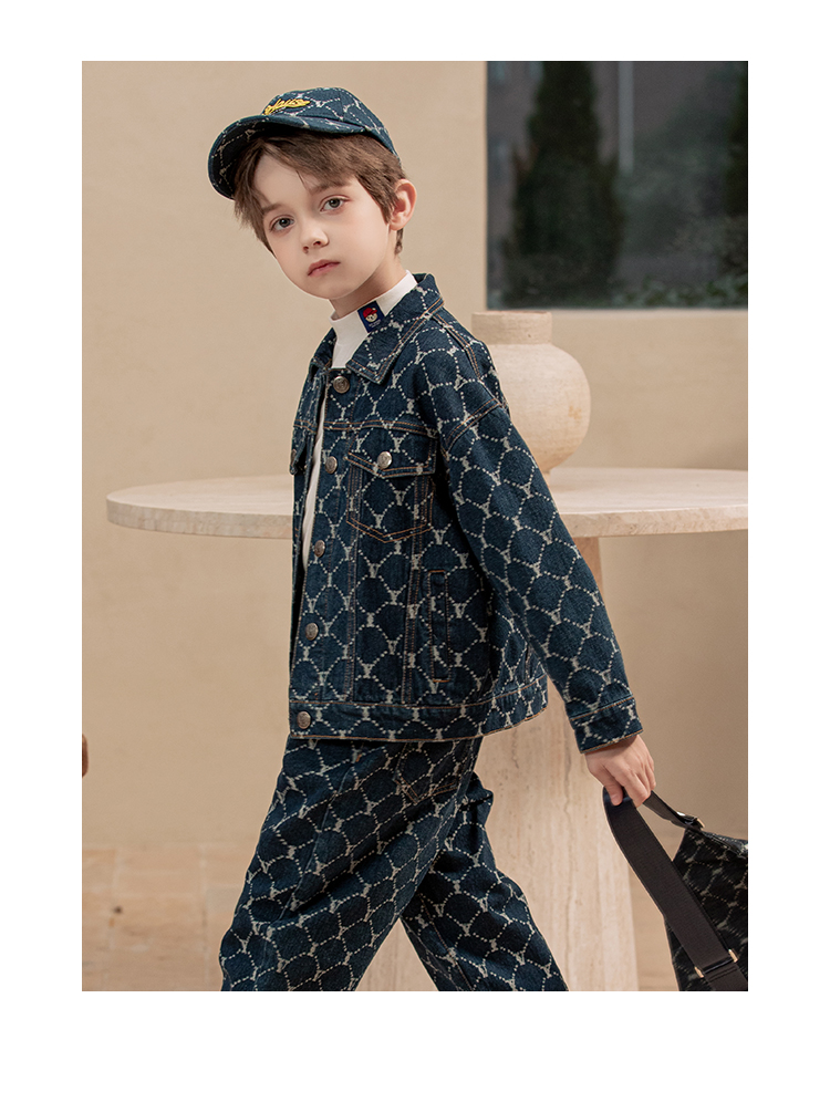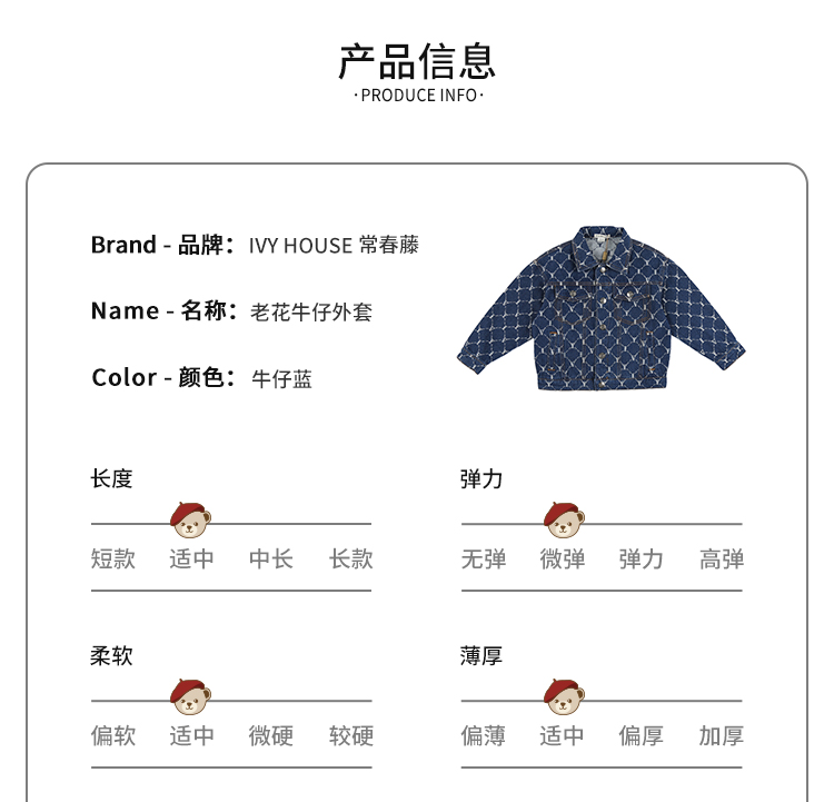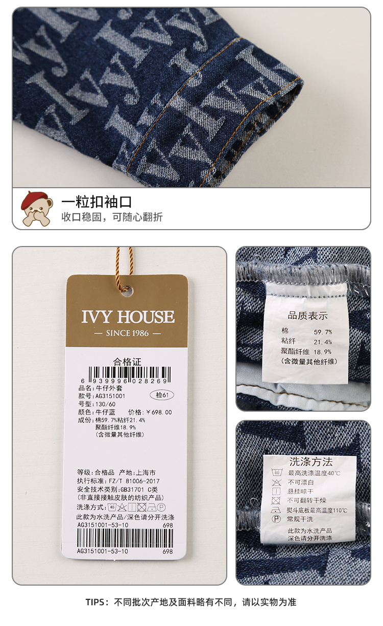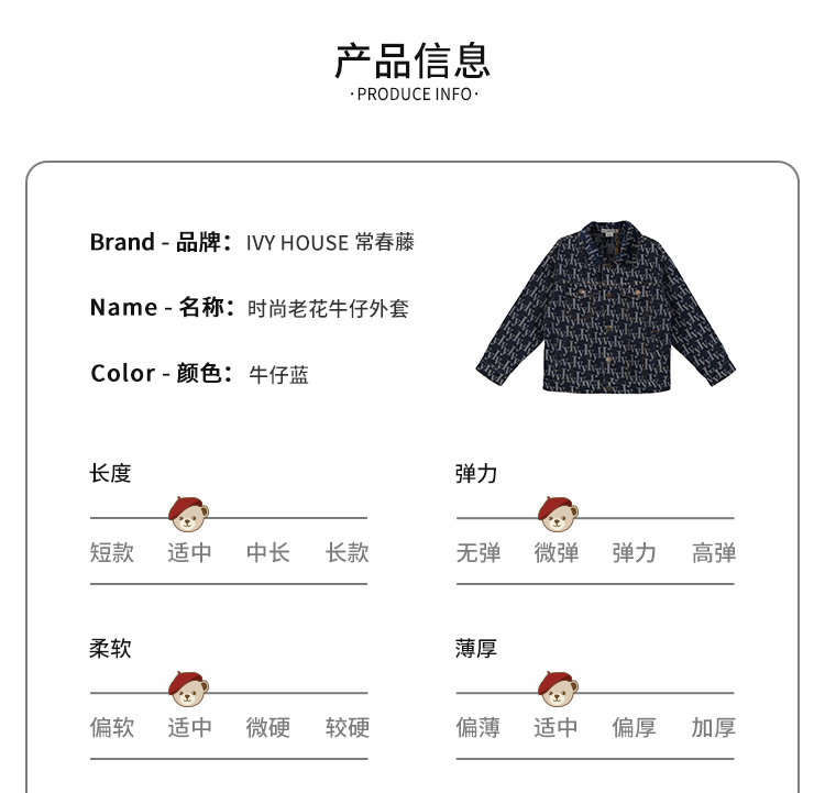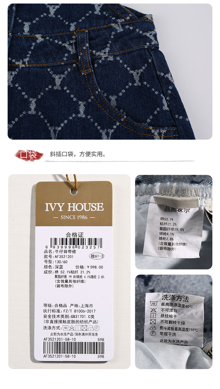 IVY HOUSE常春藤儿童装女童连衣裙秋季 老花牛仔背带裙外套亲子装