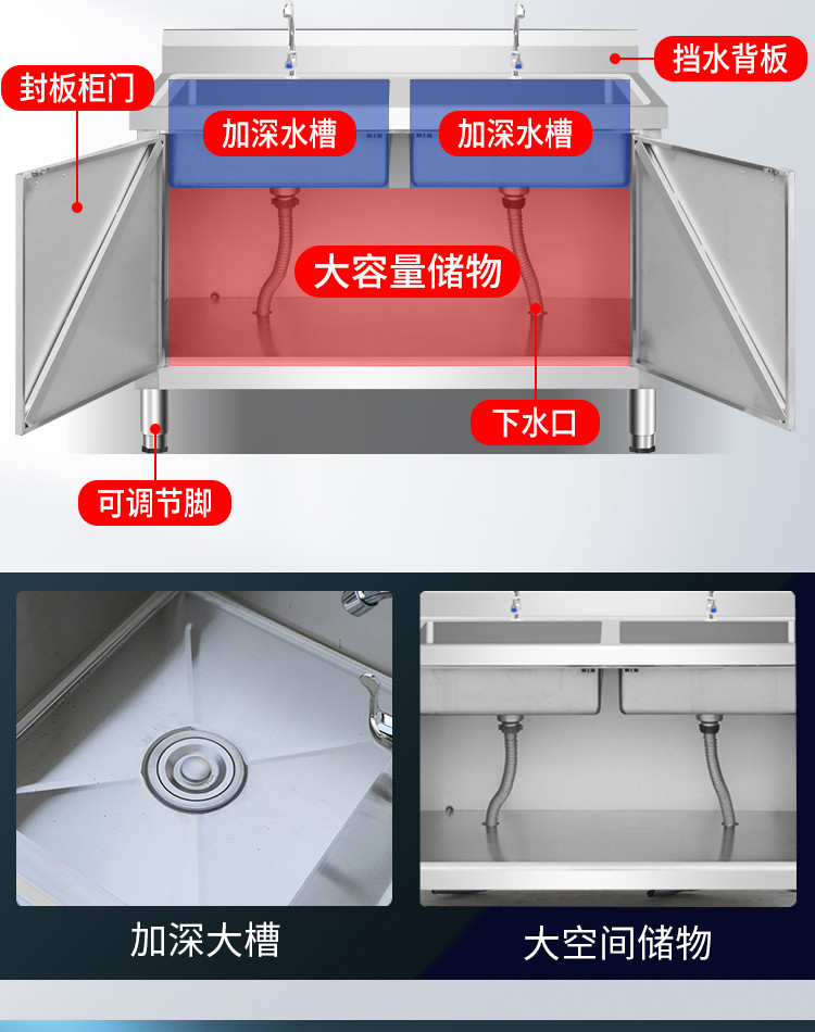 水池工作台不锈钢水槽商用厨房一体柜洗菜盆洗手池台面洗碗池户外