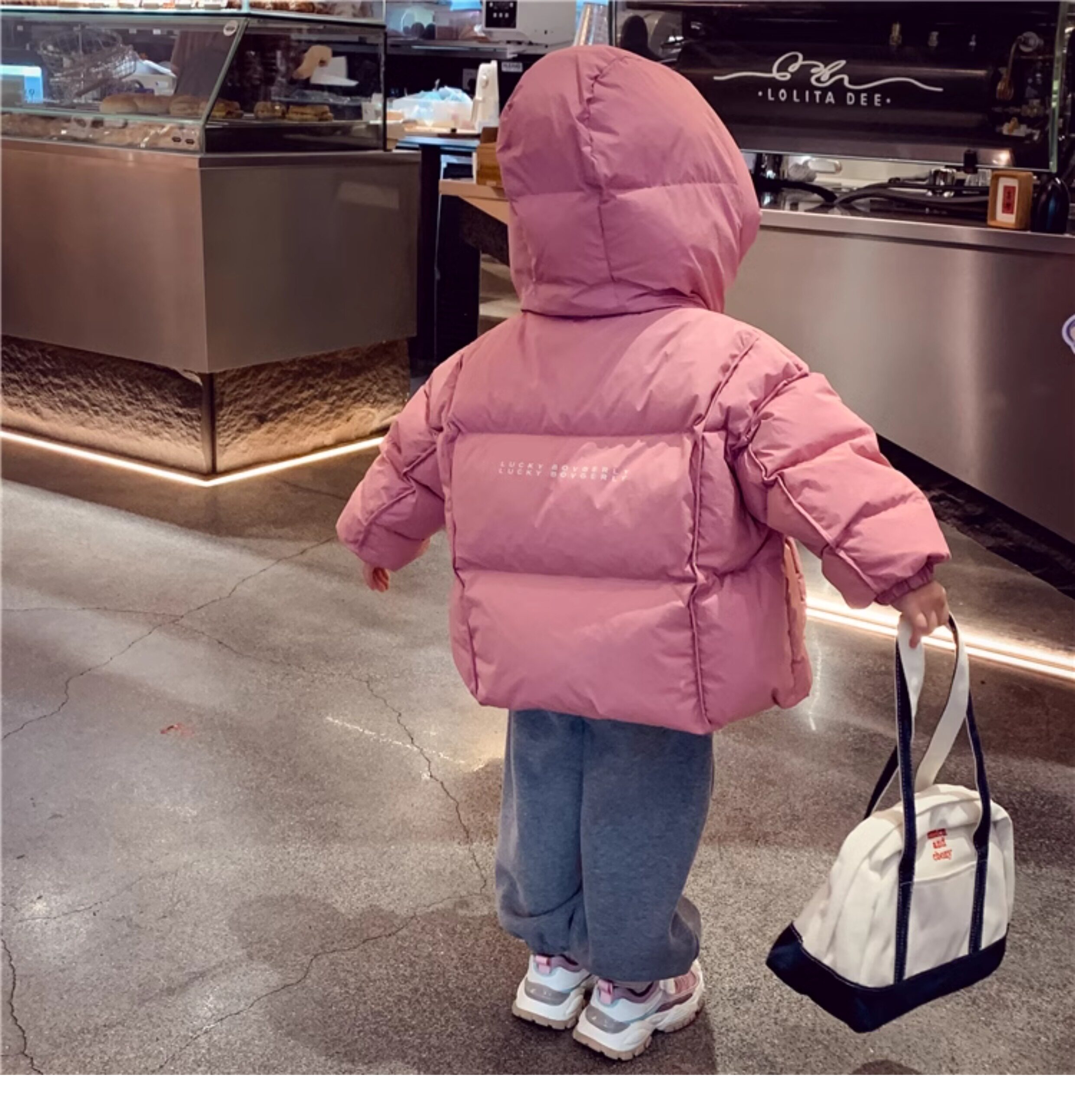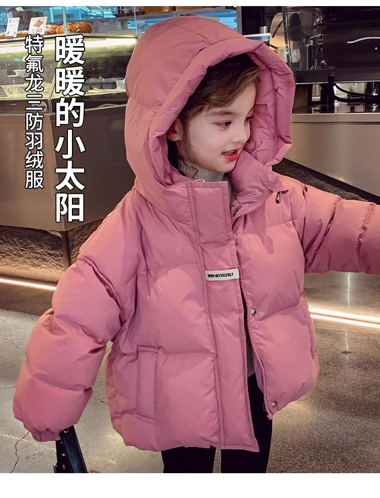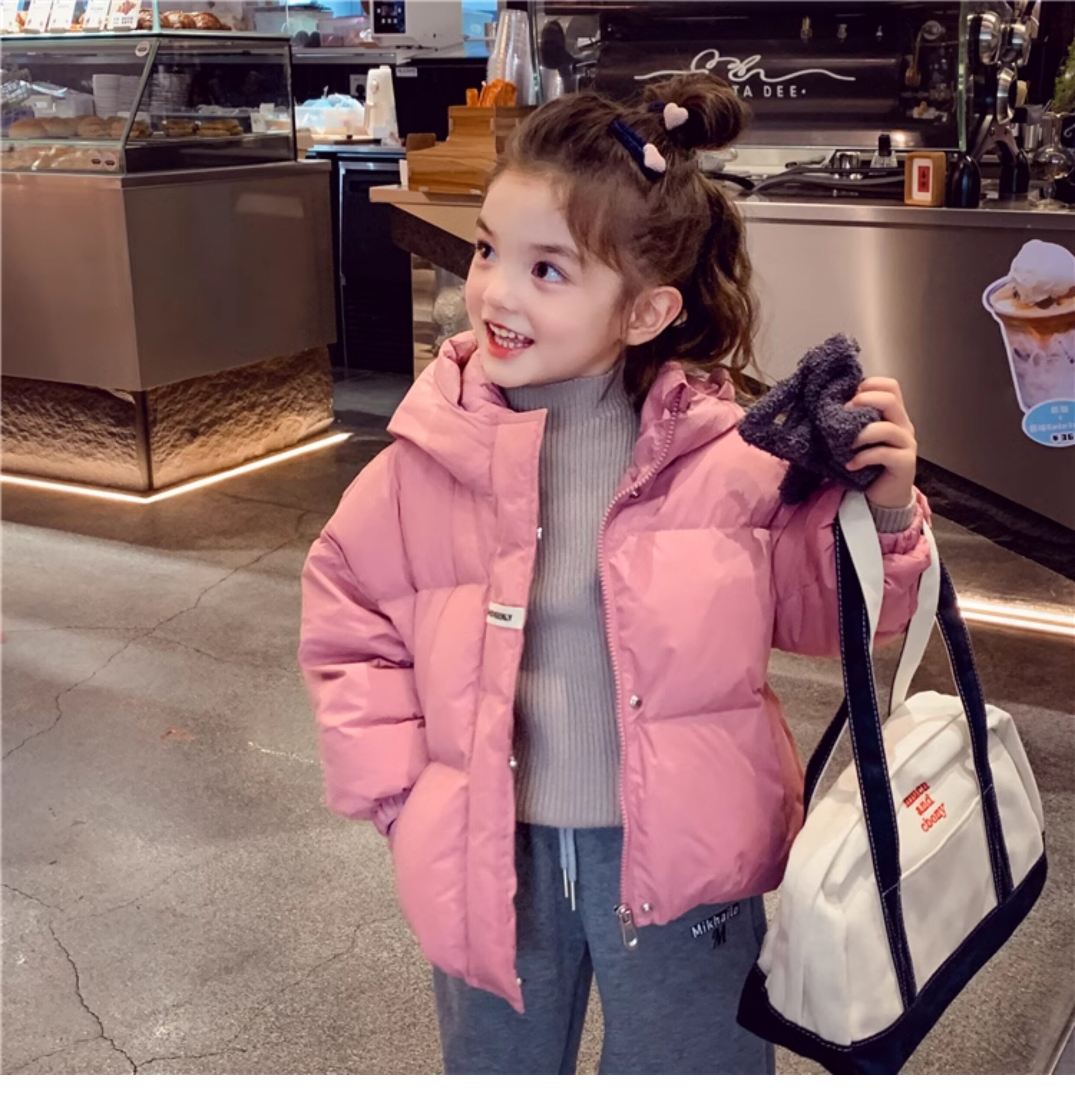 女童90白鸭绒外套女孩冬季羽绒服2024新款儿童加厚保暖连帽面包服
