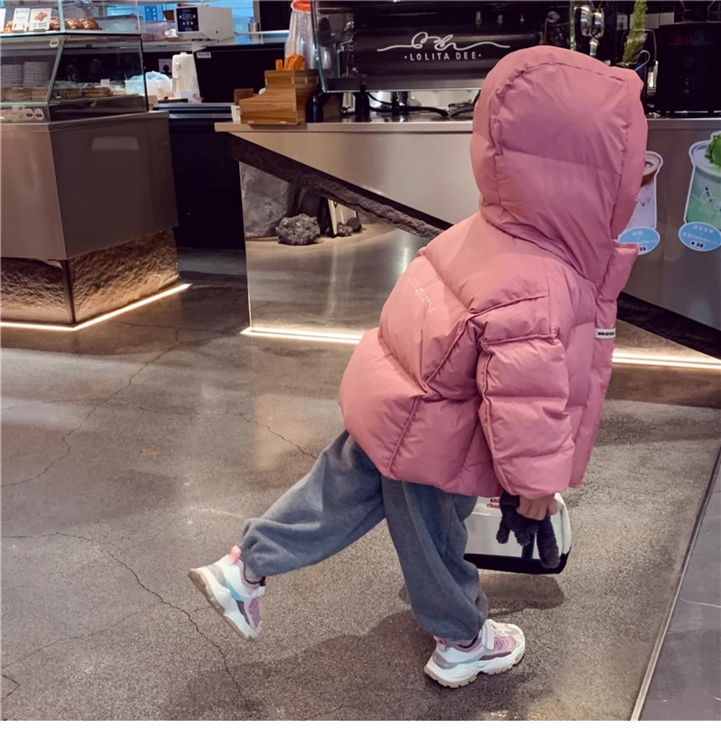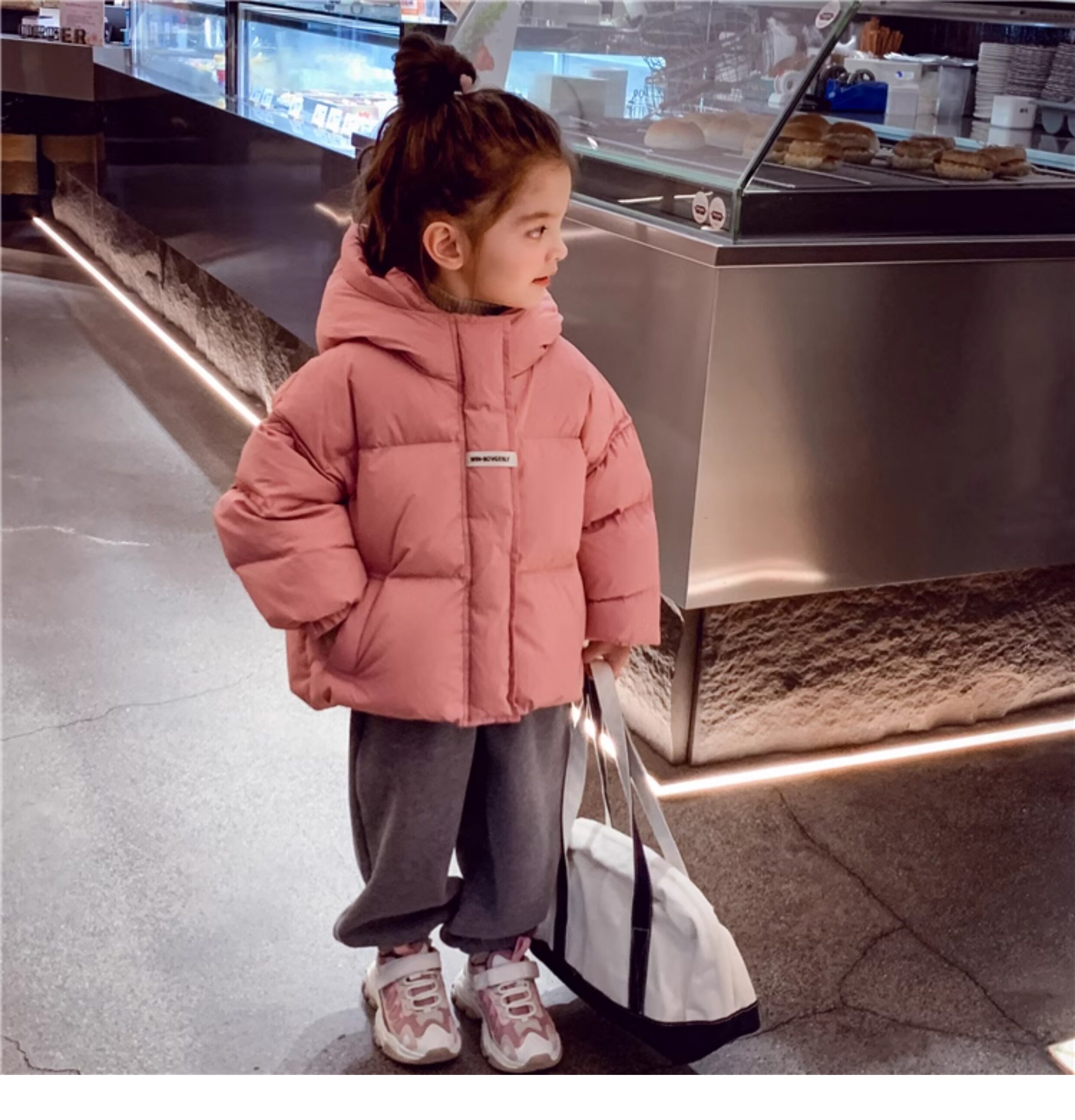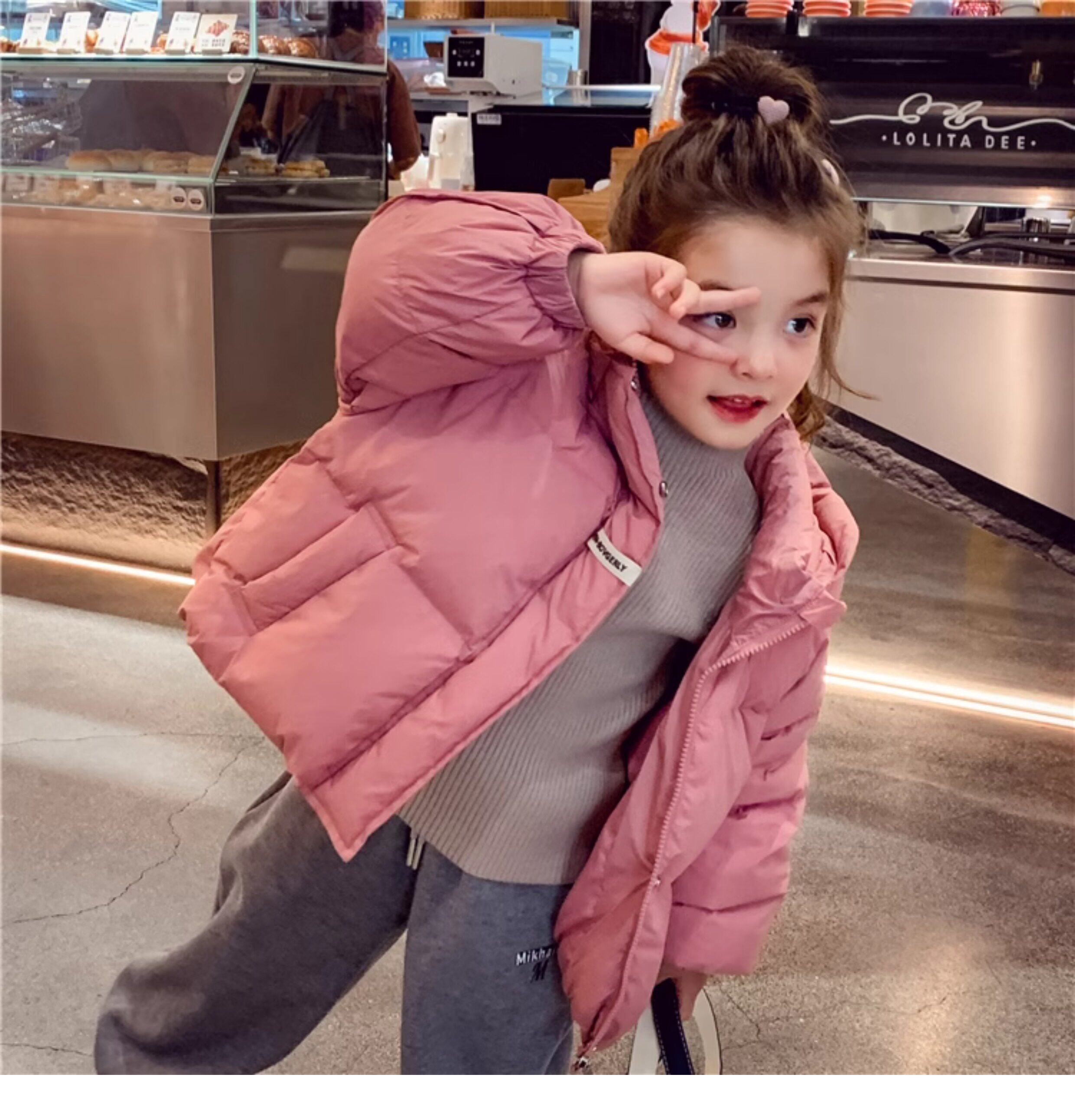女童90白鸭绒外套女孩冬季羽绒服2024新款儿童加厚保暖连帽面包服