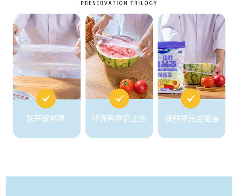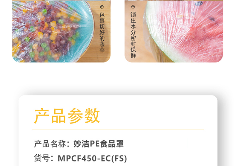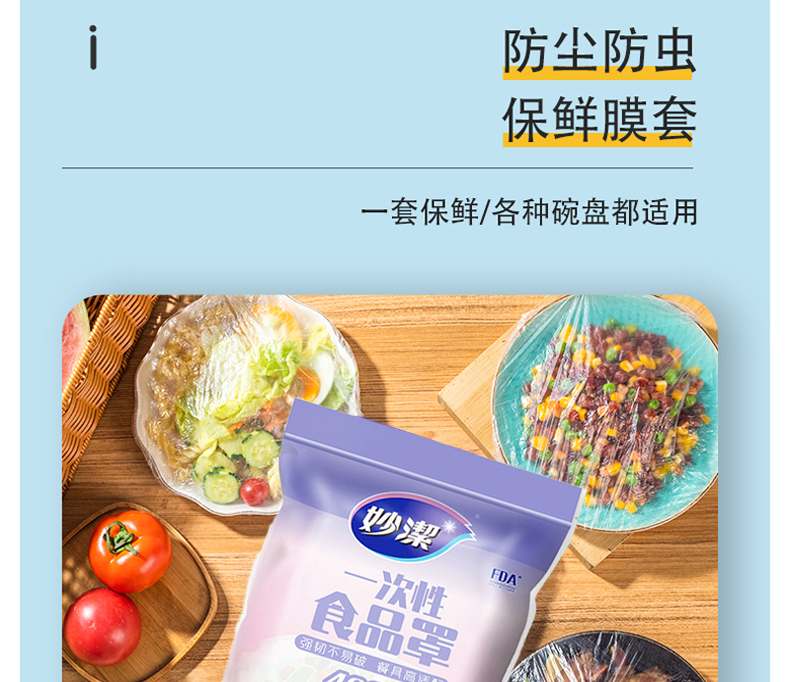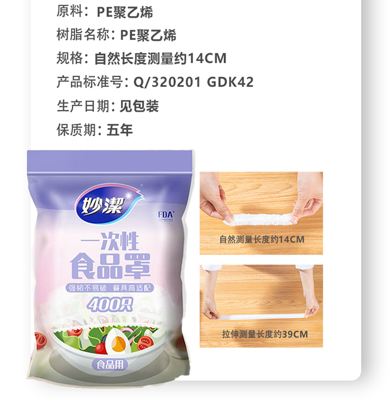妙洁一次性保鲜膜套罩pe食品级家用松紧口碗套冰箱剩菜厨房专用