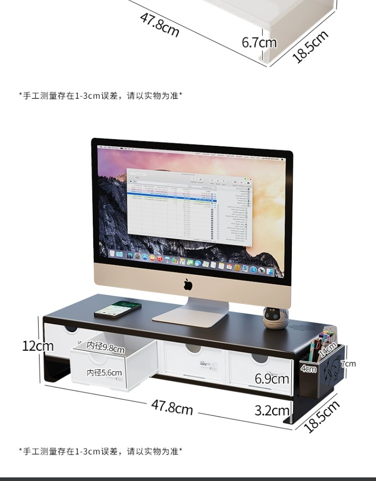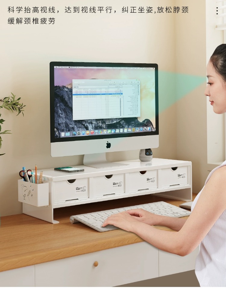 电脑增高架办公室台式显示器底座工位支架托架带抽屉桌面置物架子
