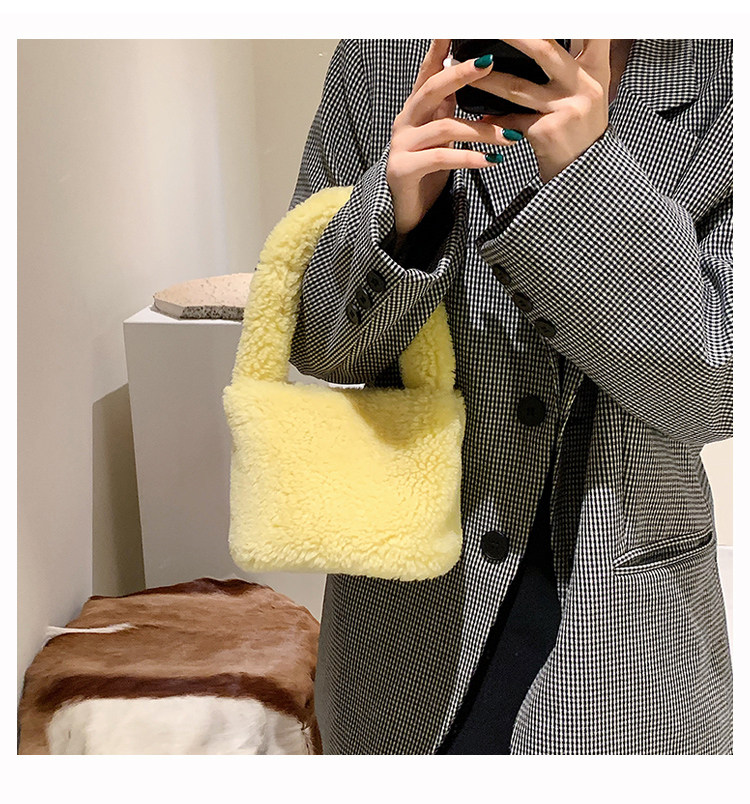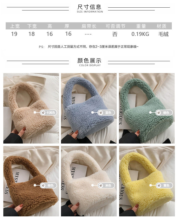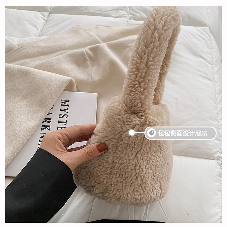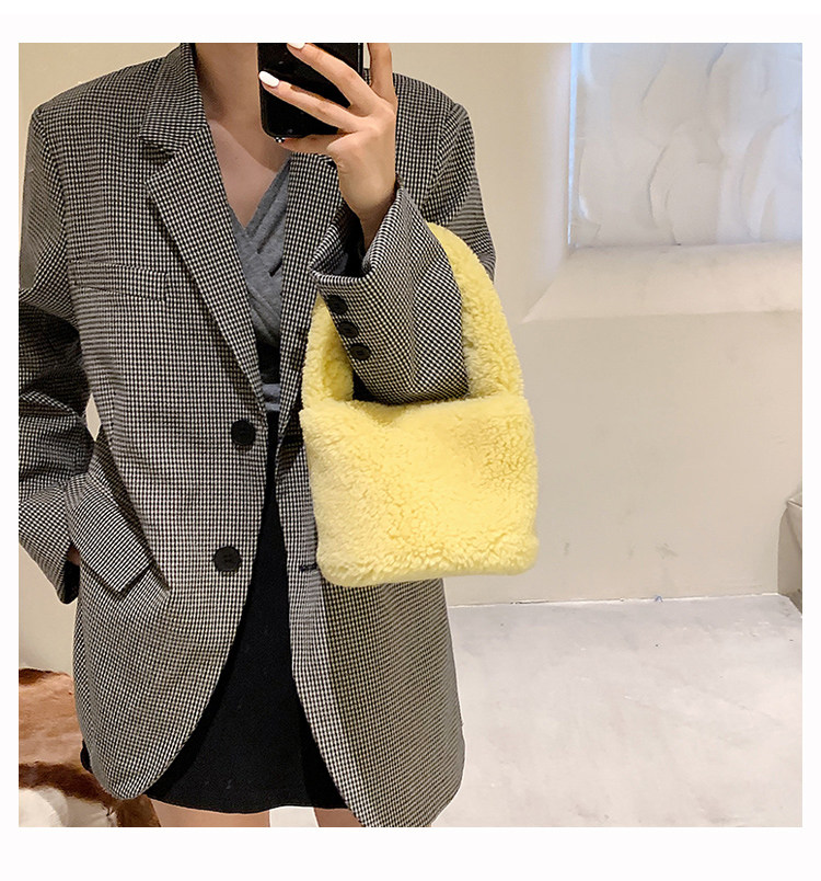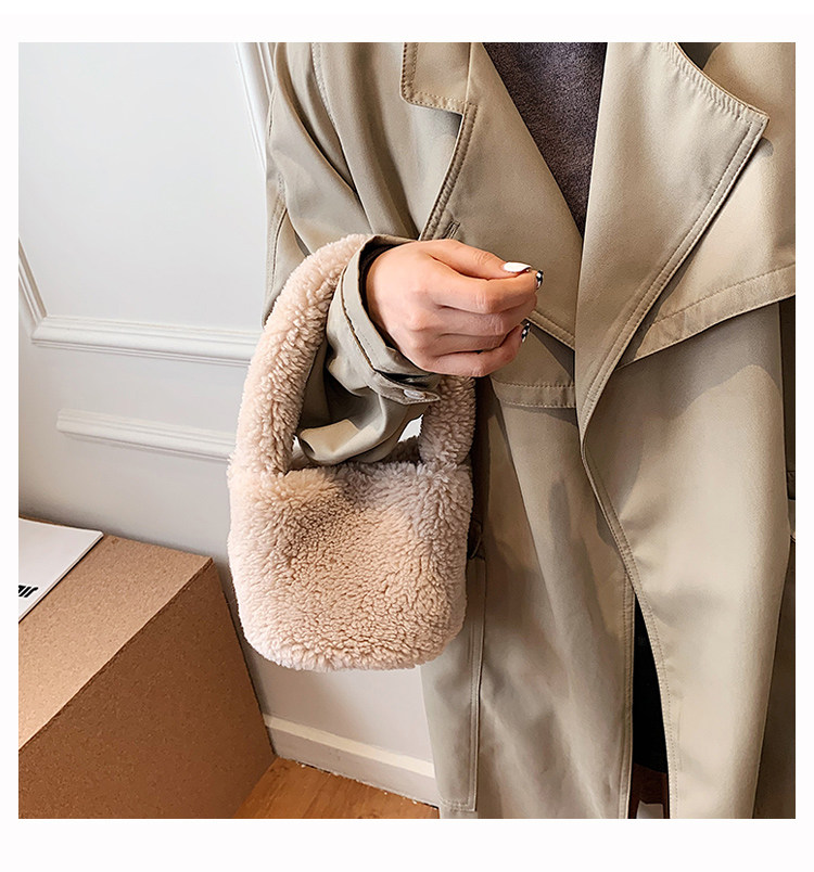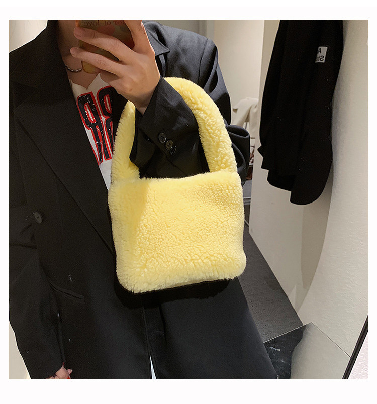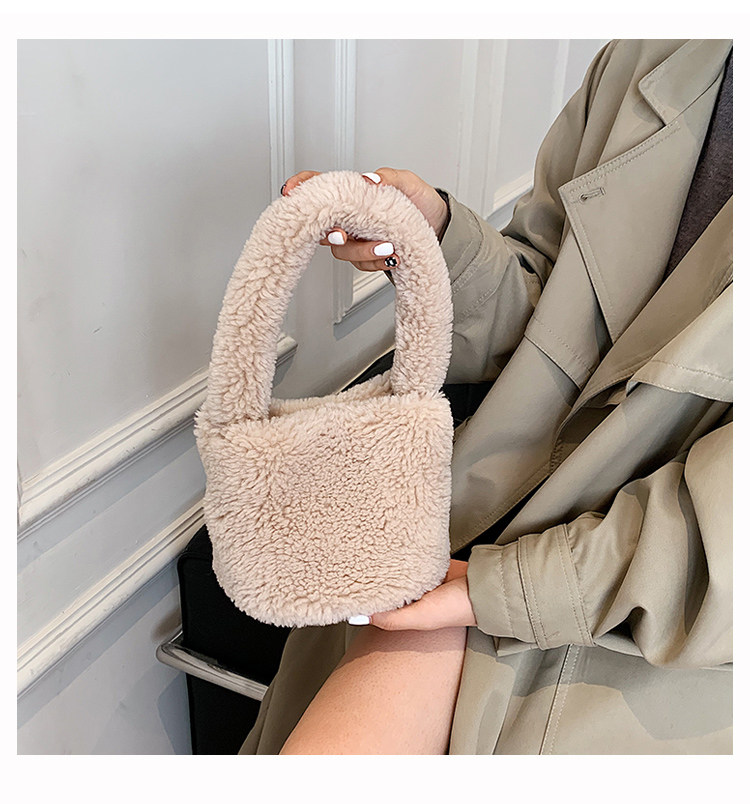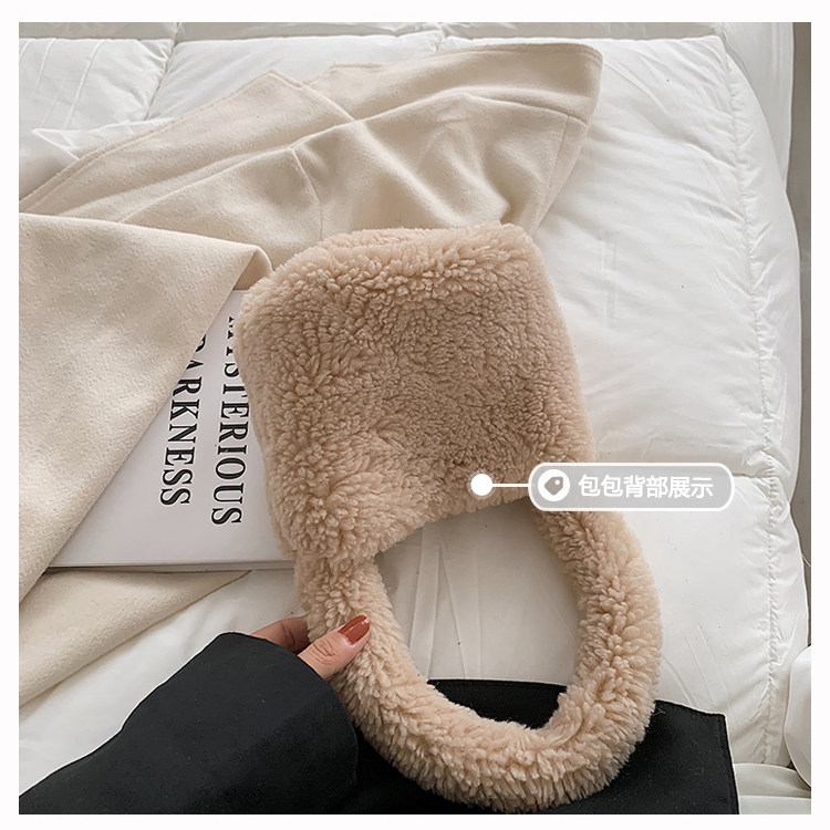 纯色羊羔毛毛包包2025新款包包女拎包小众毛茸茸手提包毛绒水桶包