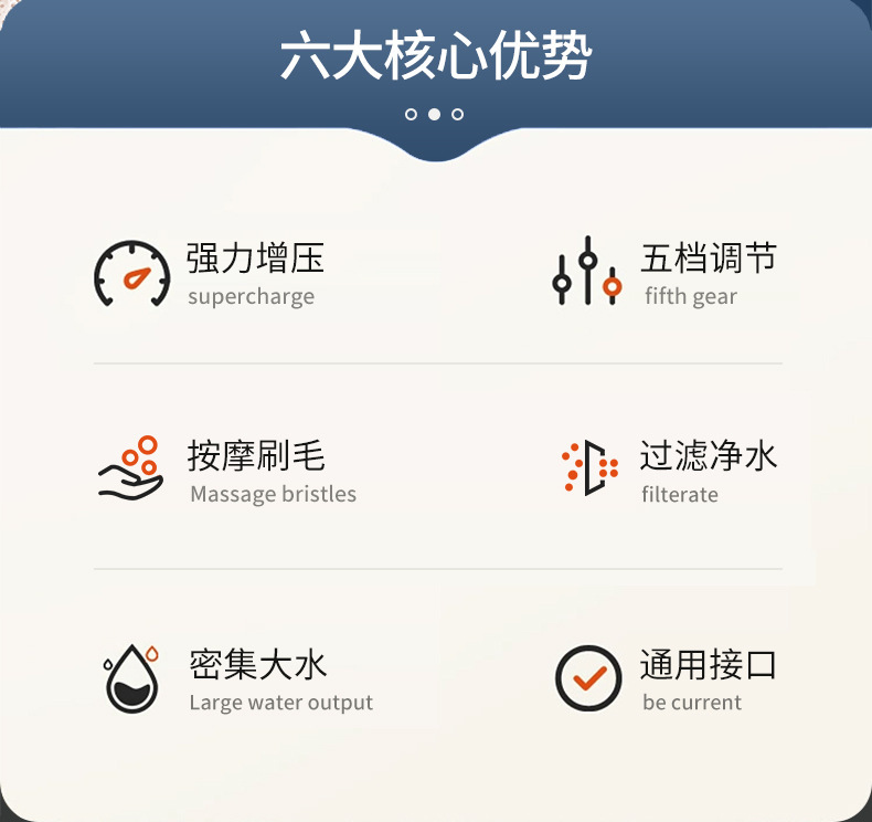 五功能过滤美肤增压花洒喷头淋浴手持莲蓬头搓背洗澡毛刷花洒套装