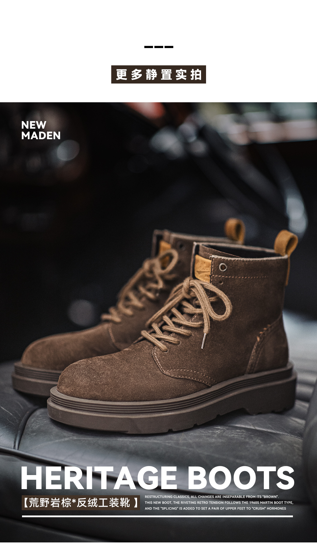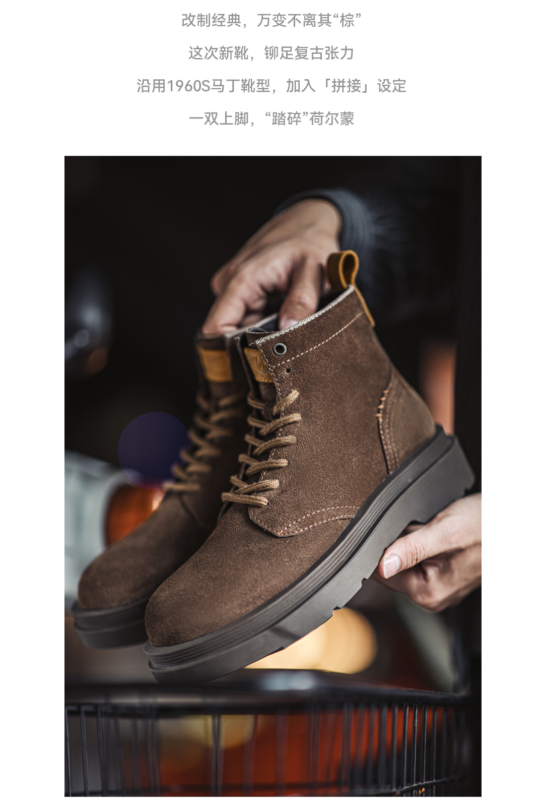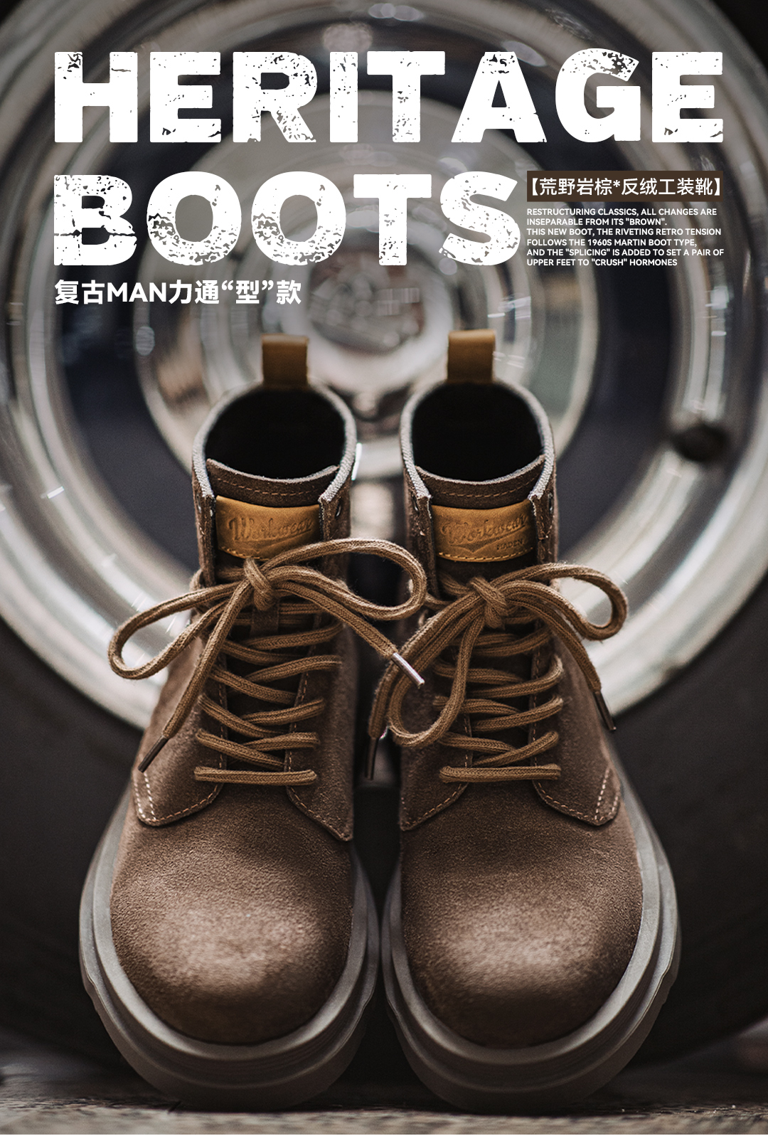 马登荒野岩棕春季新款工装靴子男休闲复古厚底中高帮翻毛皮马丁靴