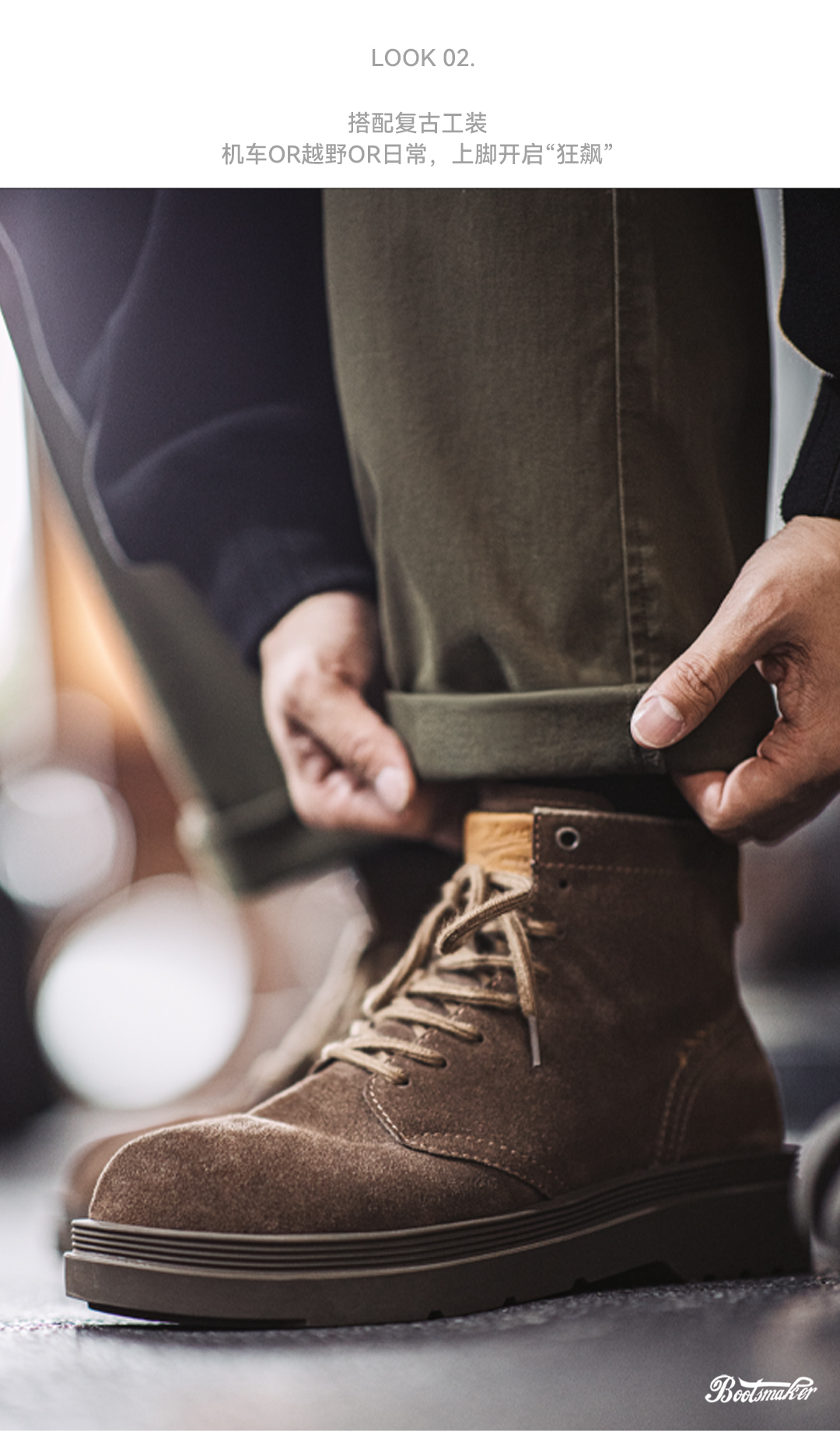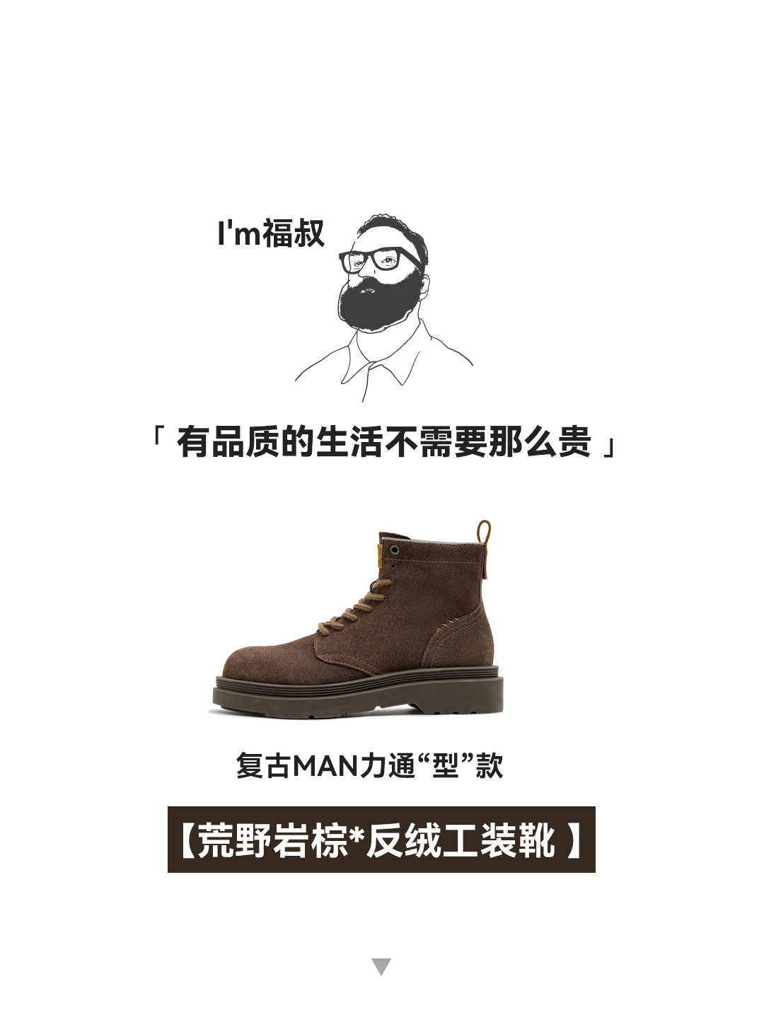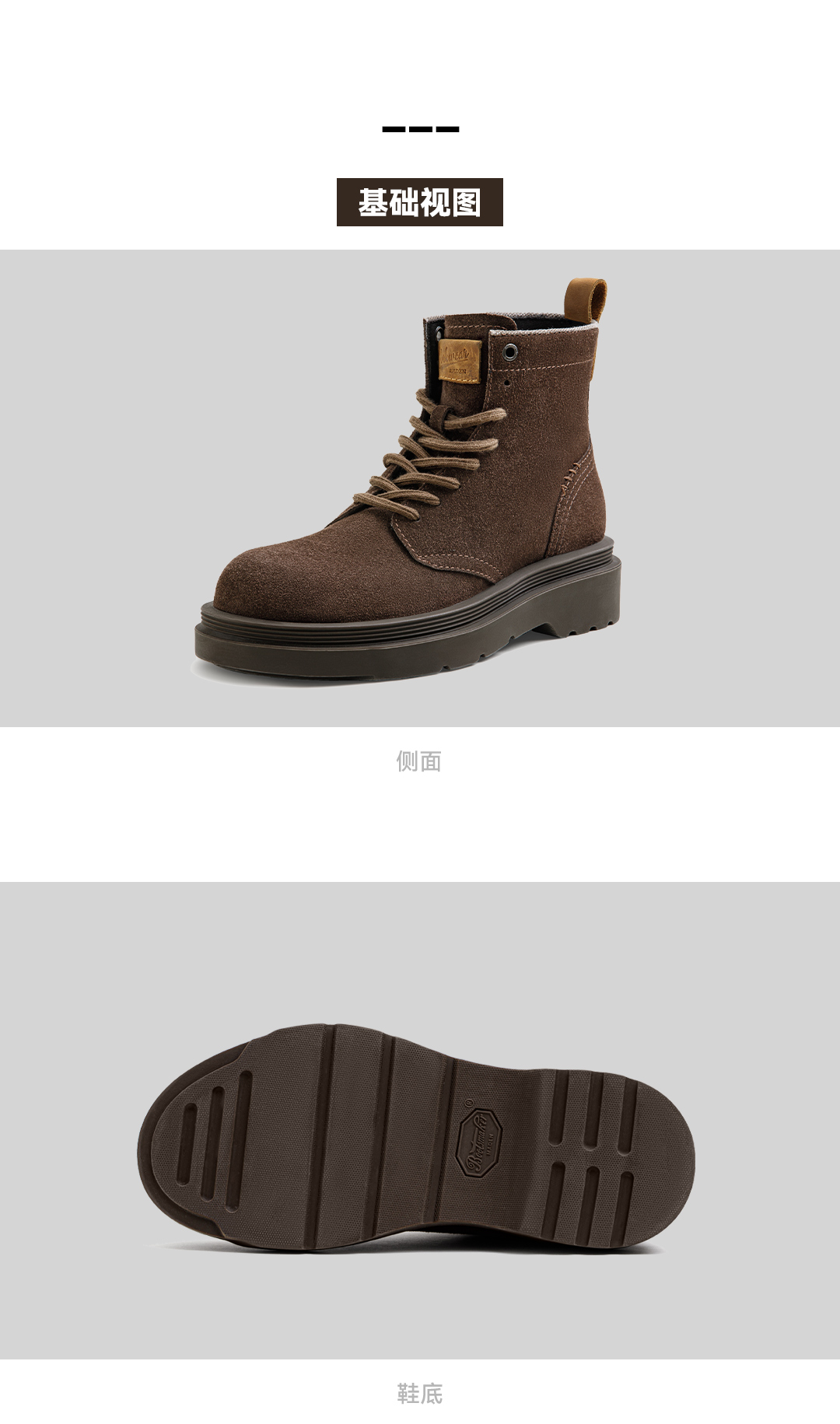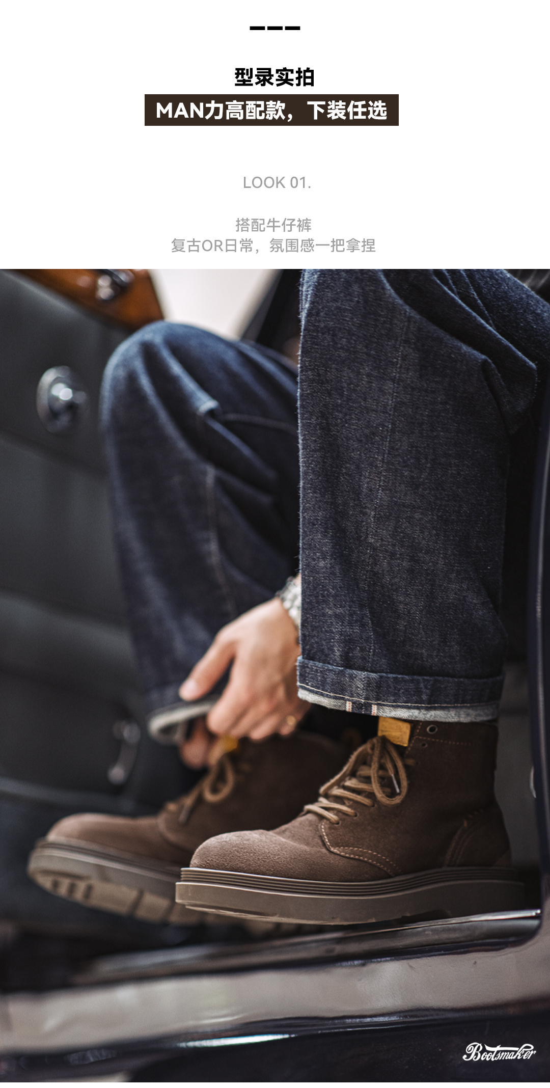 马登荒野岩棕春季新款工装靴子男休闲复古厚底中高帮翻毛皮马丁靴
