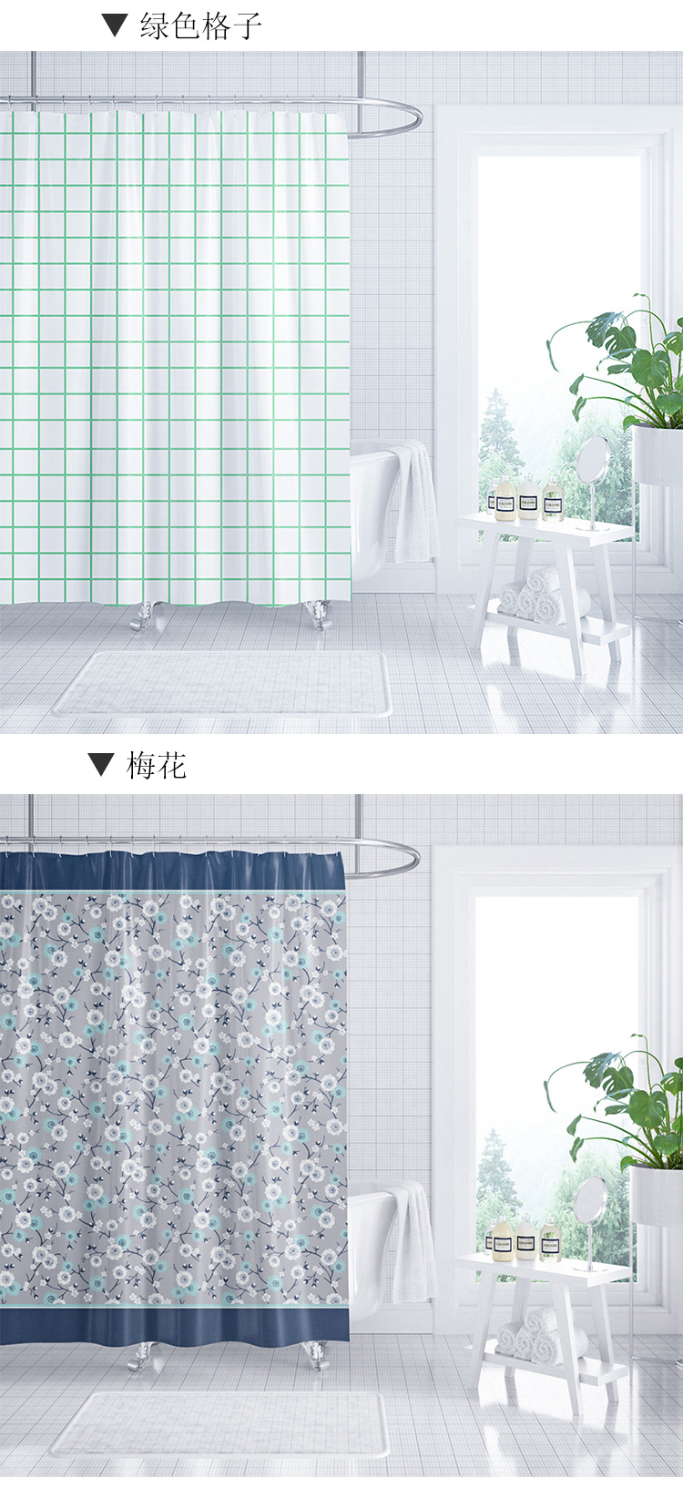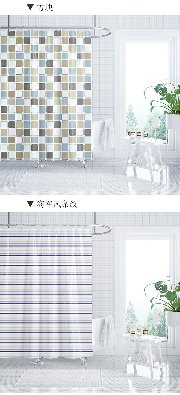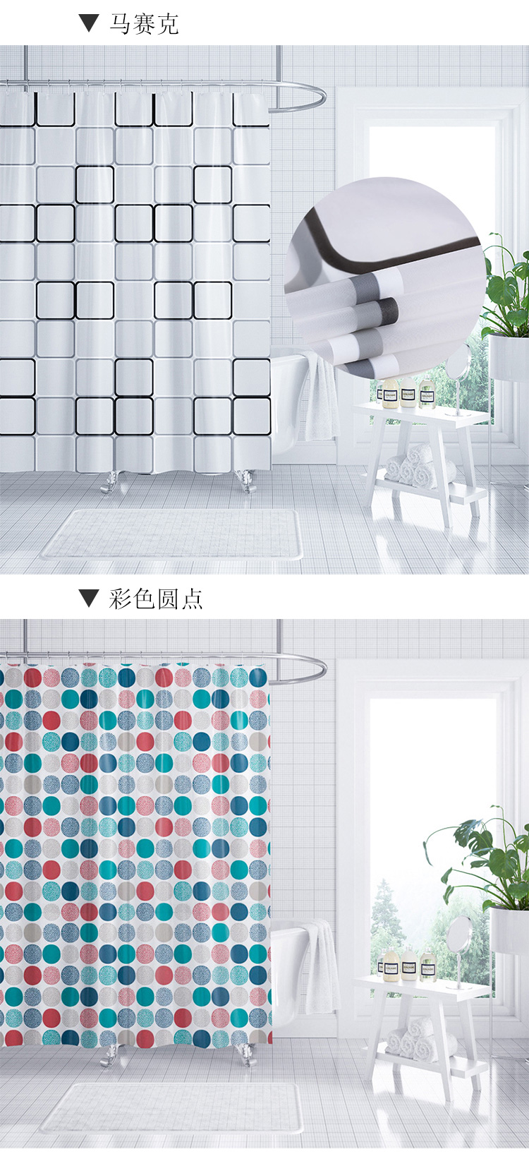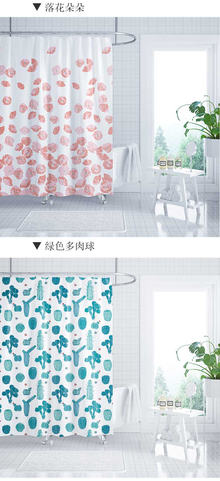 浴室格子圆点仙人掌防水浴帘贝壳卫生间厕所门帘淋浴隔断帘送挂钩
