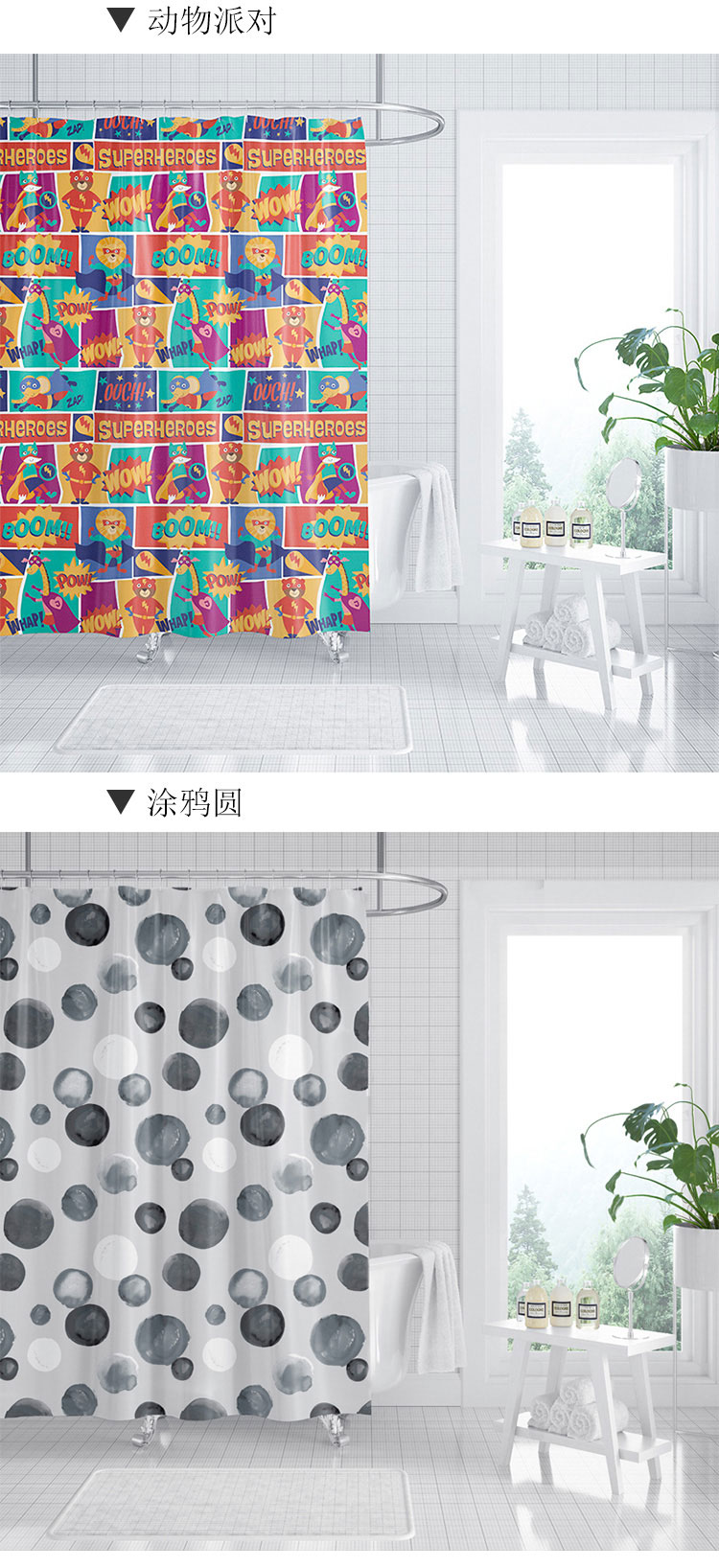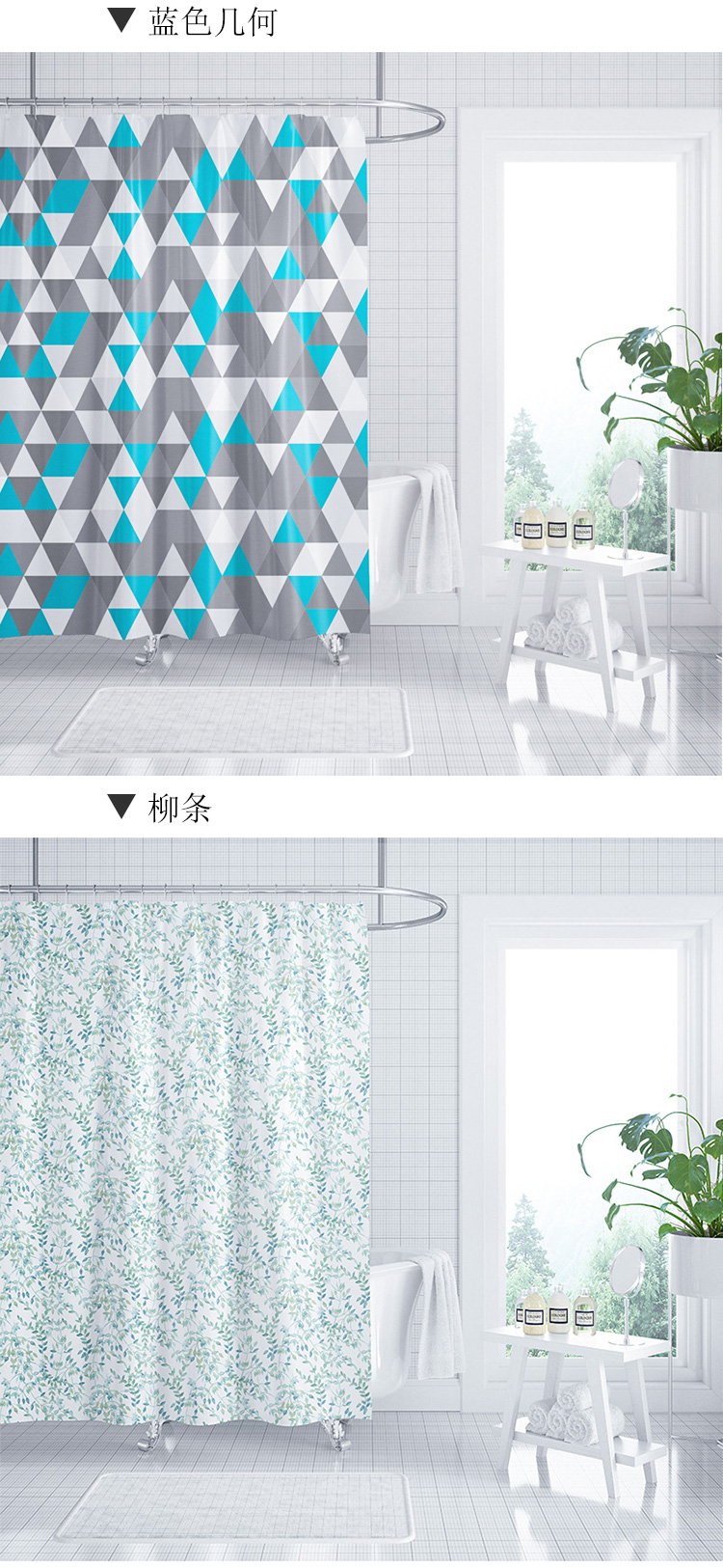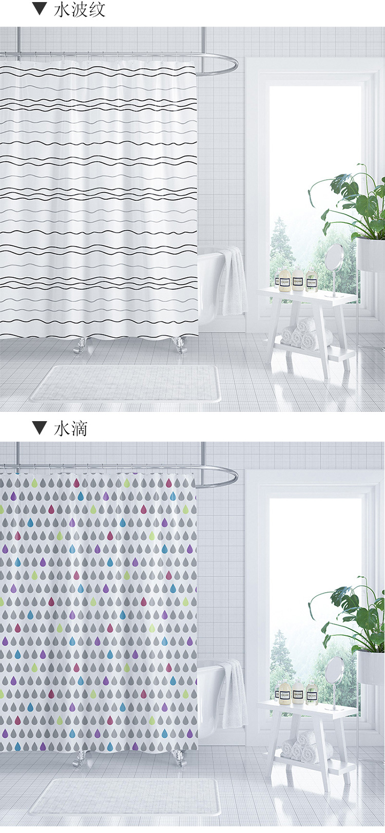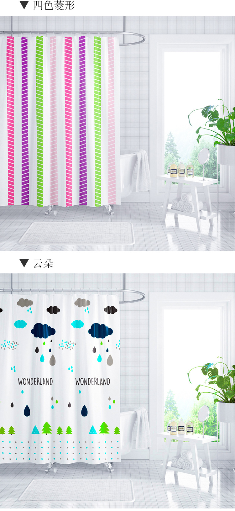 浴室格子圆点仙人掌防水浴帘贝壳卫生间厕所门帘淋浴隔断帘送挂钩