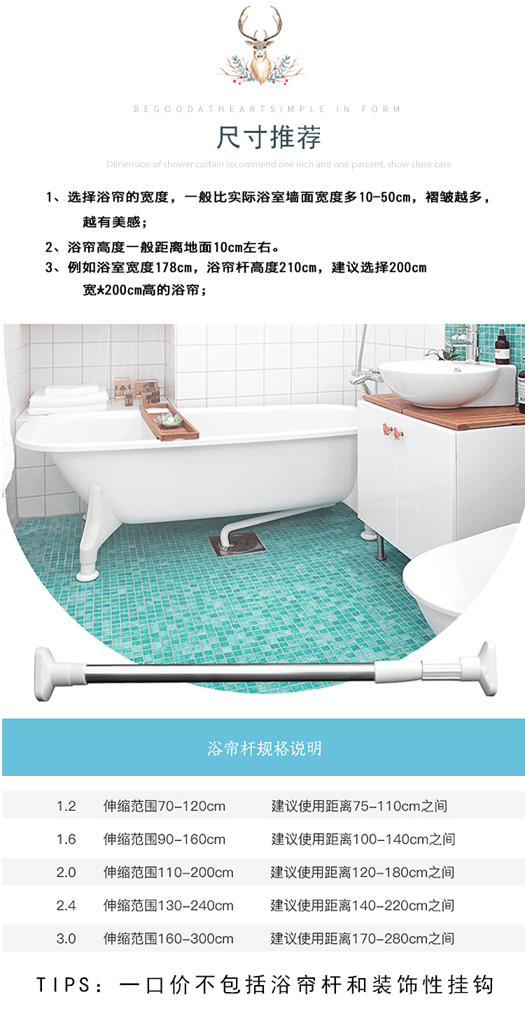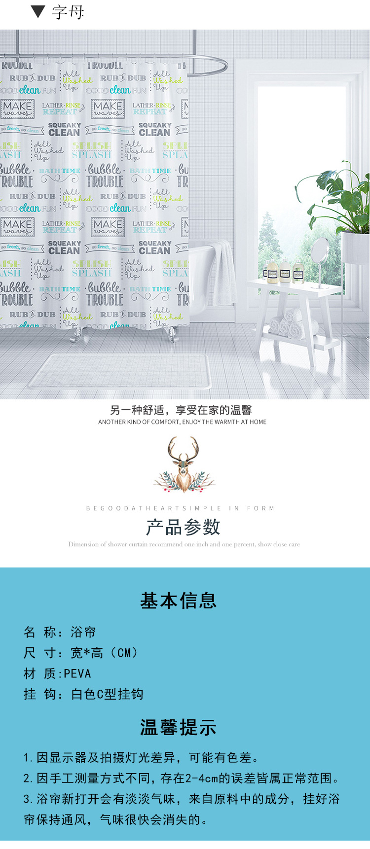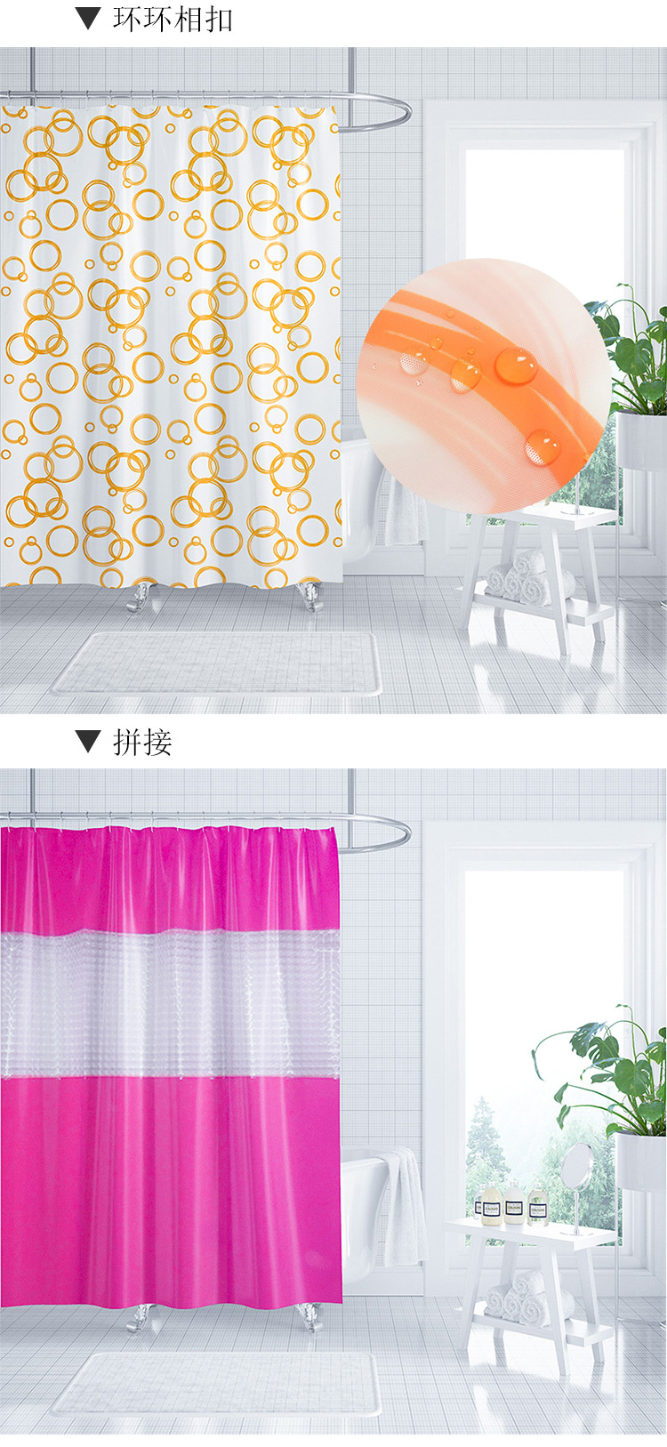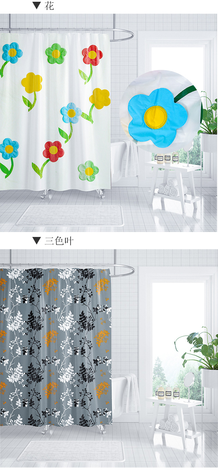 浴室格子圆点仙人掌防水浴帘贝壳卫生间厕所门帘淋浴隔断帘送挂钩