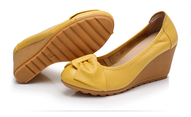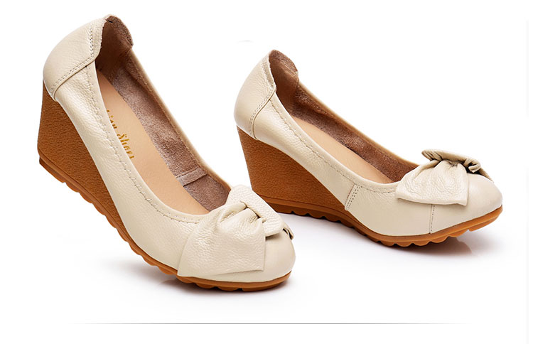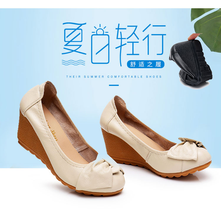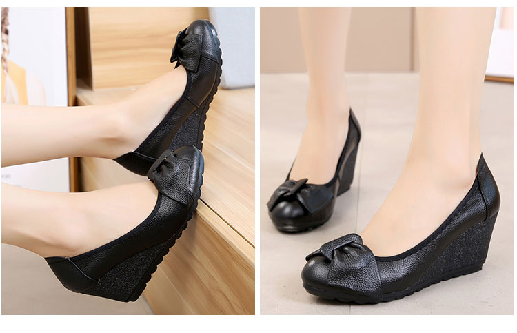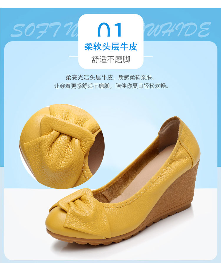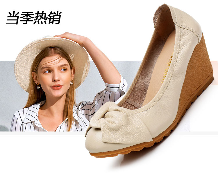 2025春秋季新款高跟豆豆鞋女真皮牛筋底单鞋坡跟软底上班工作鞋子