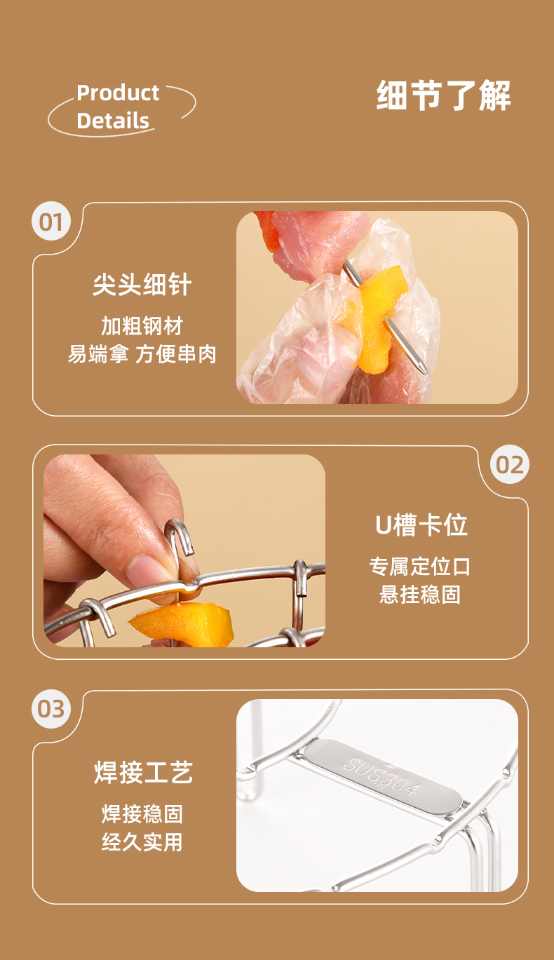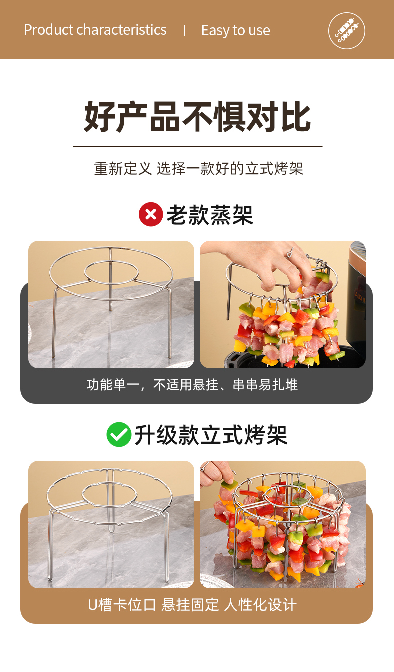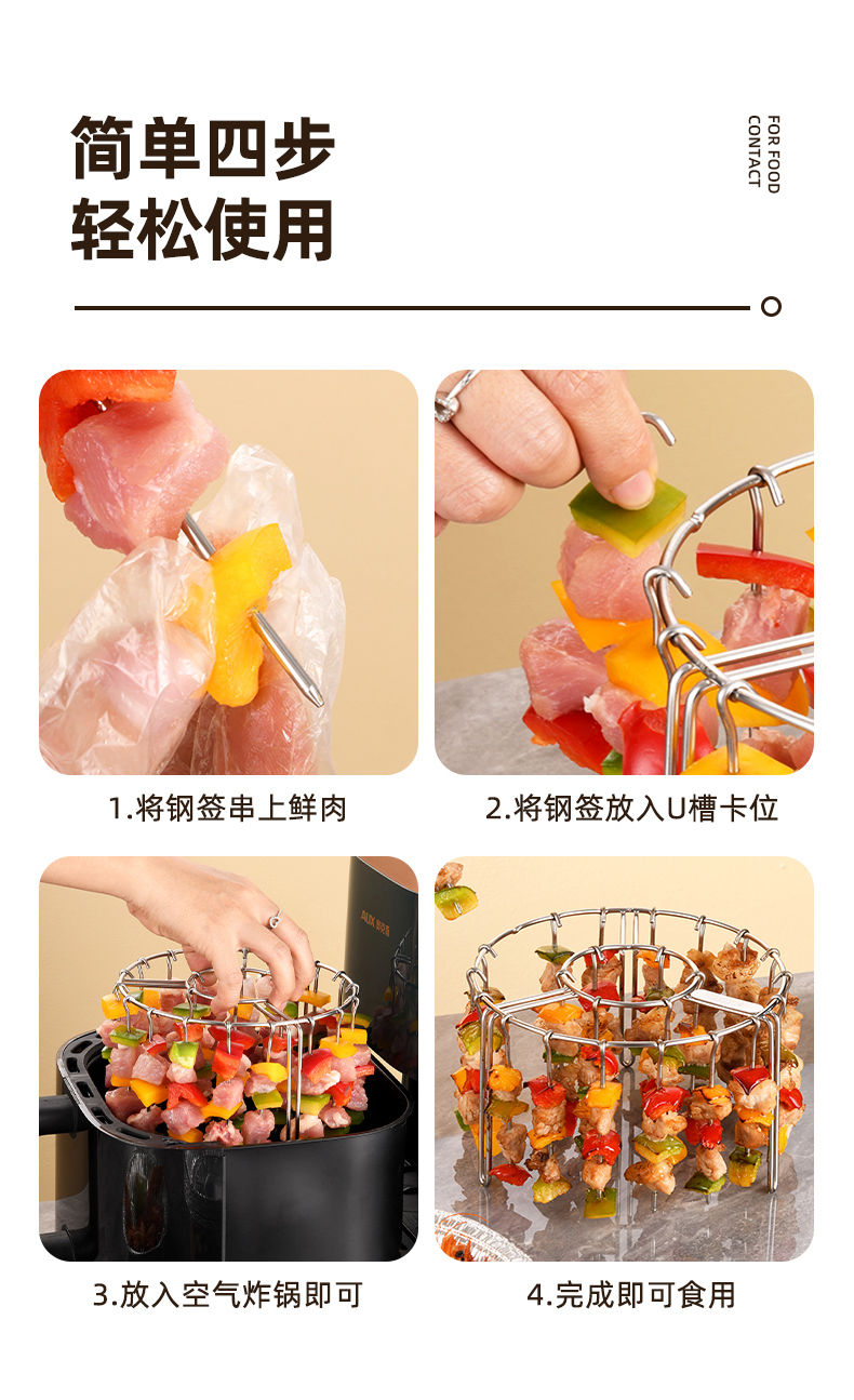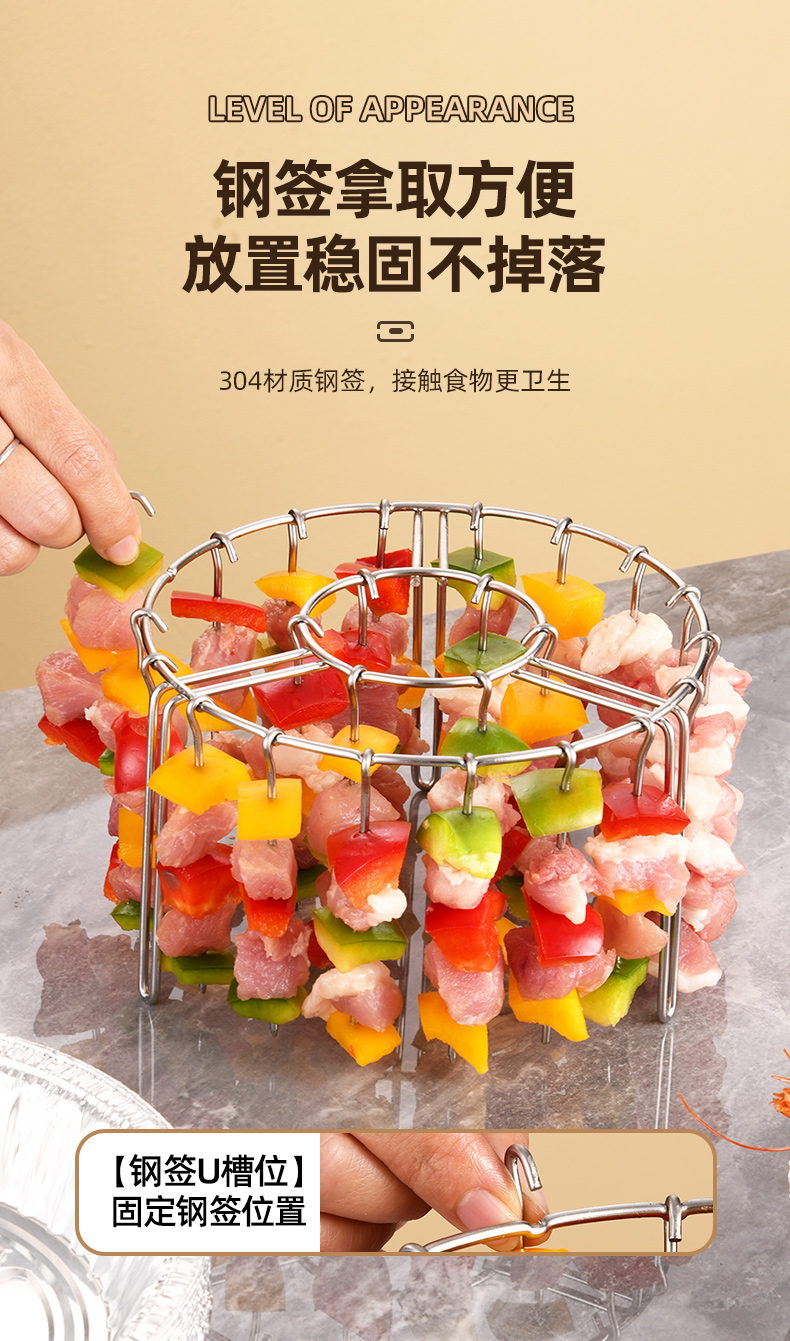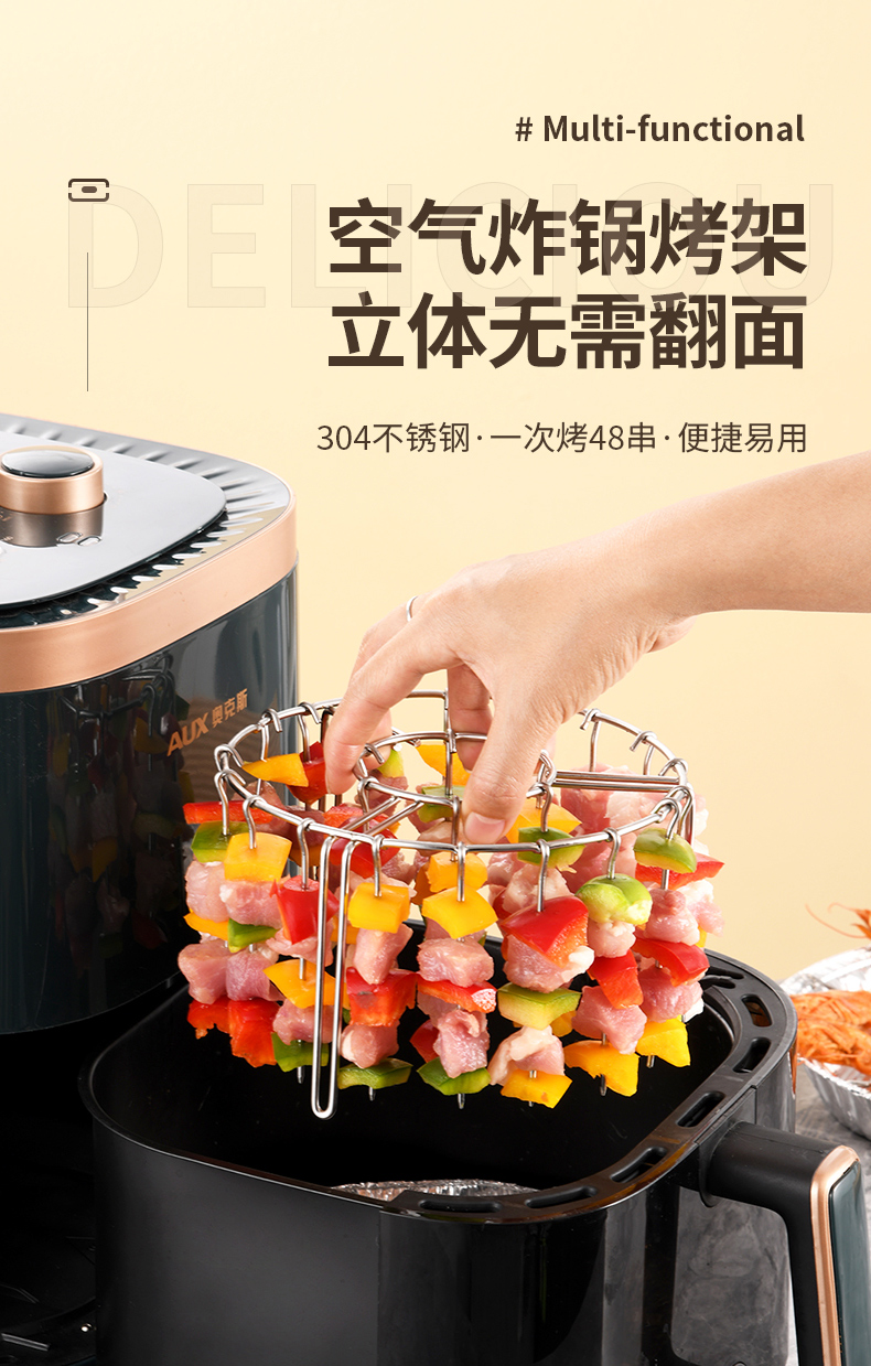 304不锈钢空气炸锅专用烧烤架子立式烤肉串签子烤箱吊炉锡纸碗盘