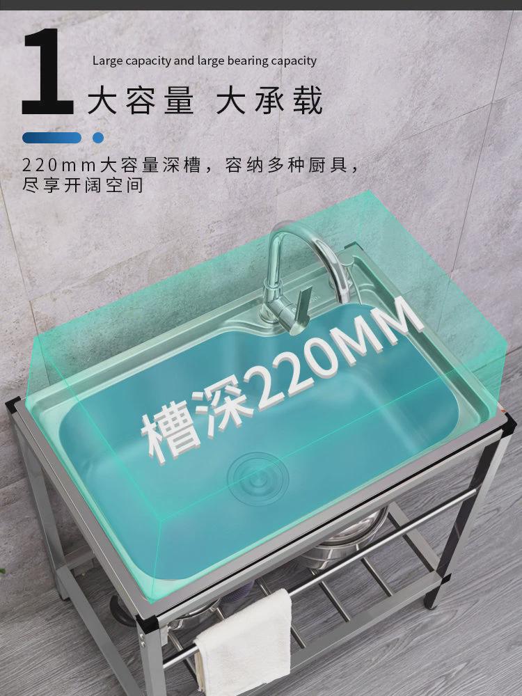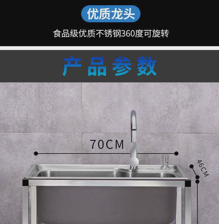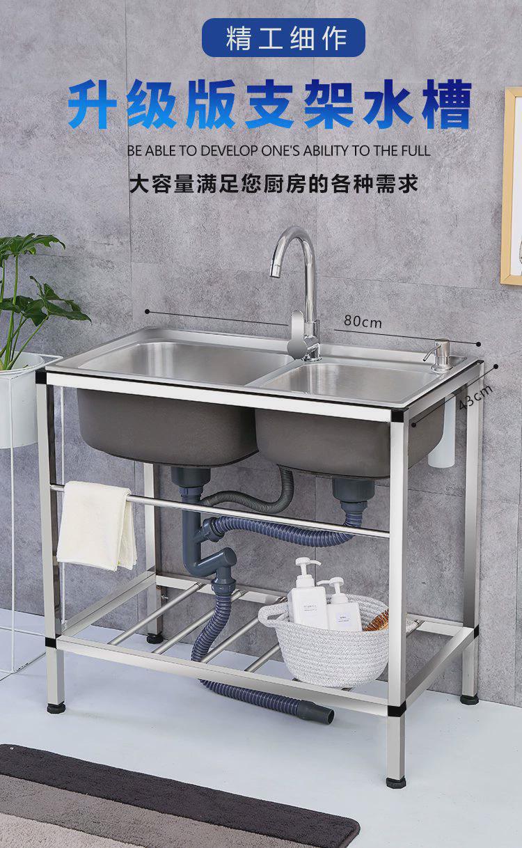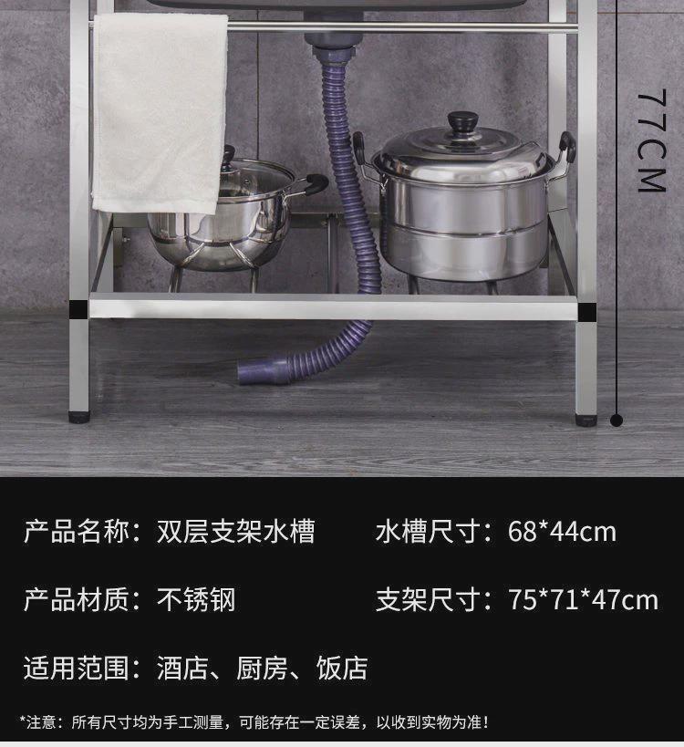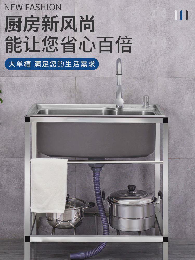 厨房不锈钢水槽洗菜水盆带支架单槽商用洗碗池架子双槽简易洗手盆