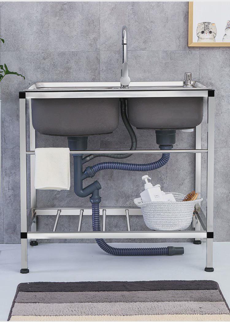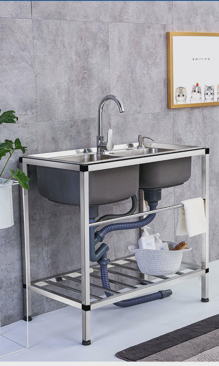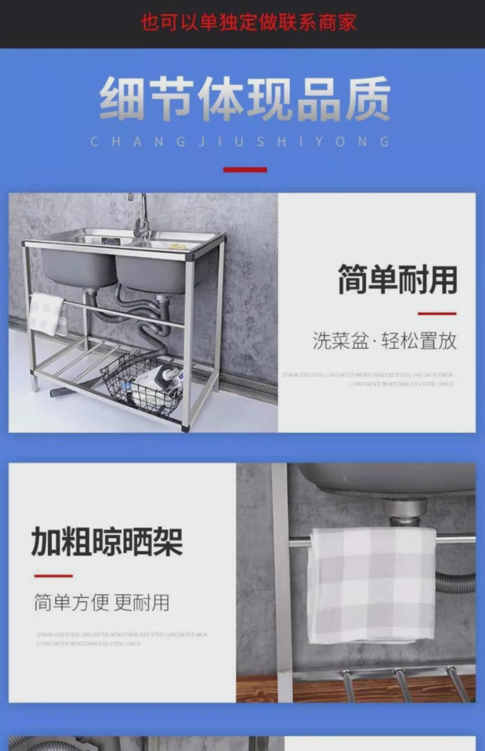 厨房不锈钢水槽洗菜水盆带支架单槽商用洗碗池架子双槽简易洗手盆