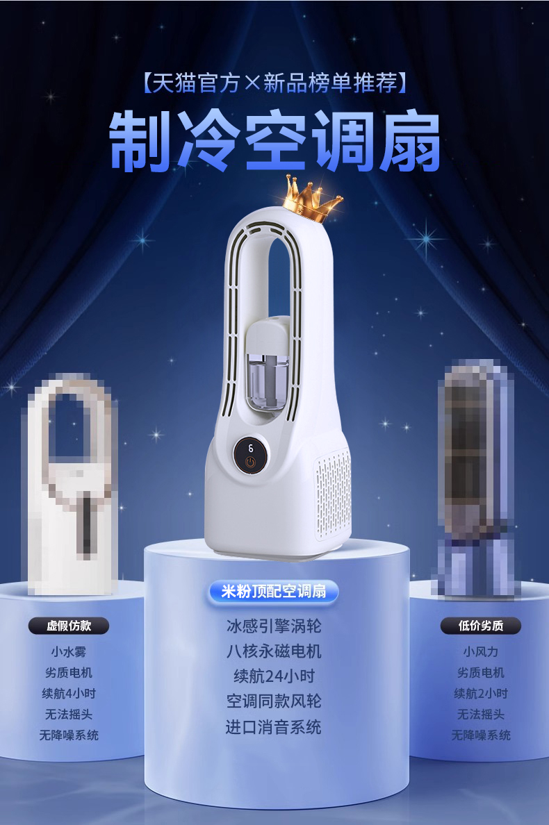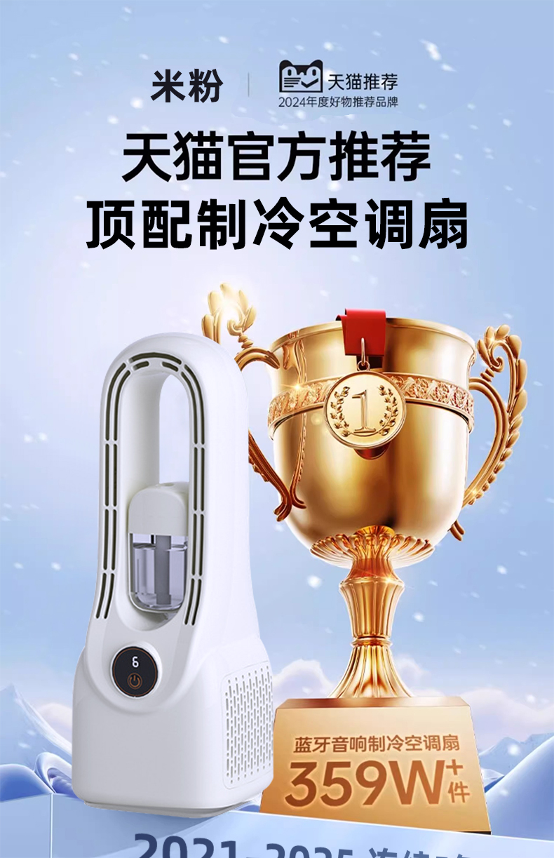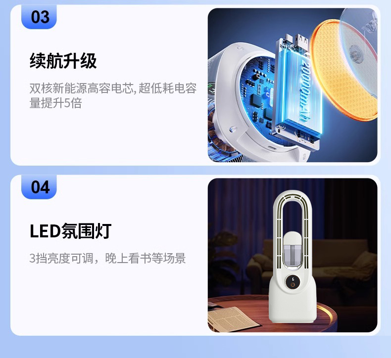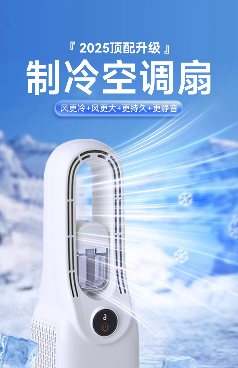 无叶电风扇超长续航2025新款家用超静音宿舍办公室桌上制冷空调扇