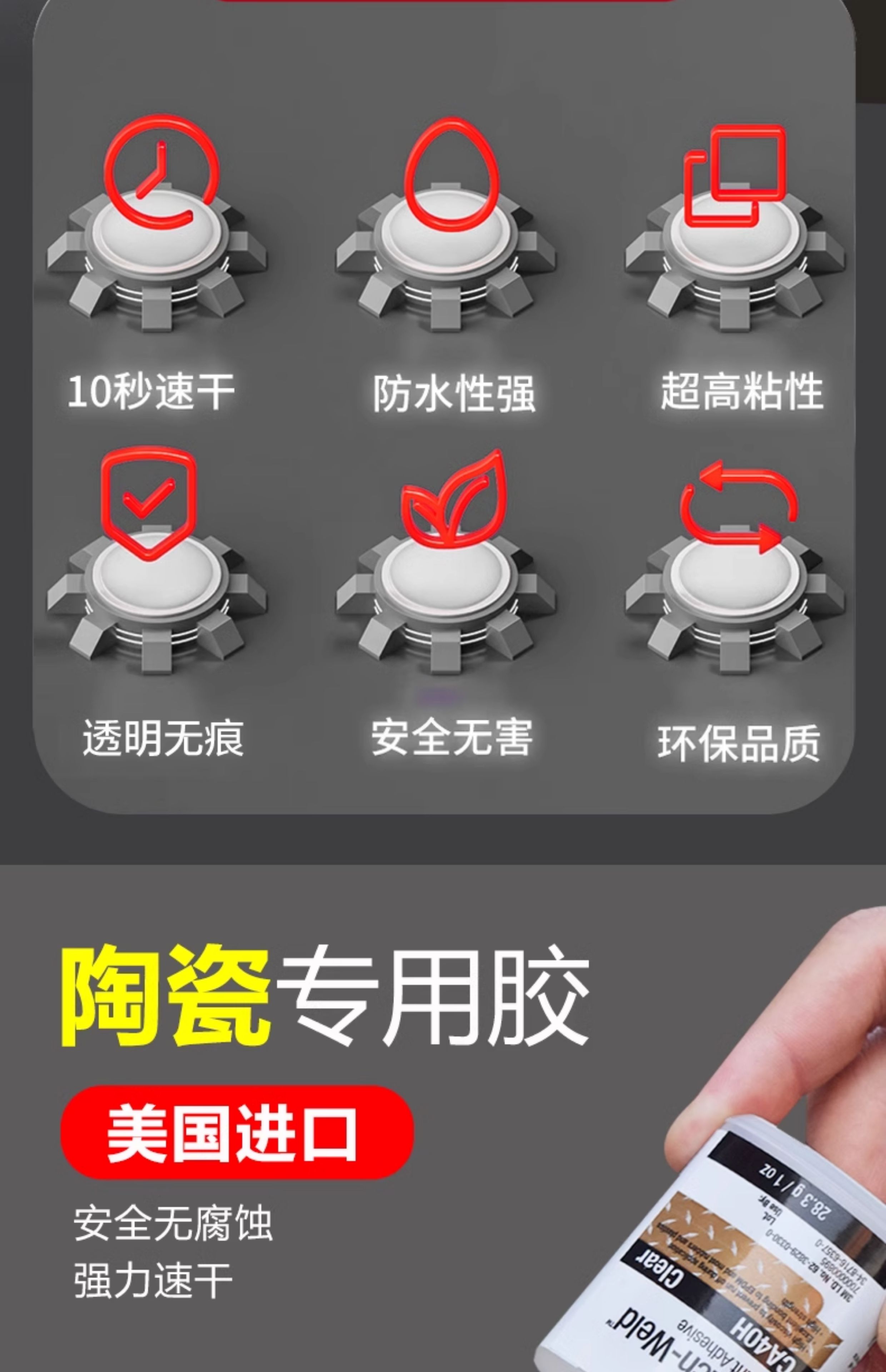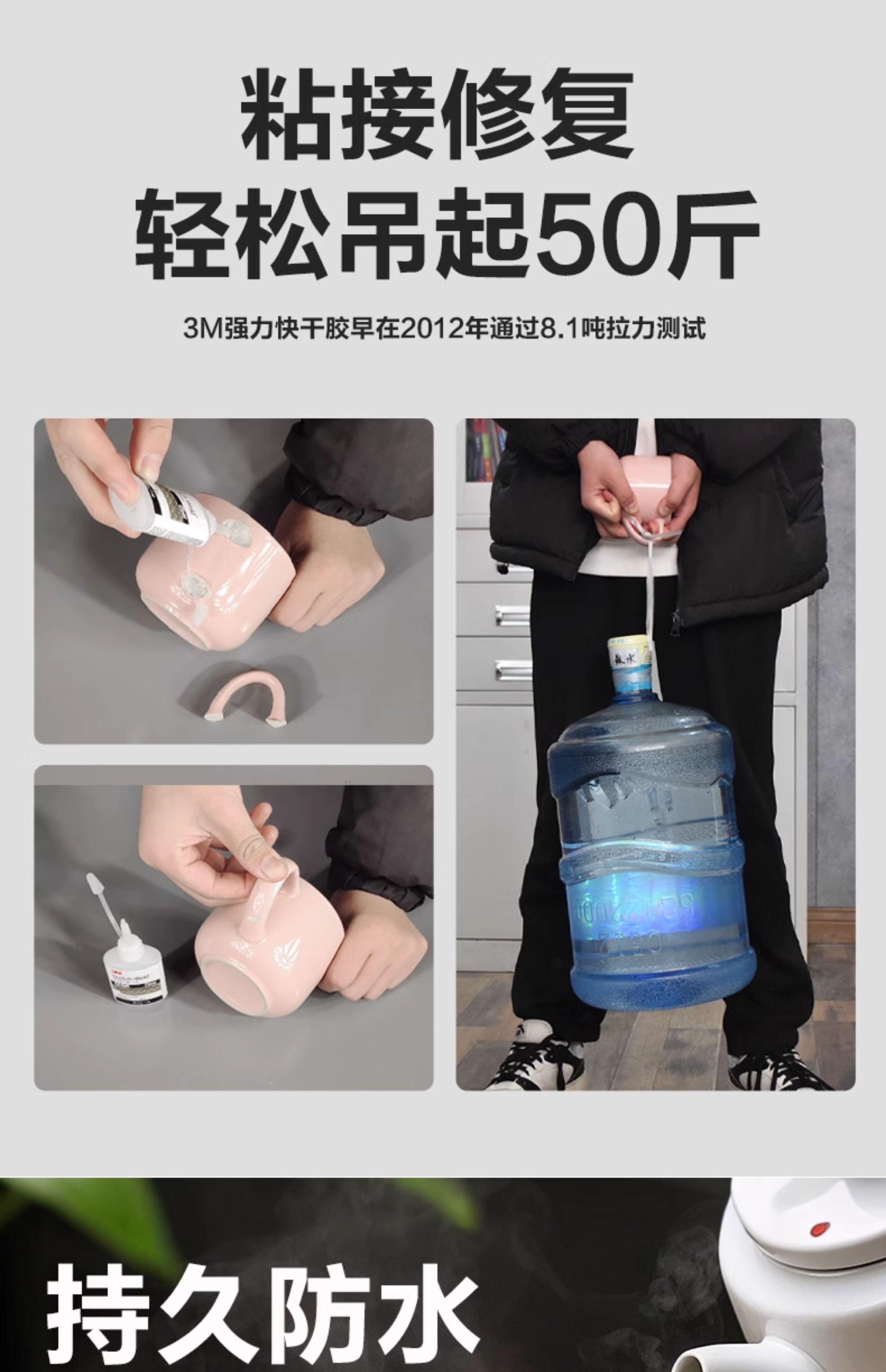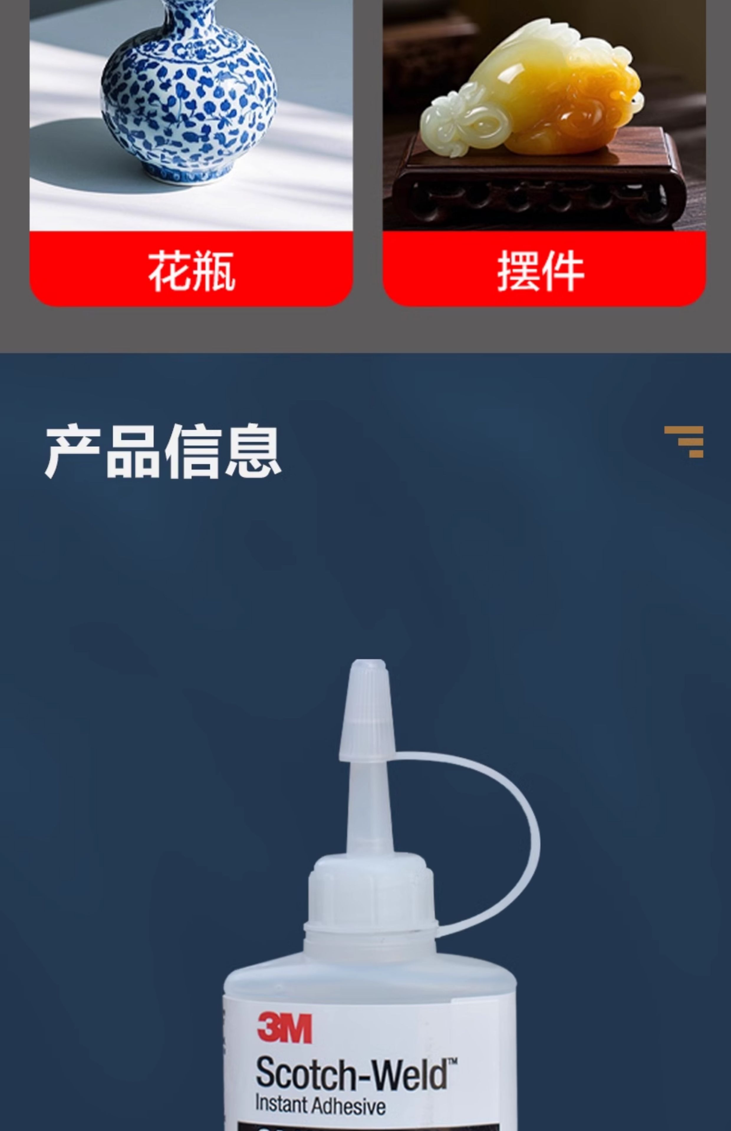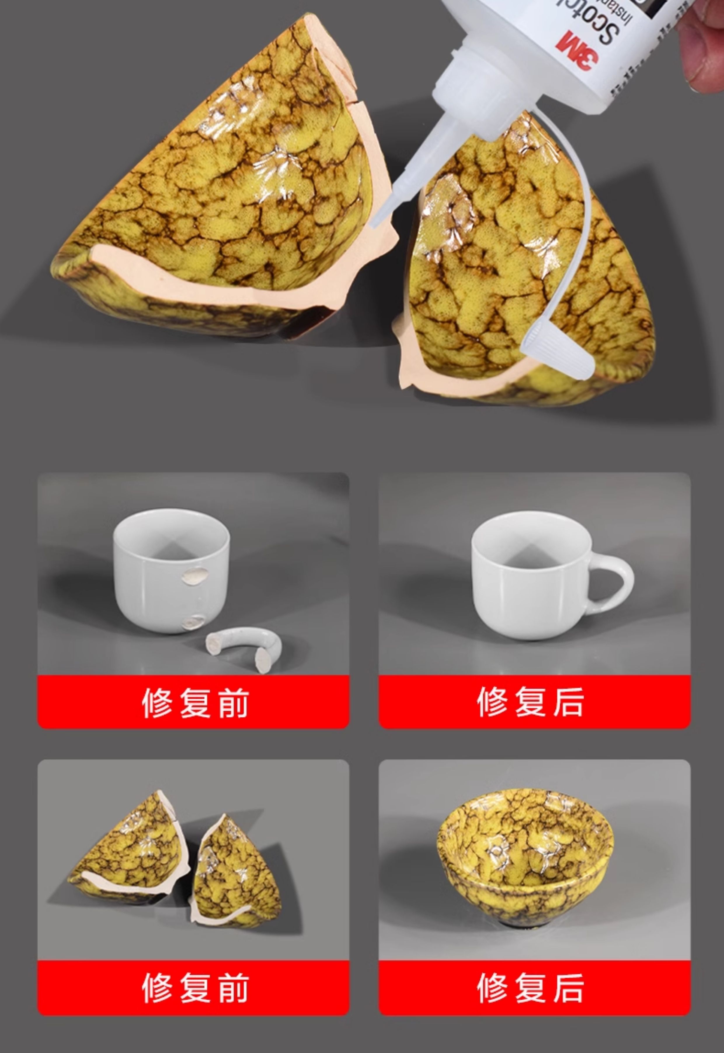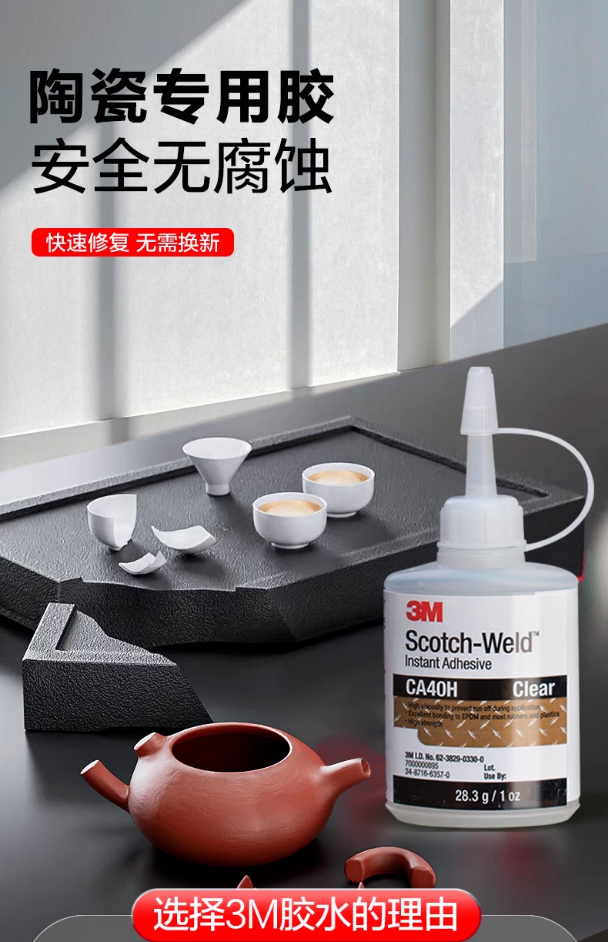 3M粘陶瓷胶专用强力胶瓷器无痕修复石材大理石台盆裂纹耐温高粘接工艺品紫砂壶茶杯花盆陶瓷洗脸盆裂缝修补胶
