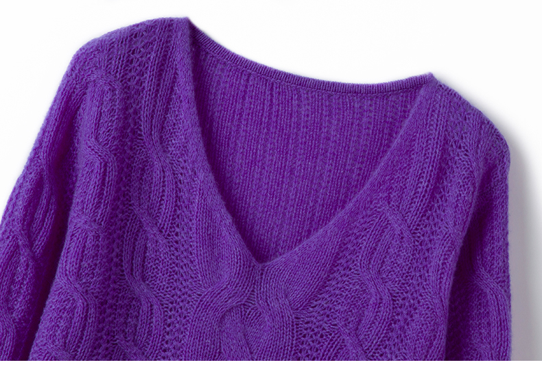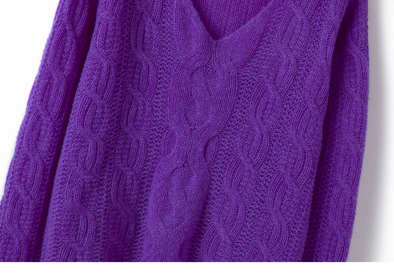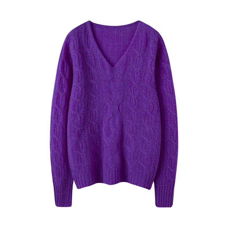 抓人的舒服好看~V领绞花羊绒衫女宽松慵懒风纯山羊绒毛衣秋冬新款