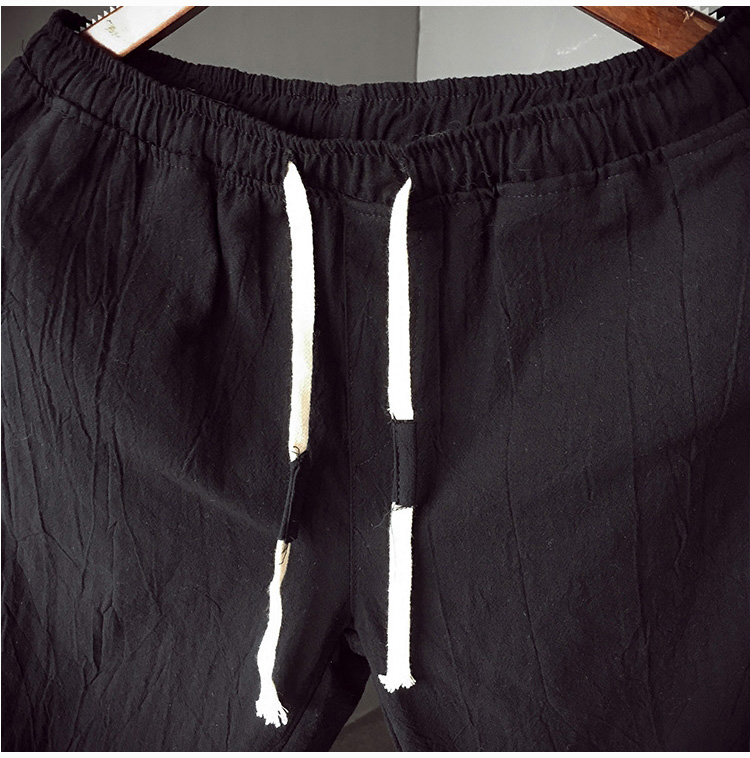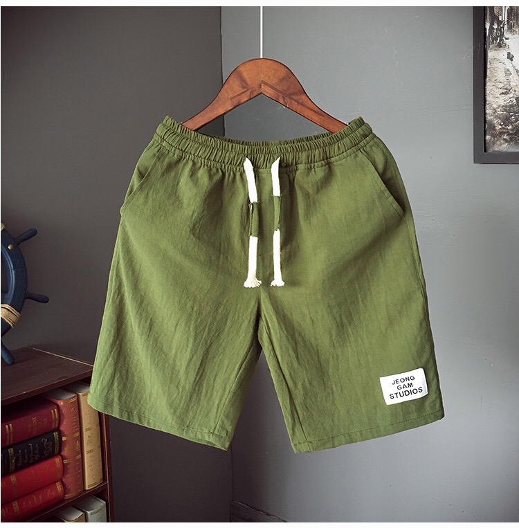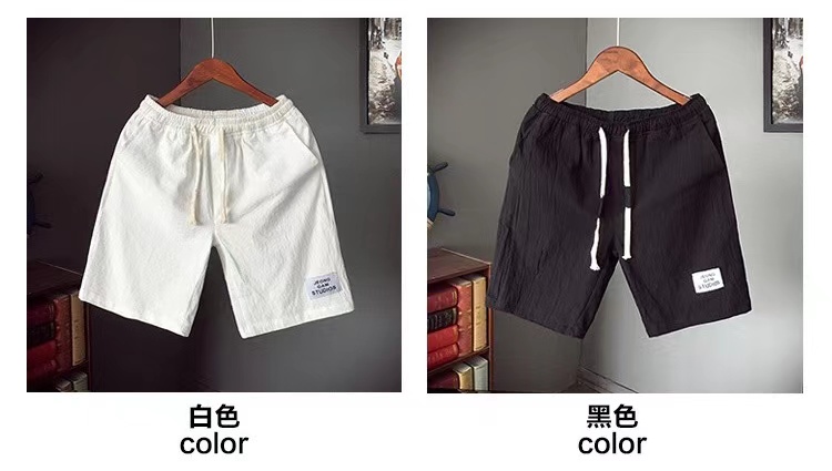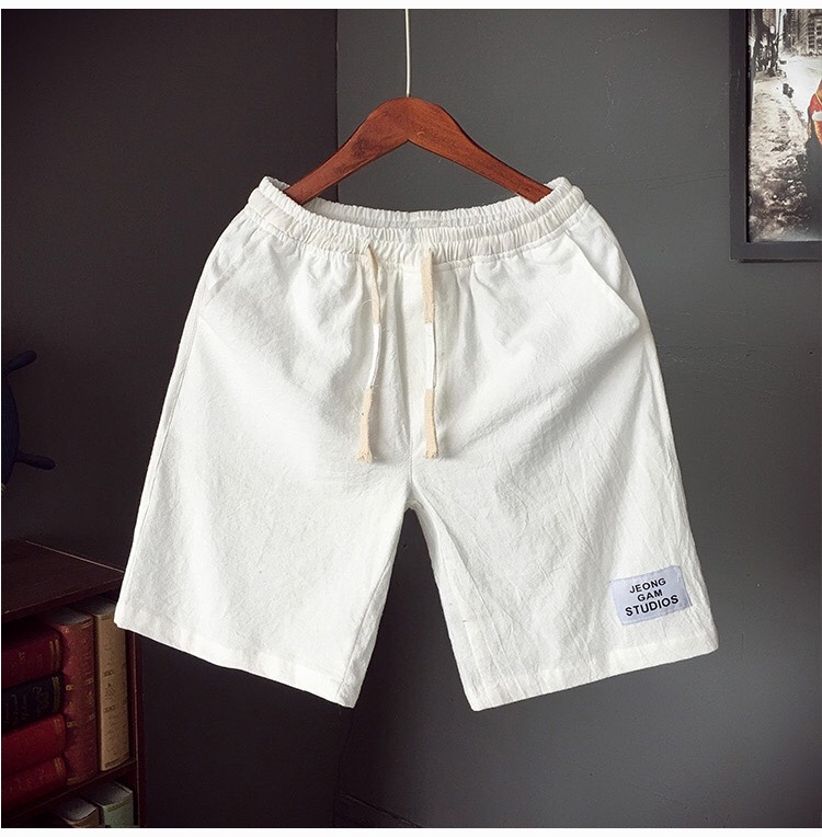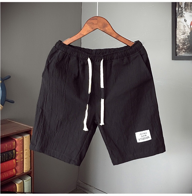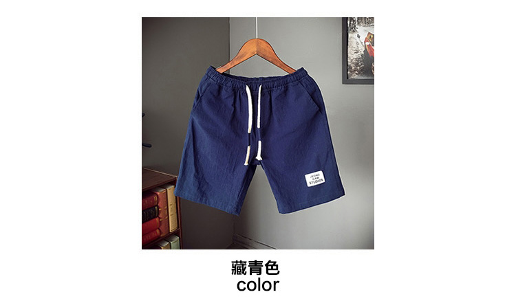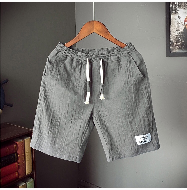 日系亚麻短裤男士休闲五分裤棉麻中裤松紧潮流麻布透气5分沙滩裤