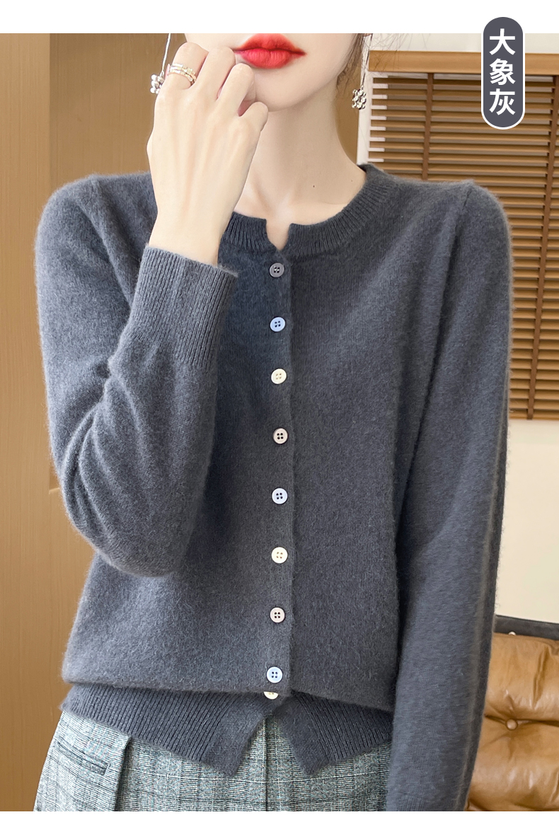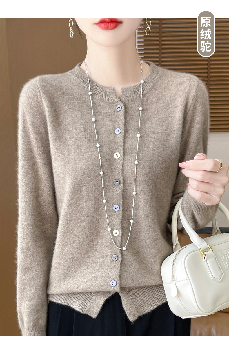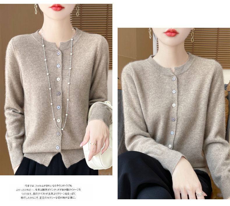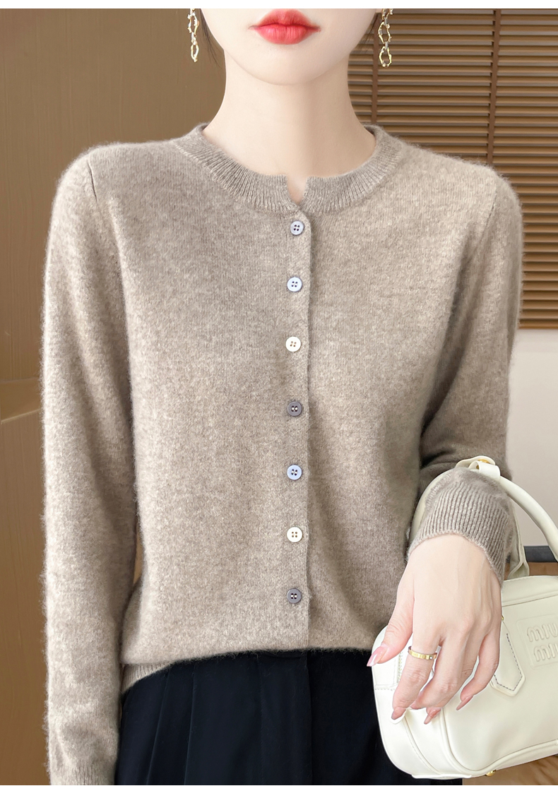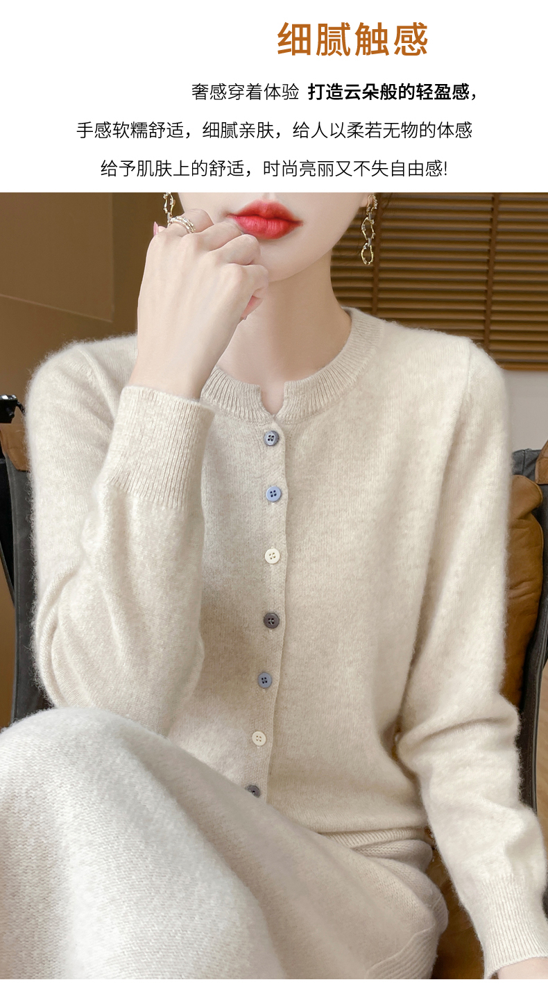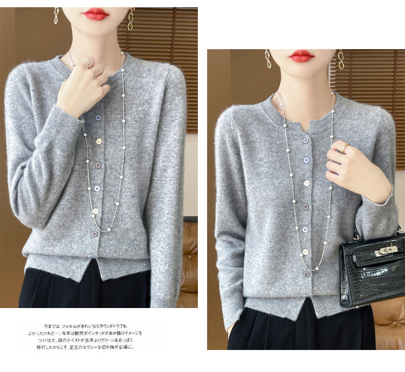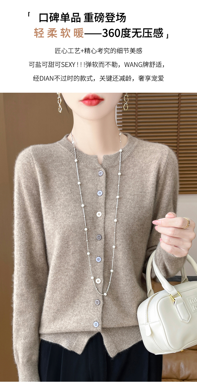 24秋冬新款100%纯羊毛开衫女圆领长袖针织毛衣宽松羊绒衫外套上衣