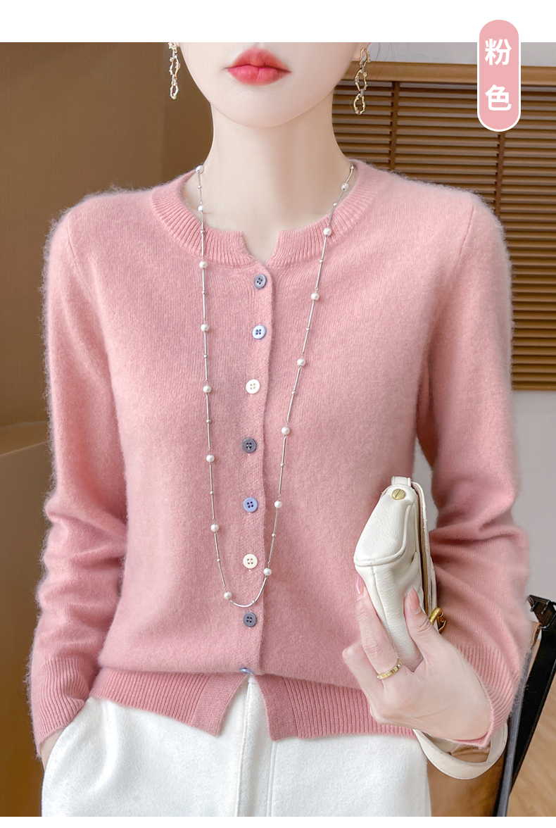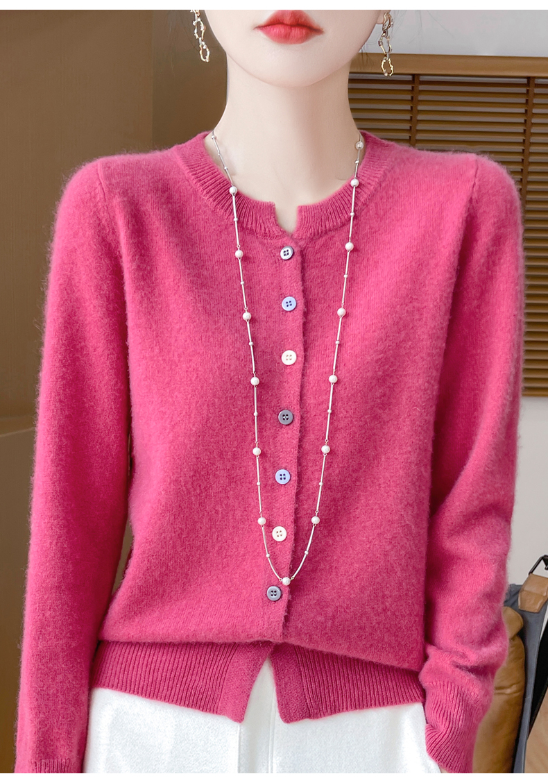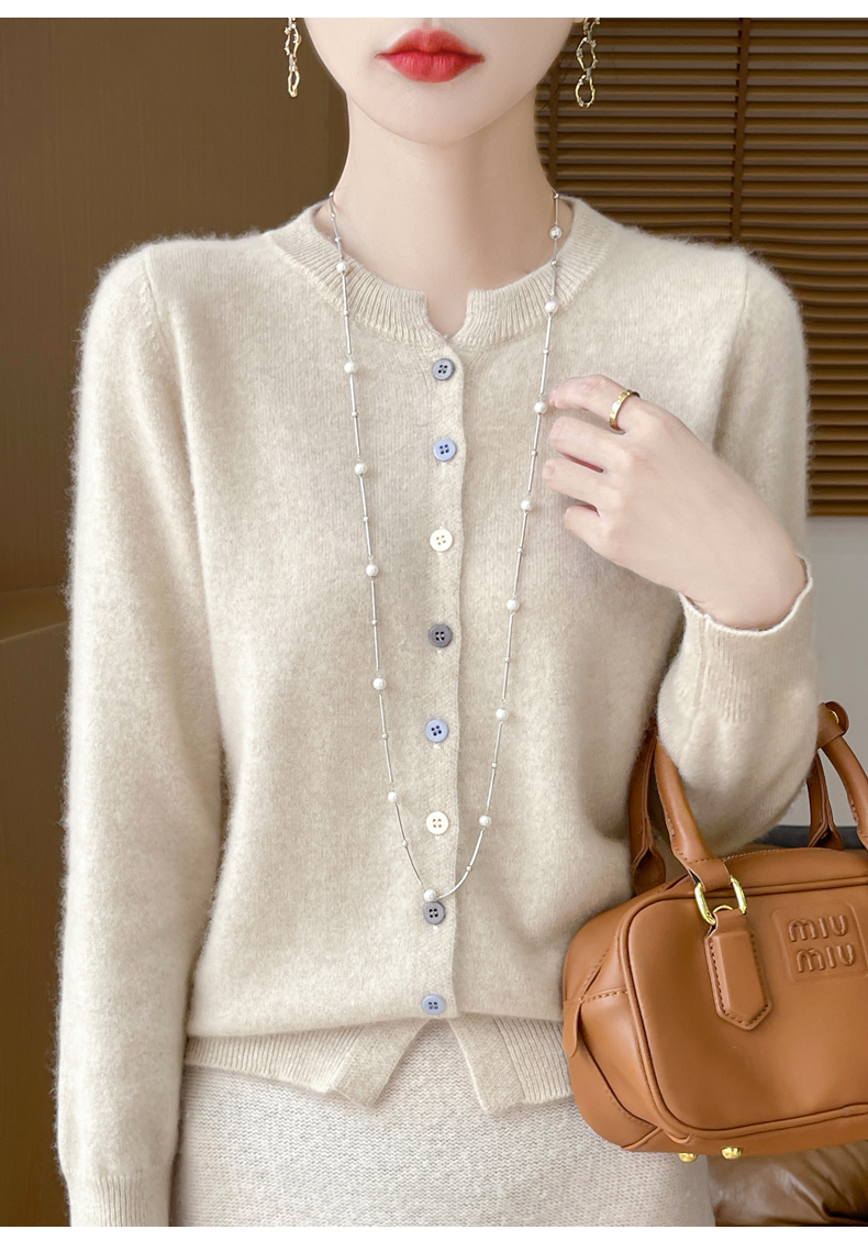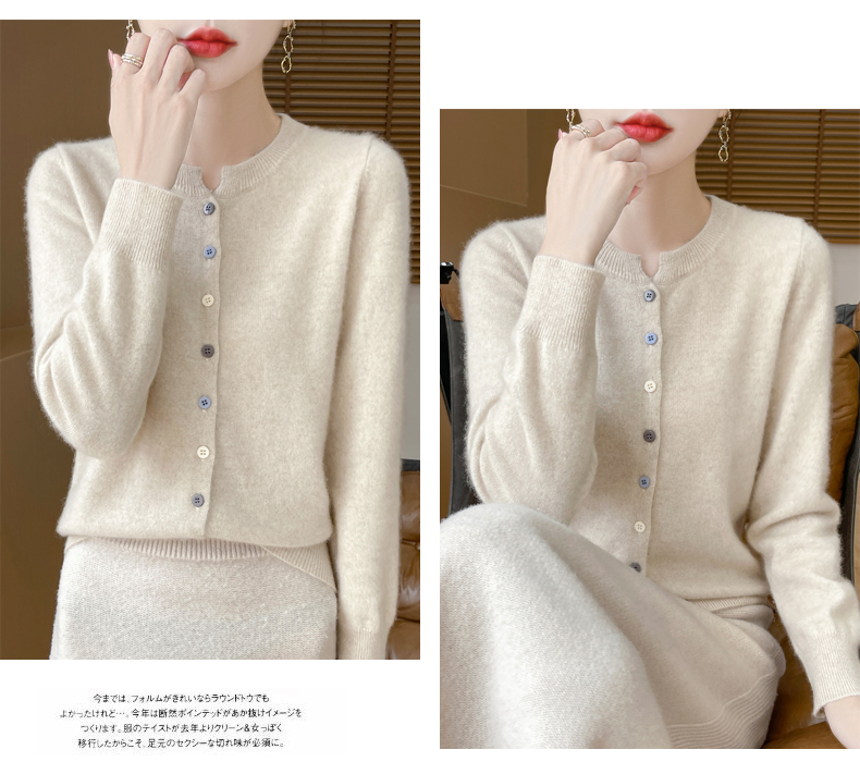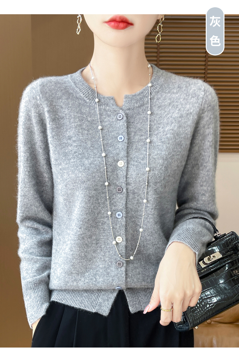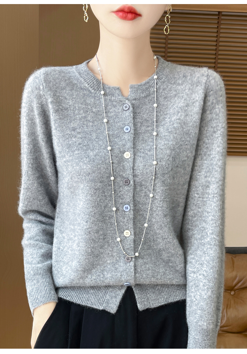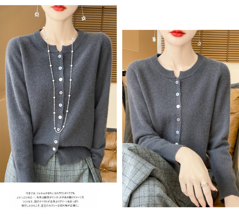 24秋冬新款100%纯羊毛开衫女圆领长袖针织毛衣宽松羊绒衫外套上衣