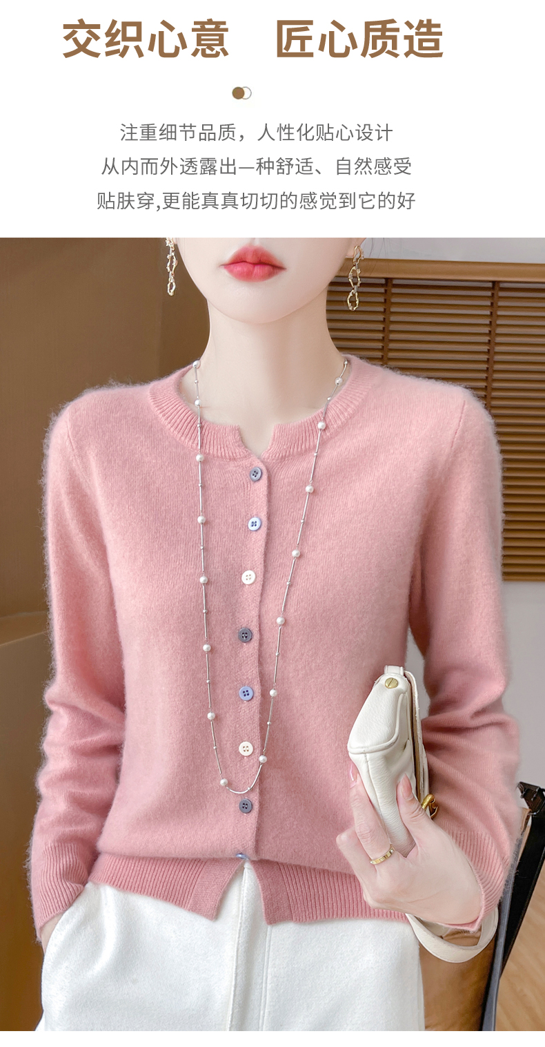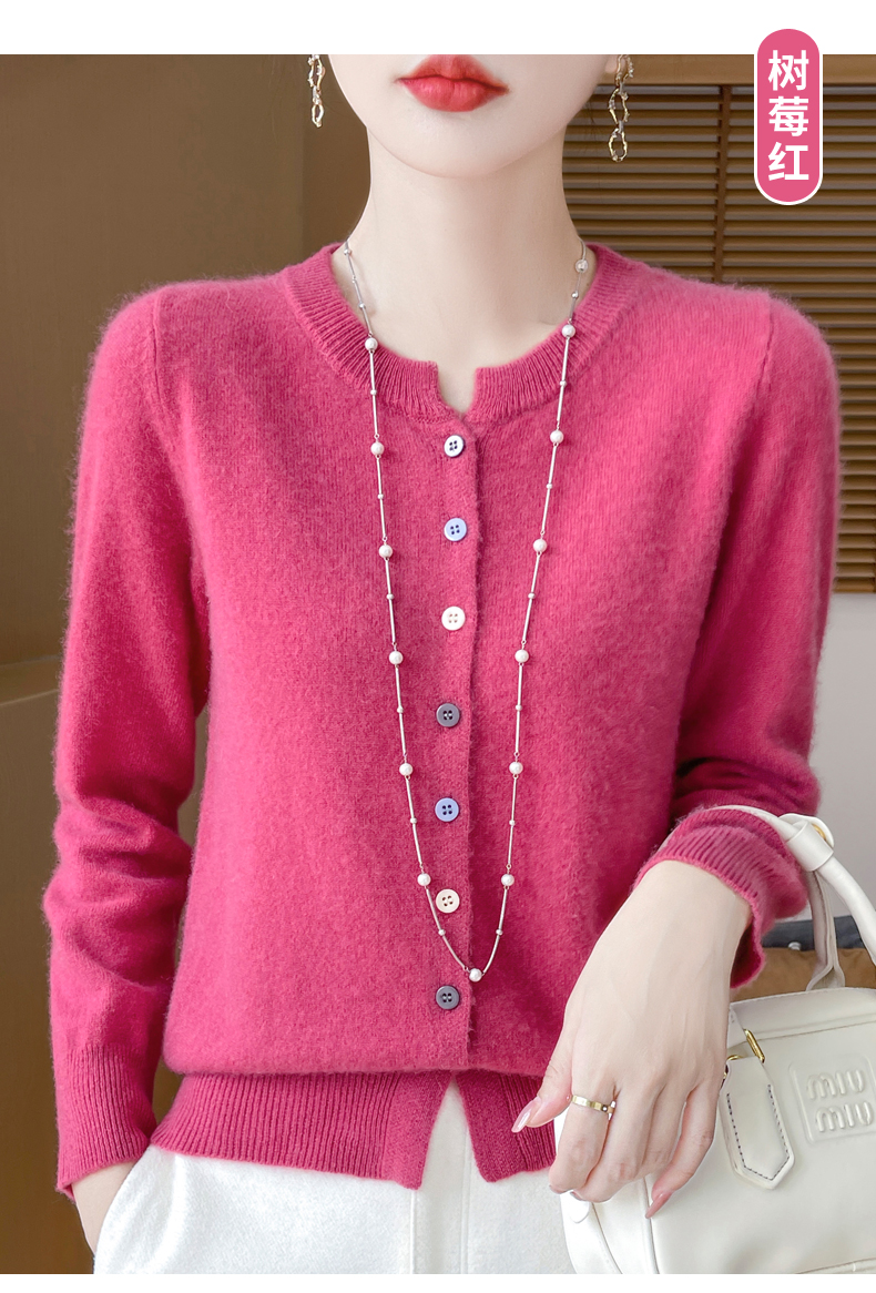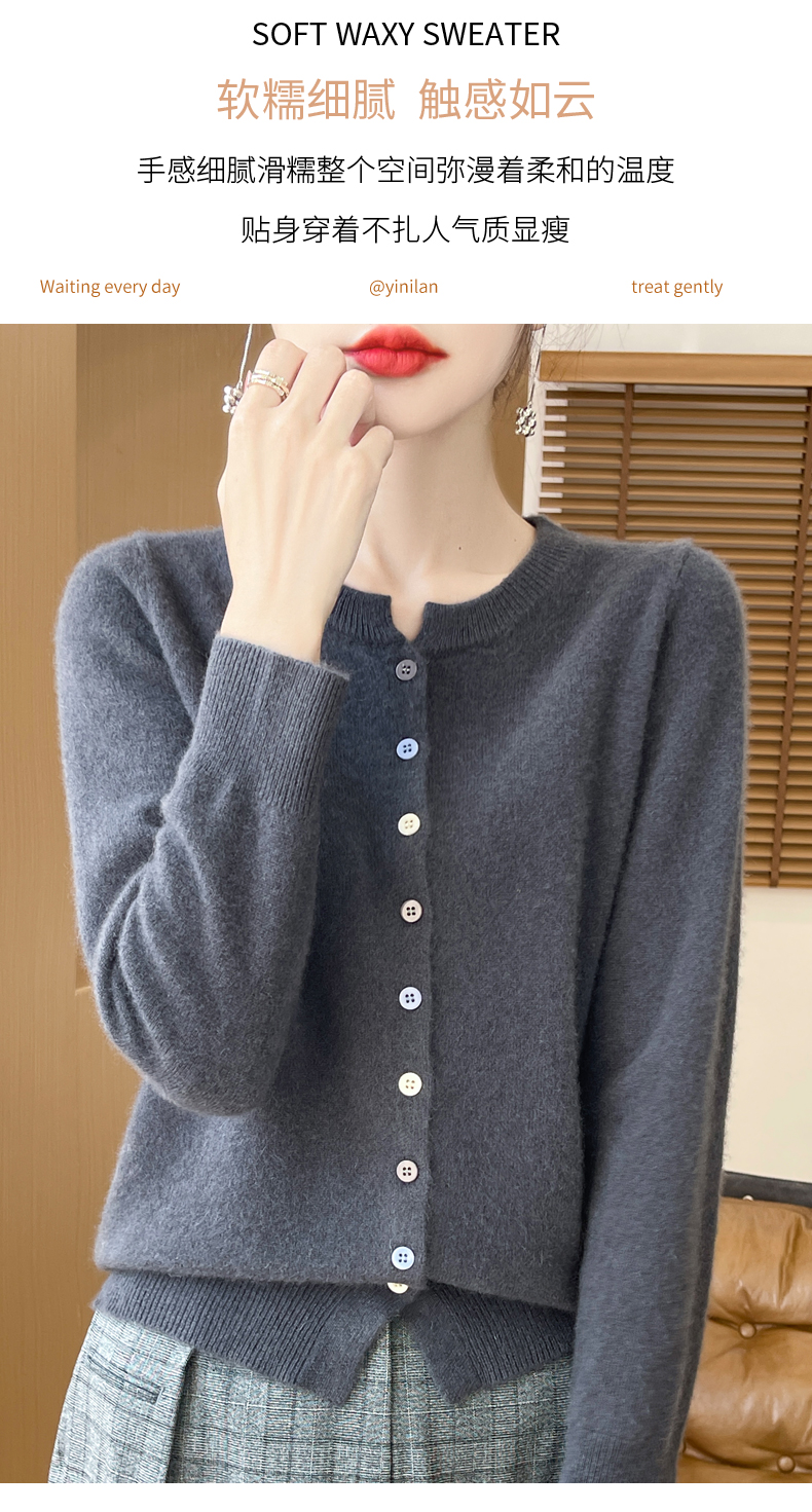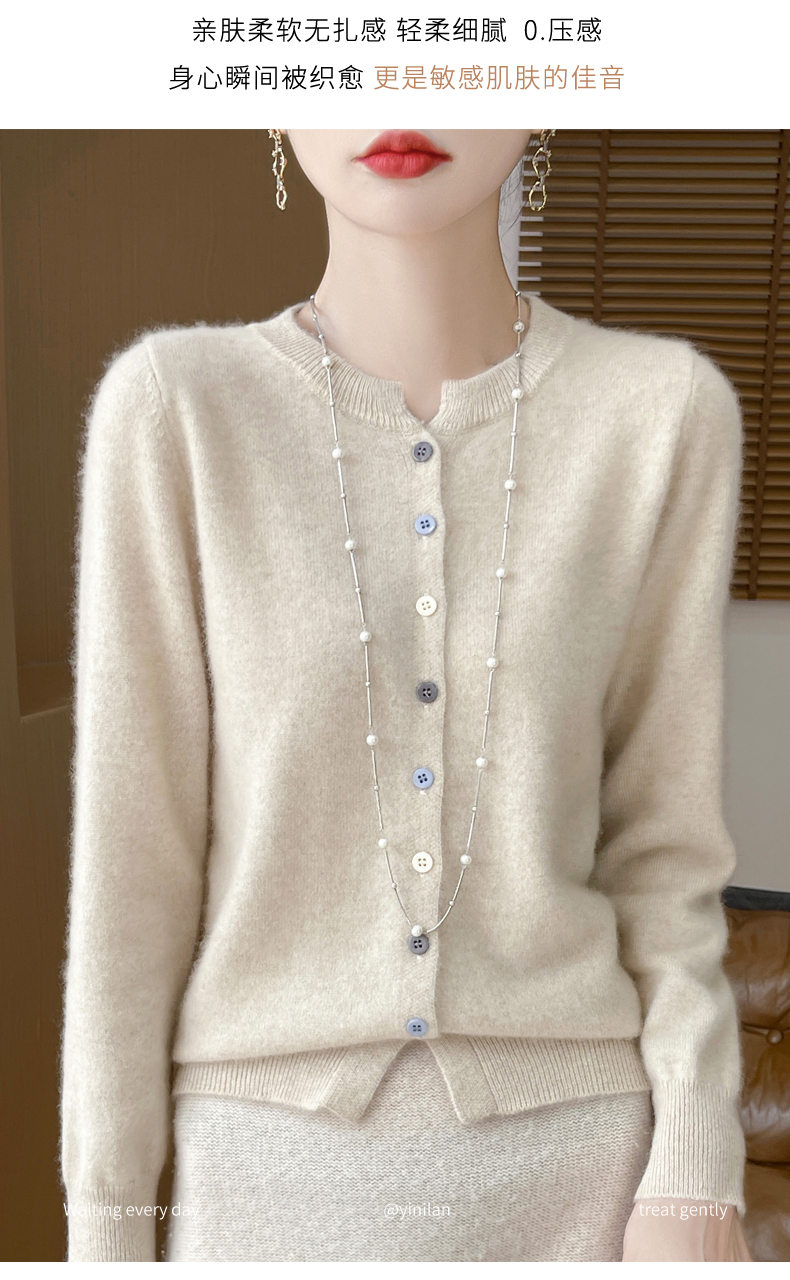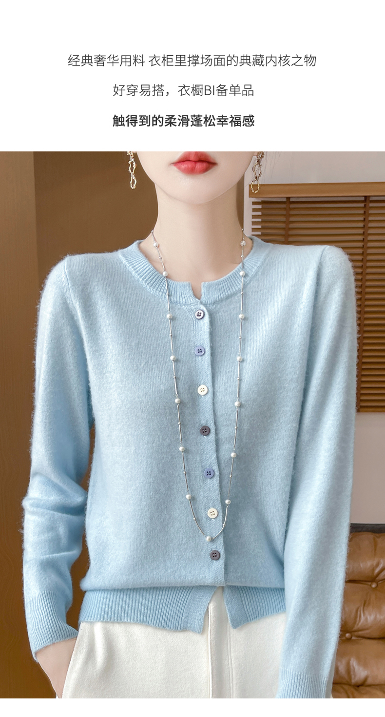 24秋冬新款100%纯羊毛开衫女圆领长袖针织毛衣宽松羊绒衫外套上衣