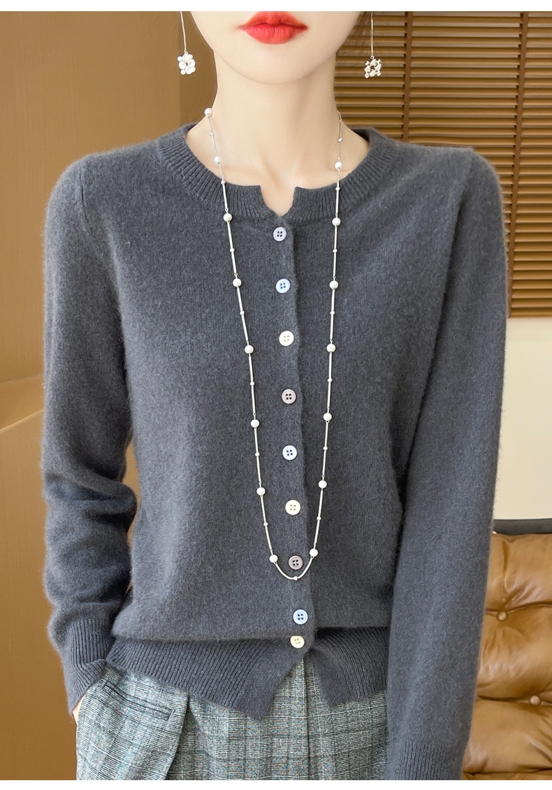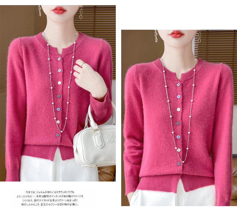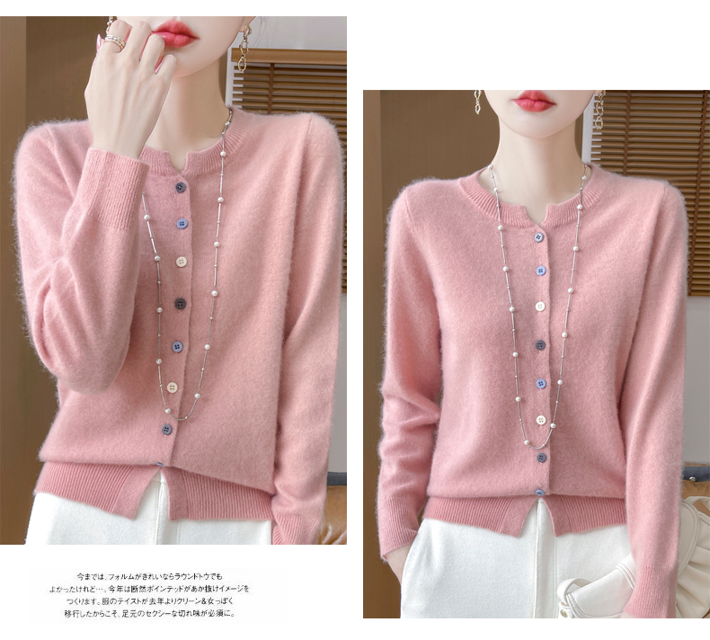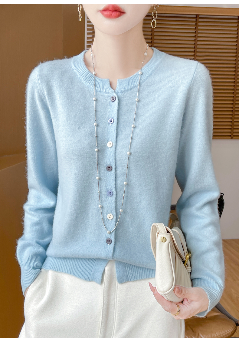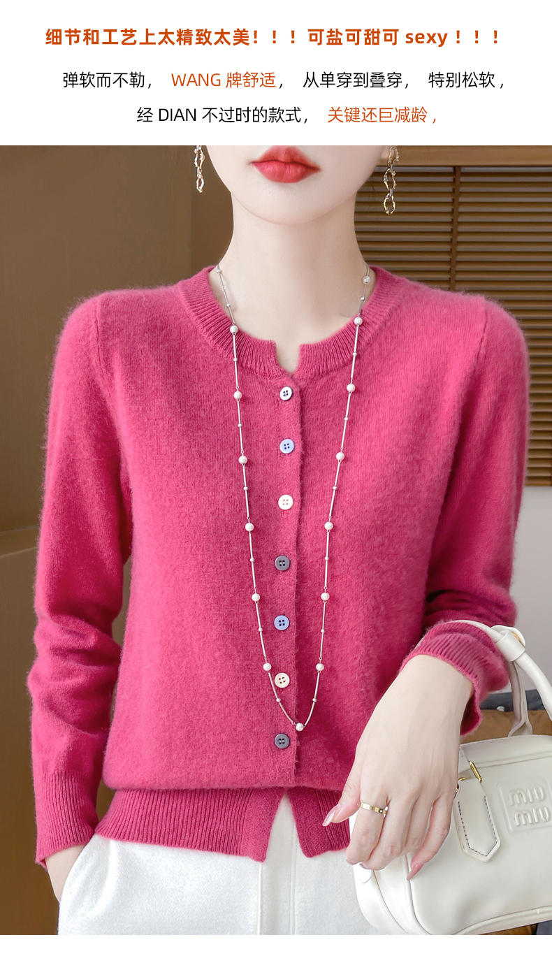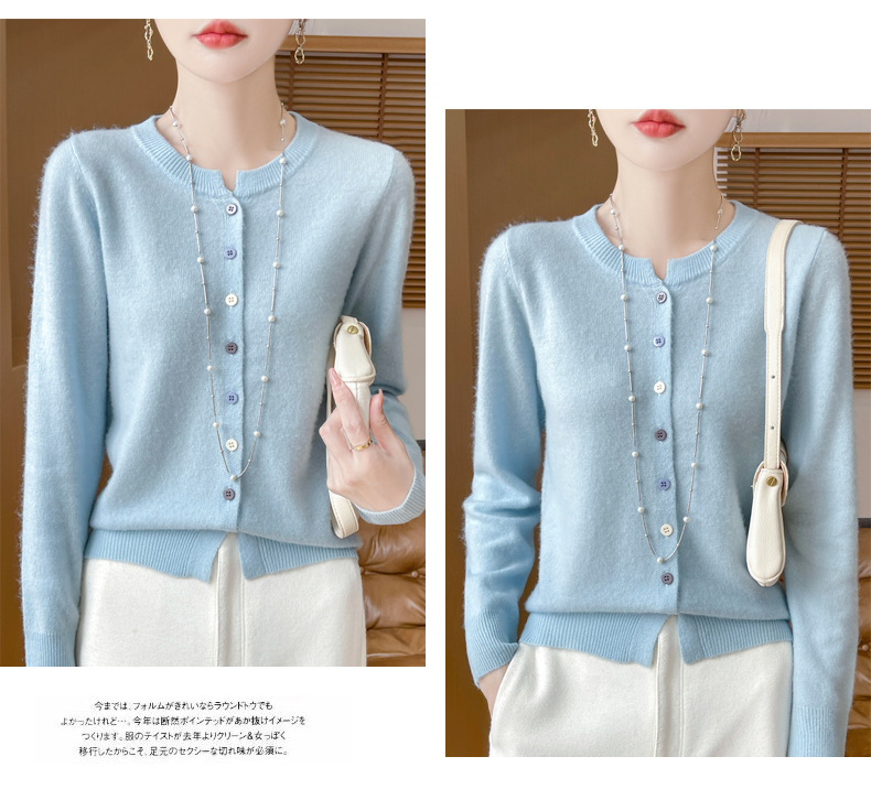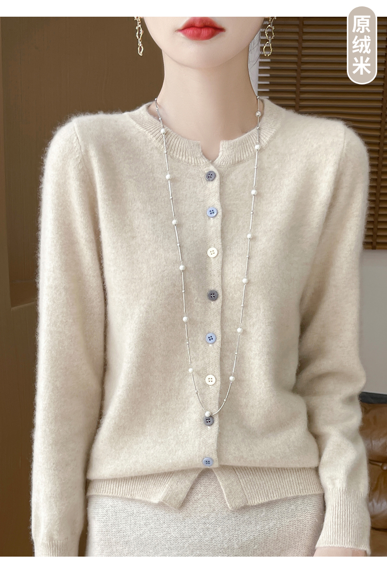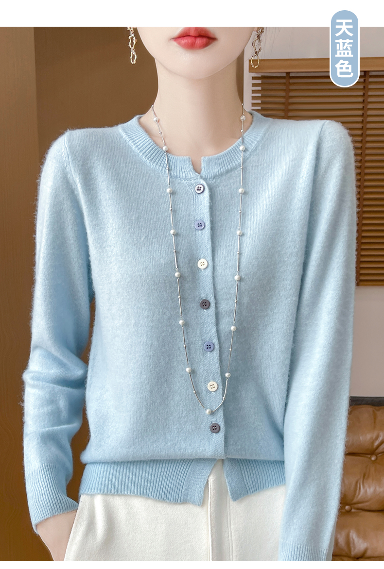 24秋冬新款100%纯羊毛开衫女圆领长袖针织毛衣宽松羊绒衫外套上衣