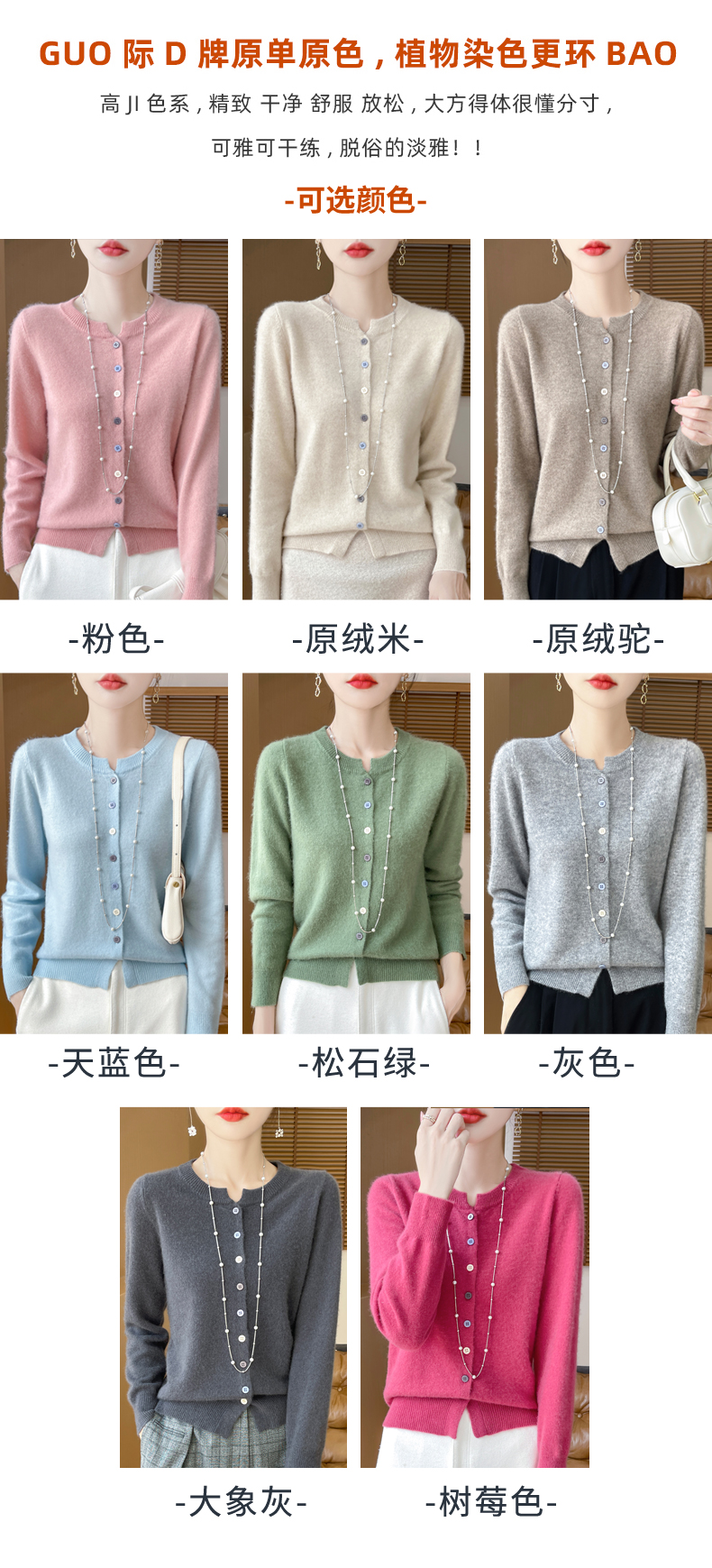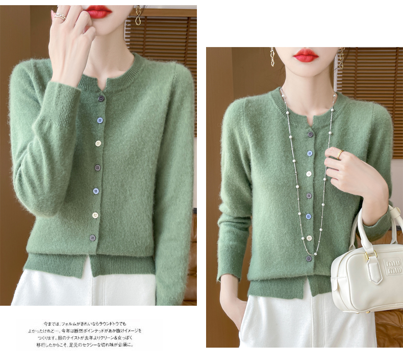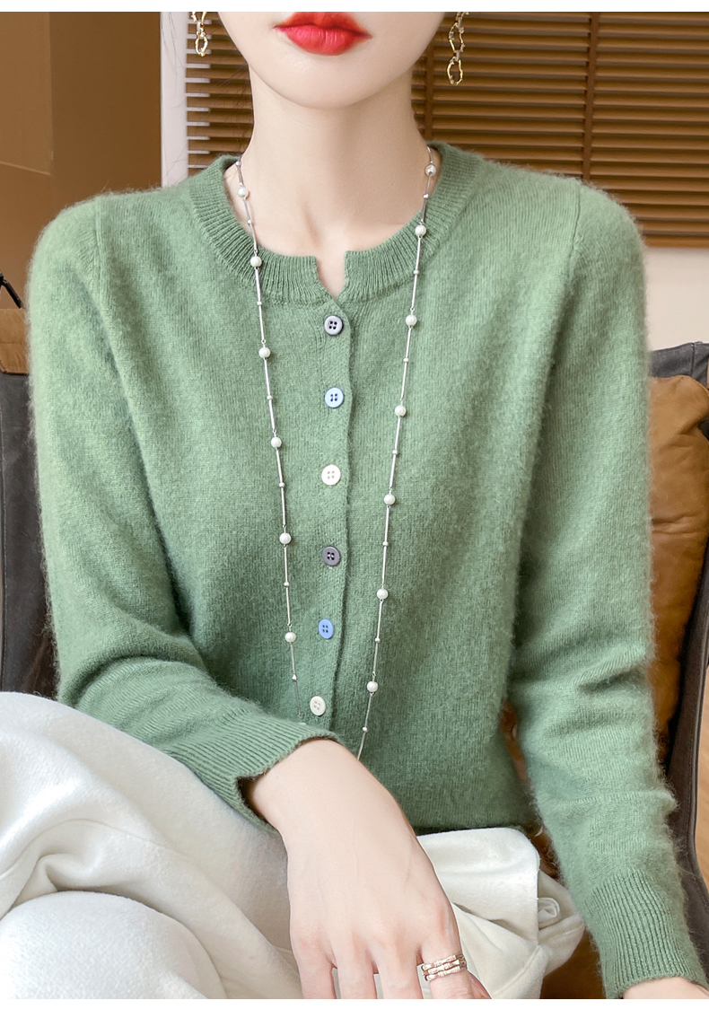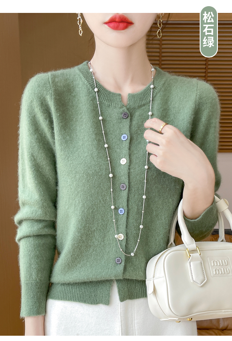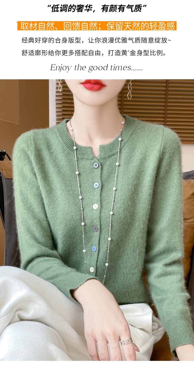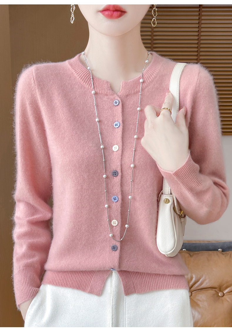 24秋冬新款100%纯羊毛开衫女圆领长袖针织毛衣宽松羊绒衫外套上衣