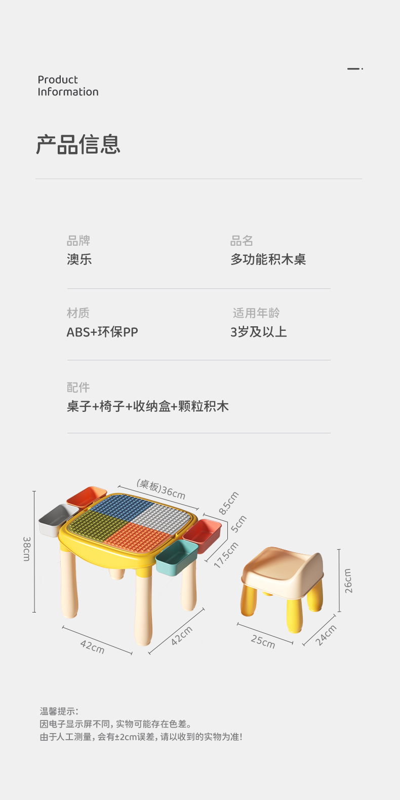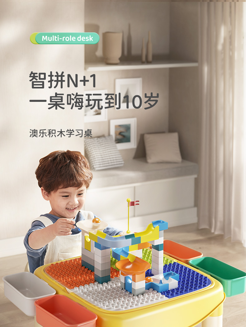 澳乐儿童多功能积木桌子大颗粒拼图益智力拼装游戏玩具宝宝男女孩