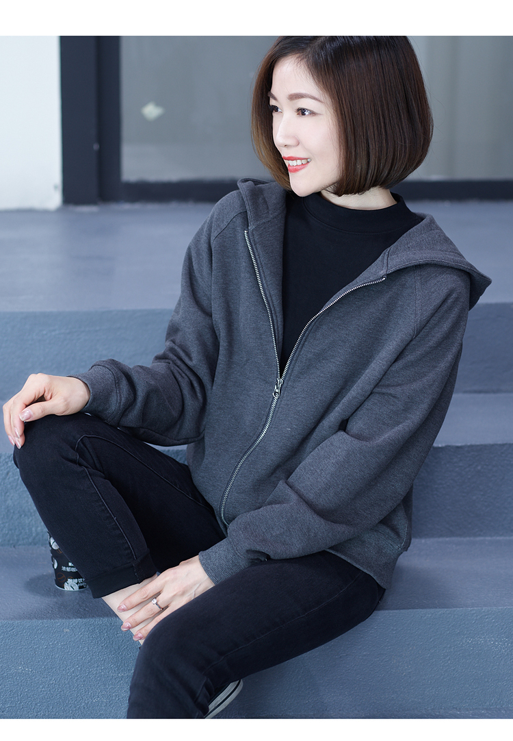 外套女春装2025新款连帽全棉休闲大码宽松长袖纯棉黑色上衣服外搭