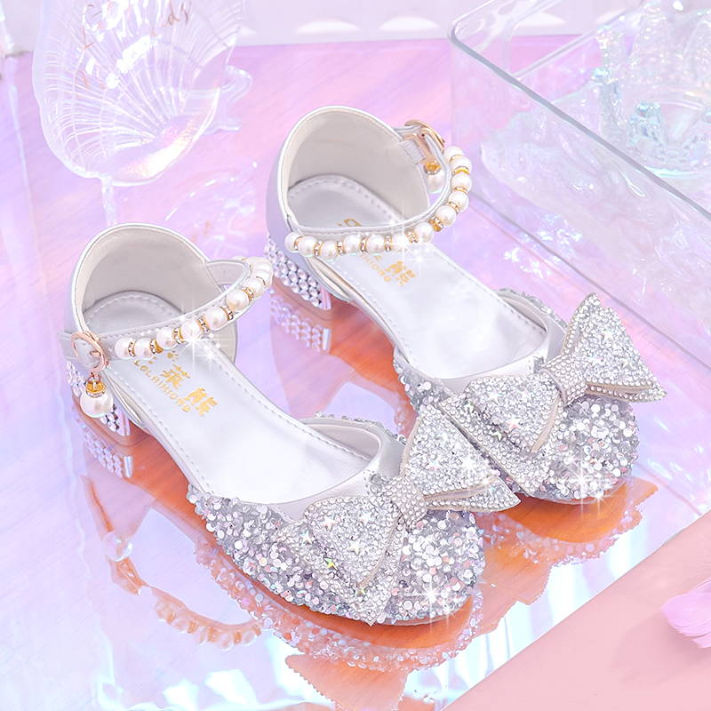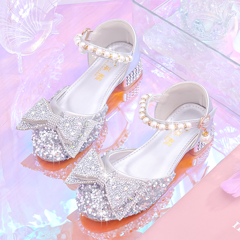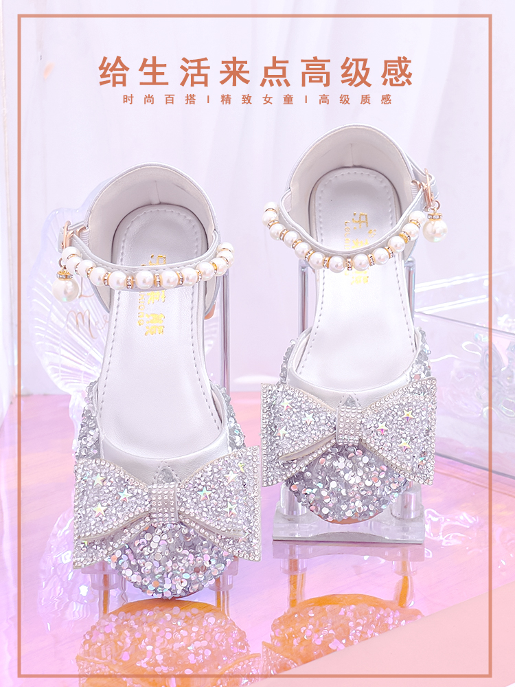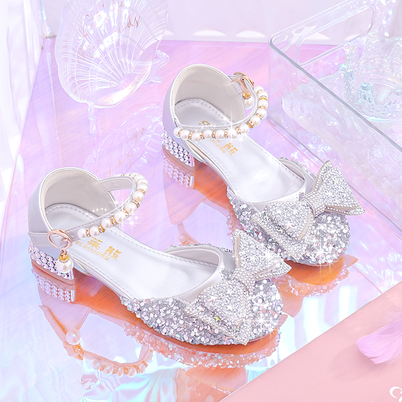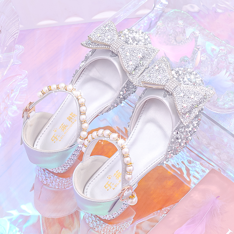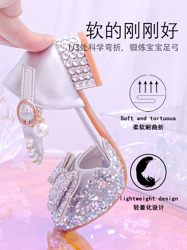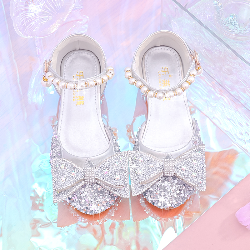 女童凉鞋软底宝宝蝴蝶结公主鞋儿童演出配礼服鞋银色小女孩水晶鞋