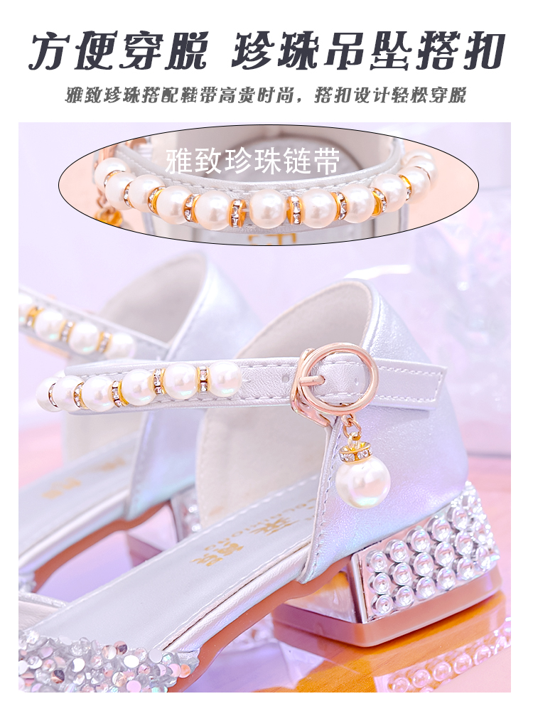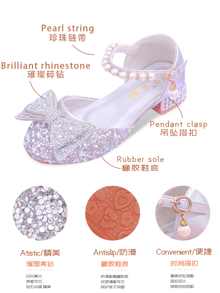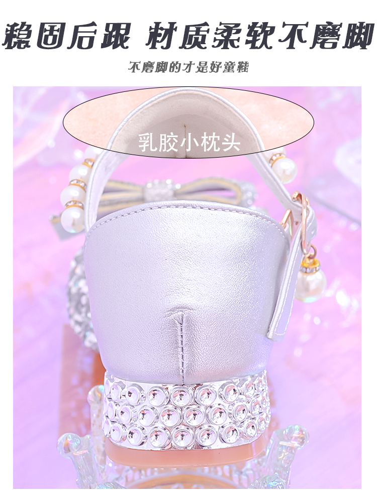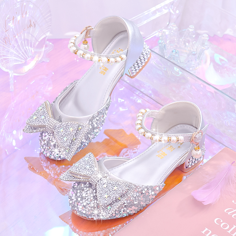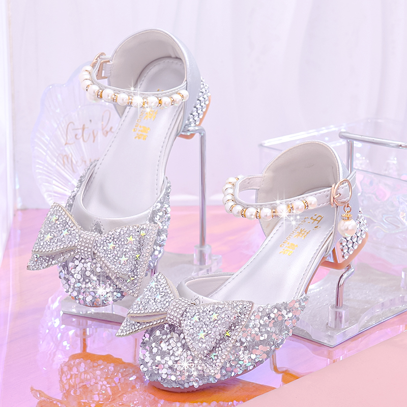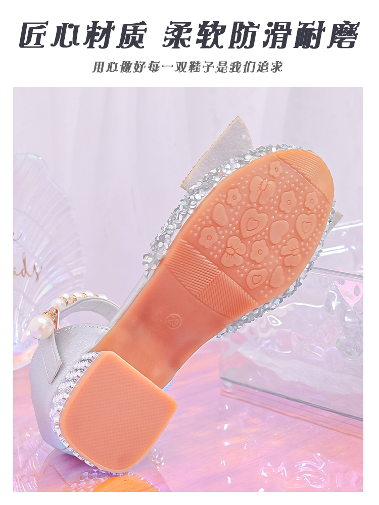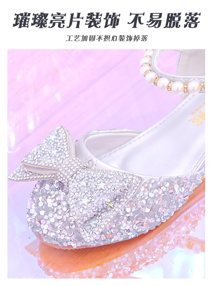 女童凉鞋软底宝宝蝴蝶结公主鞋儿童演出配礼服鞋银色小女孩水晶鞋