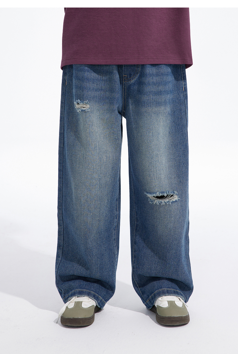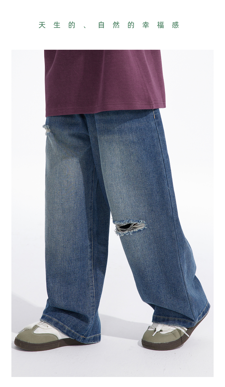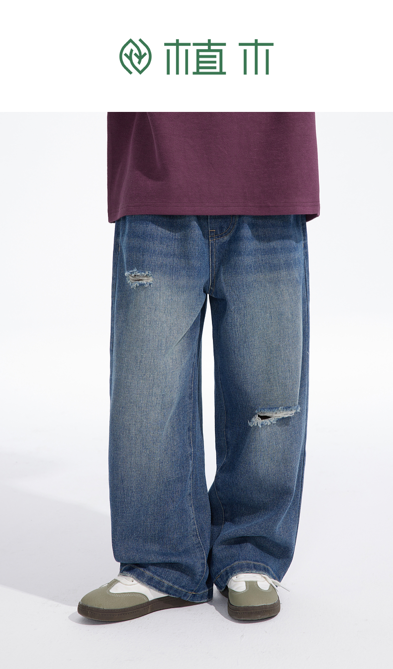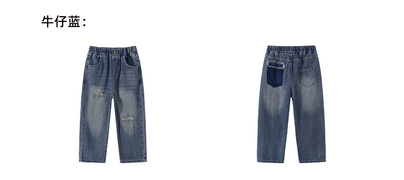 植木童装男童裤子2025新款春季中大童水洗破洞牛仔裤长裤儿童裤子