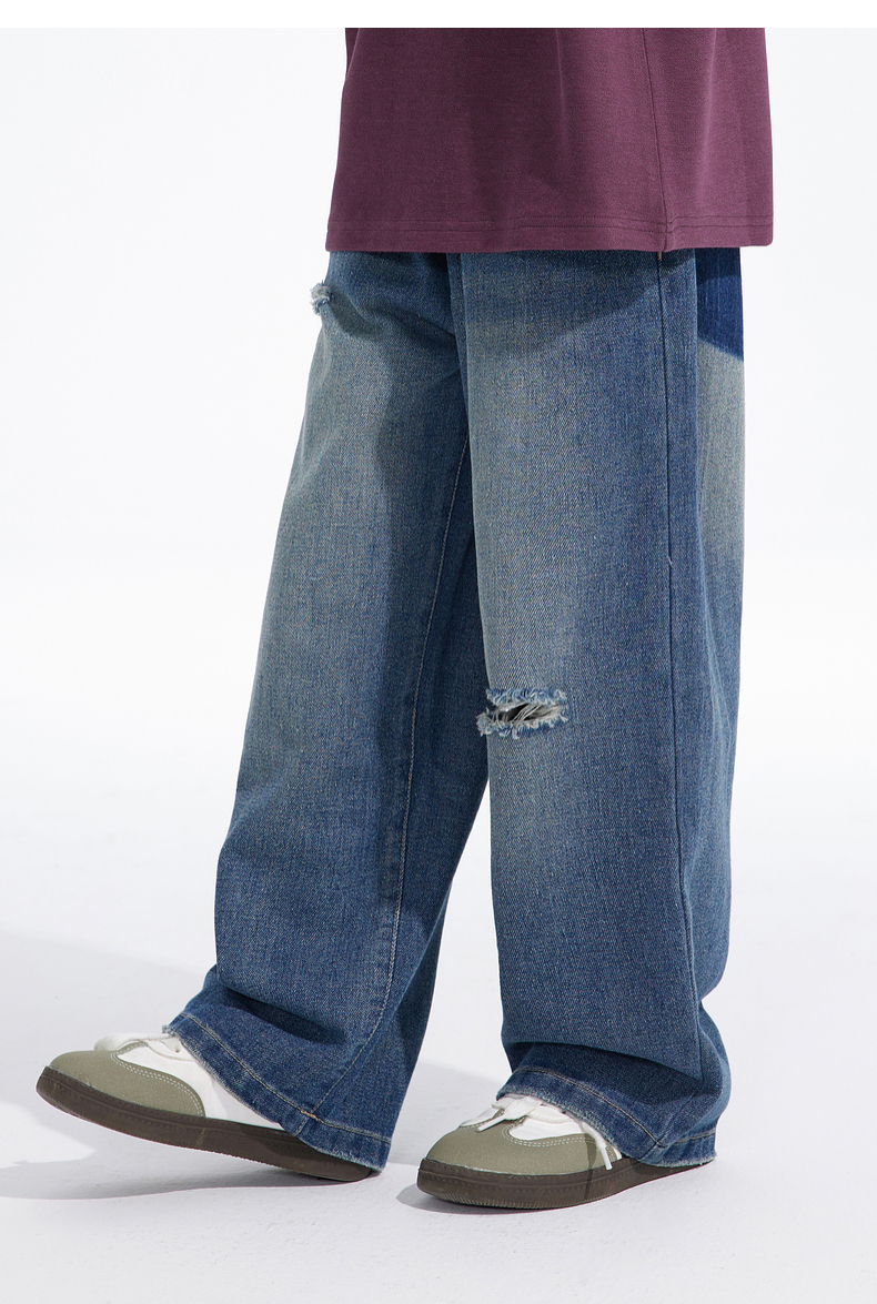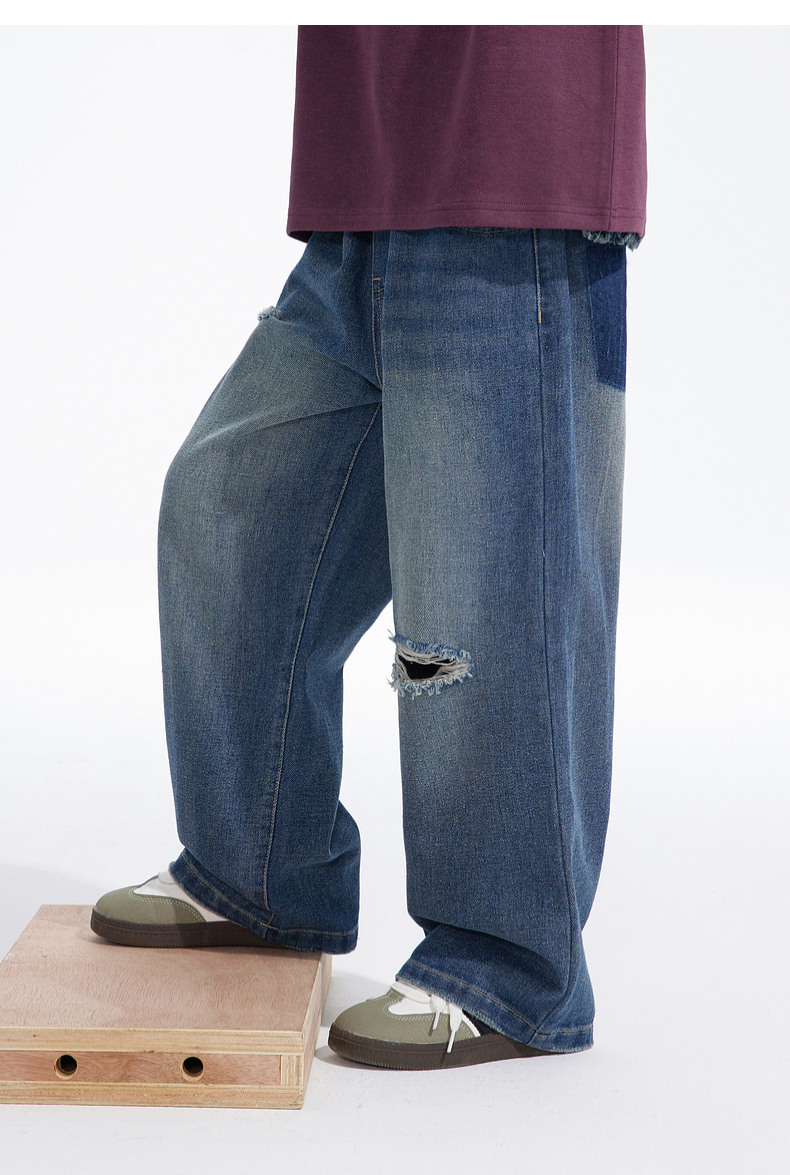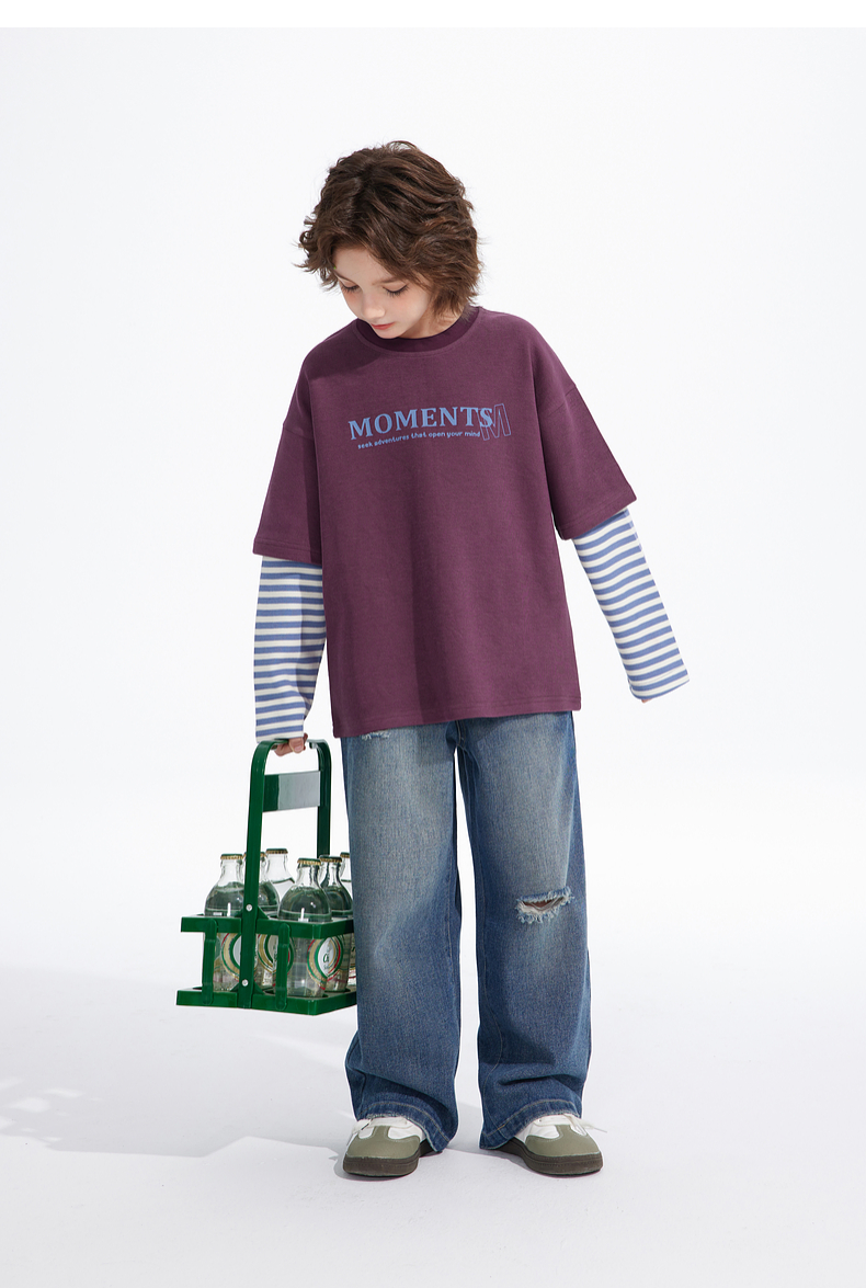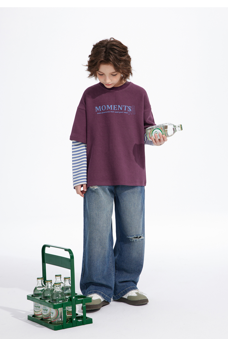 植木童装男童裤子2025新款春季中大童水洗破洞牛仔裤长裤儿童裤子