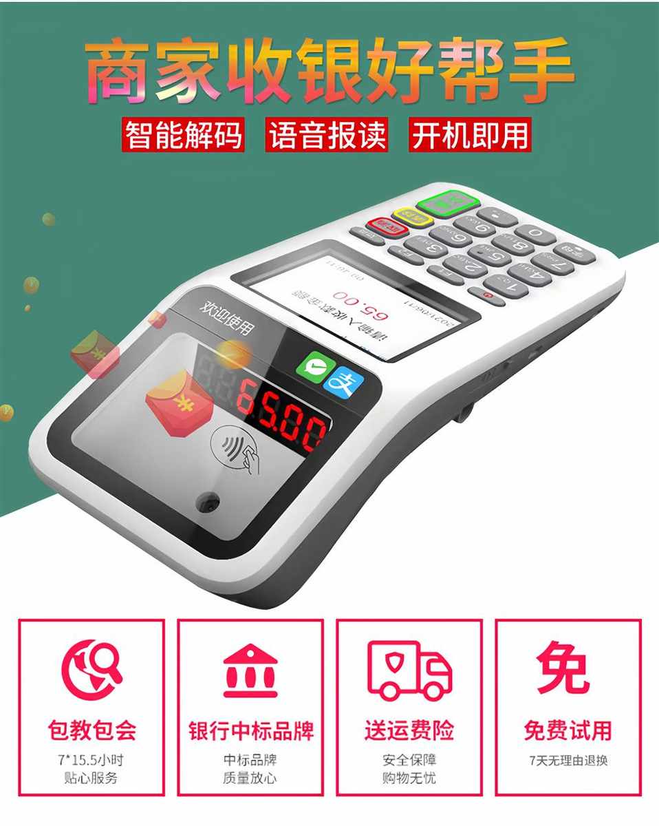 收银机超市便利店小型商家收钱收付款扫码手持新款商用餐饮收款机