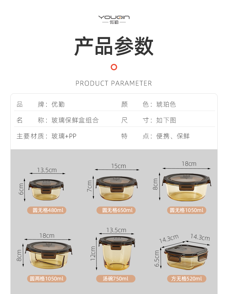 包邮优勤高硼硅玻璃饭盒微波炉加热冰箱收纳餐盒专用保鲜盒便当盒