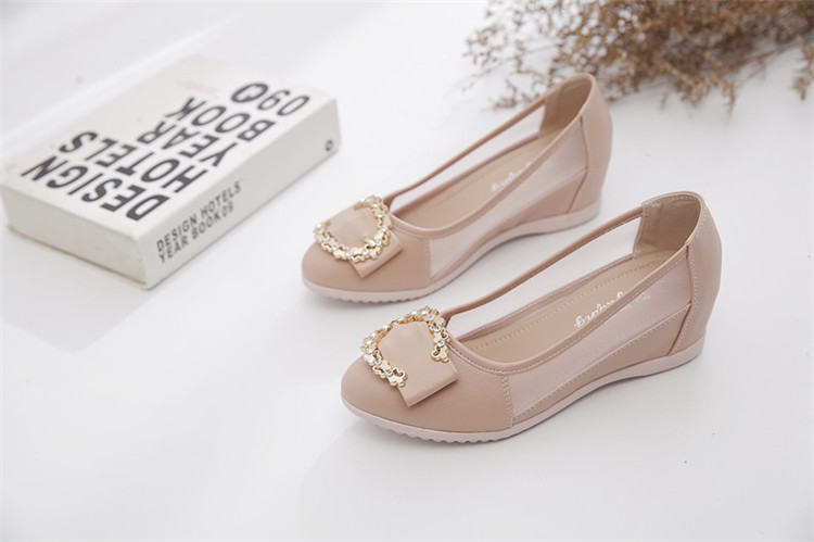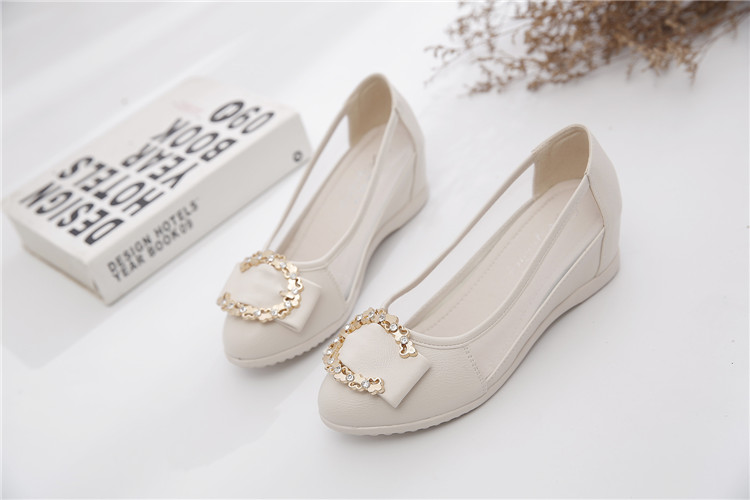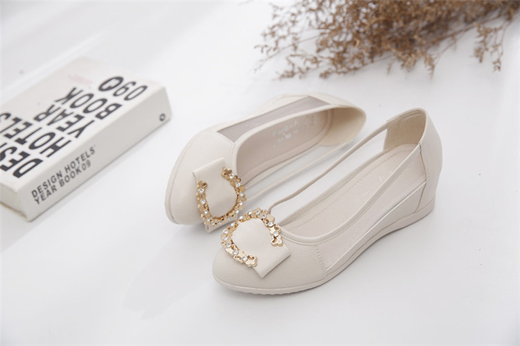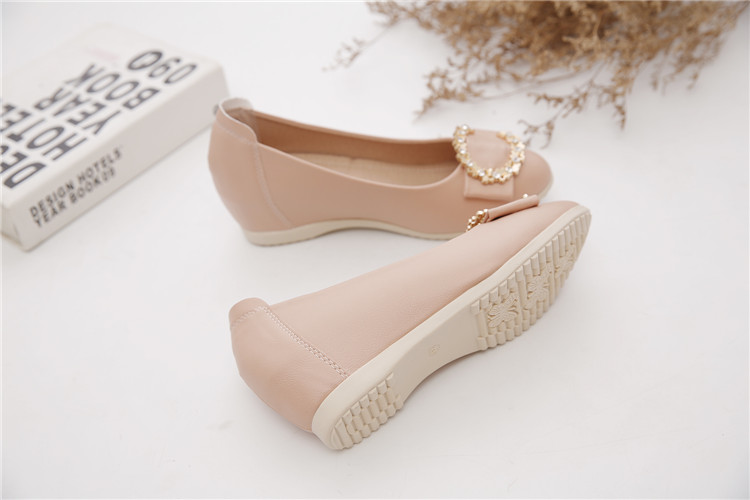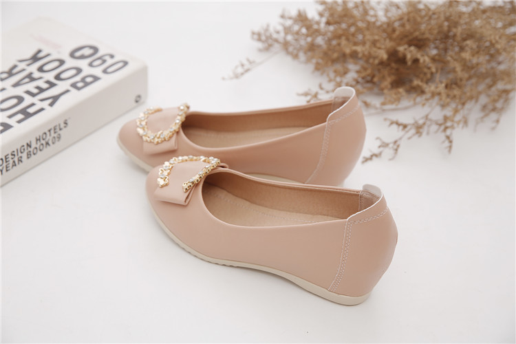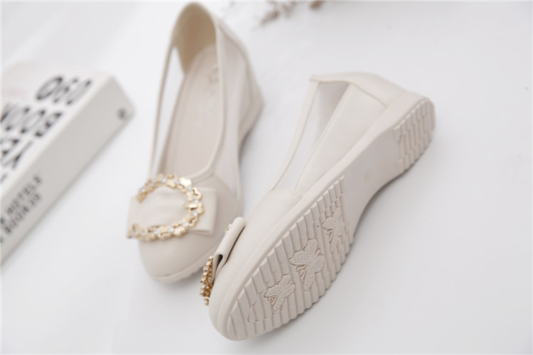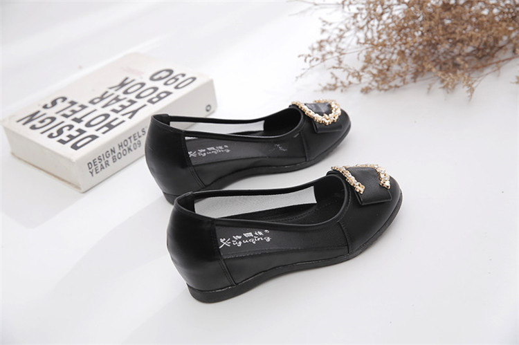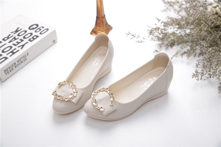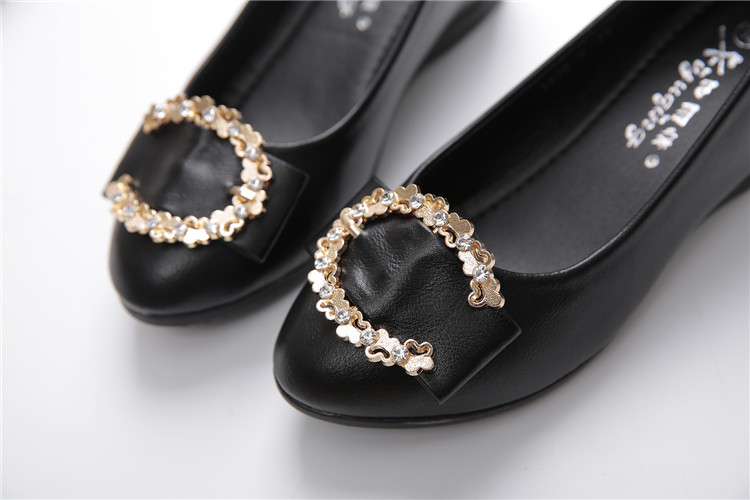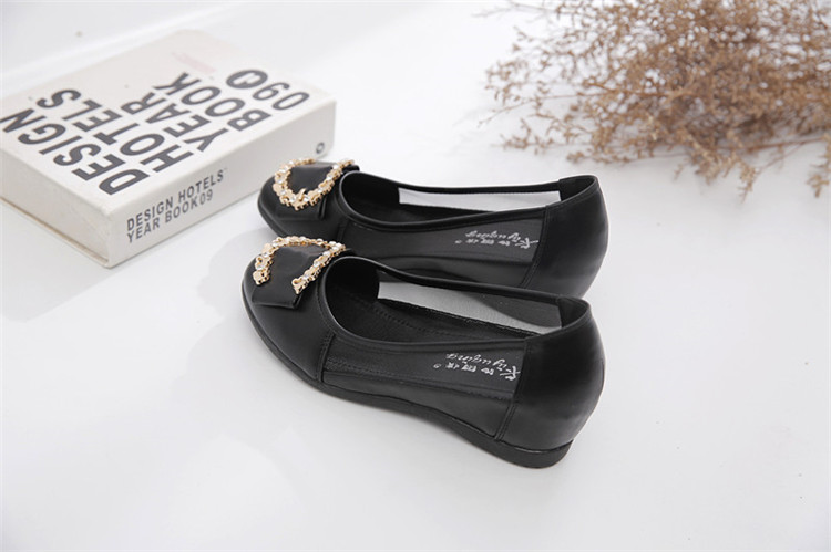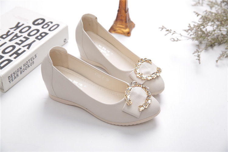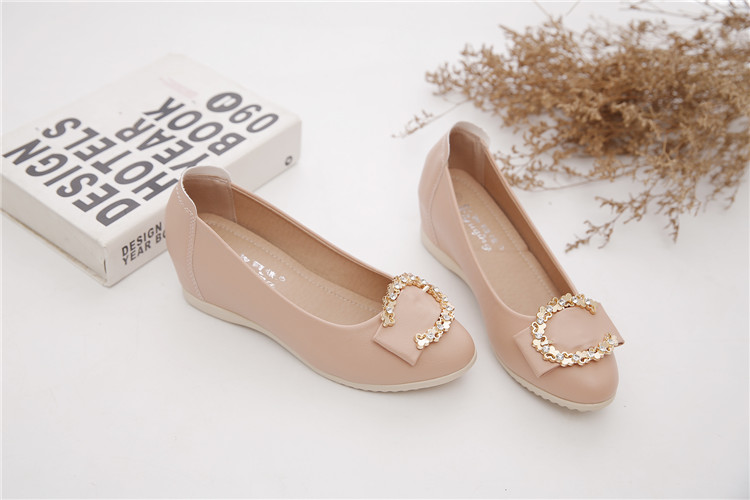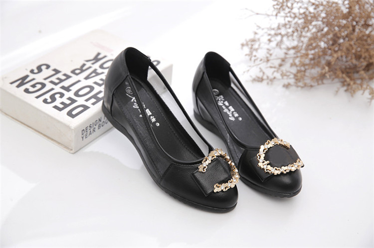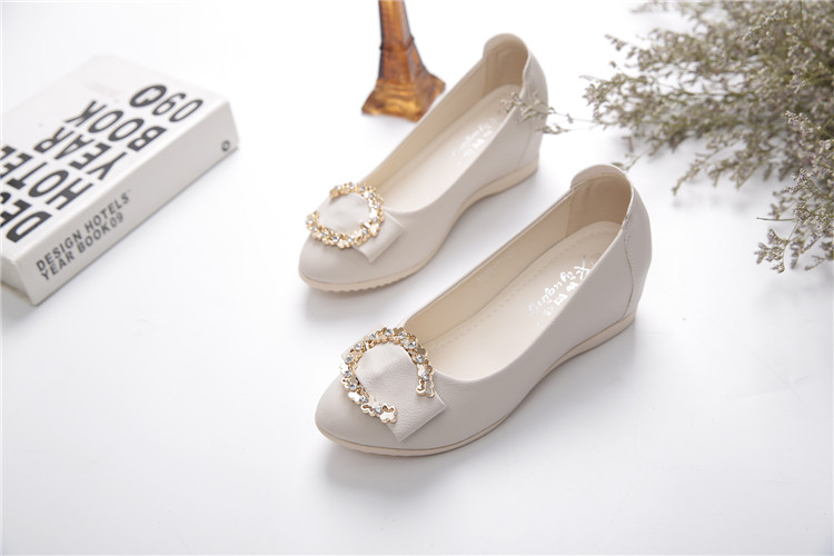 内增高单鞋女2025春季新款圆头舒适软皮妈妈鞋百搭水钻坡跟豆豆鞋