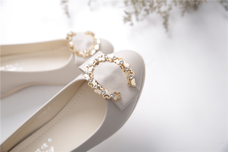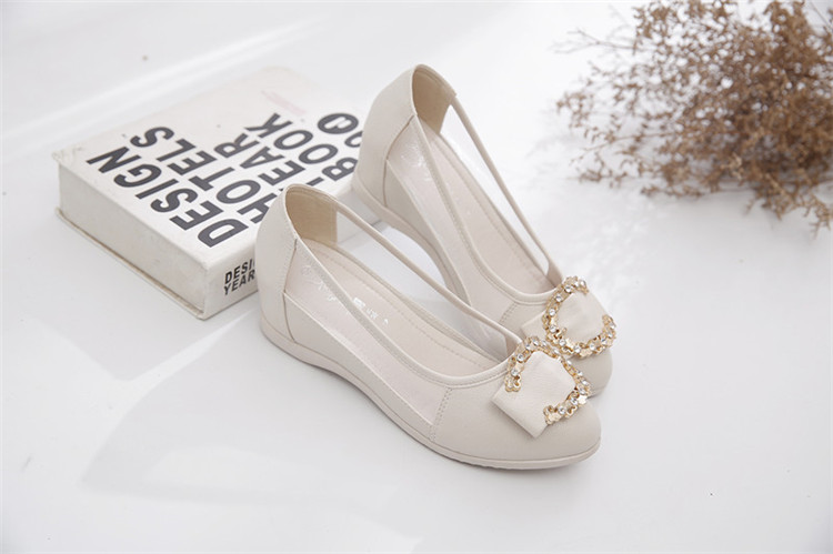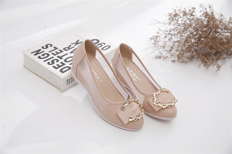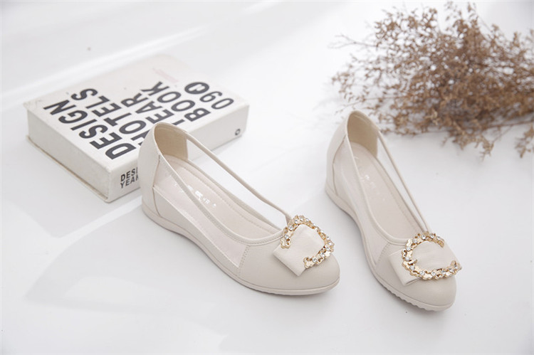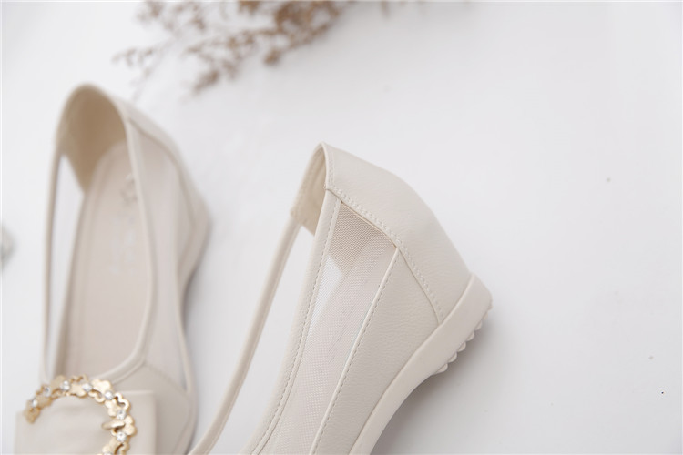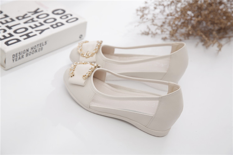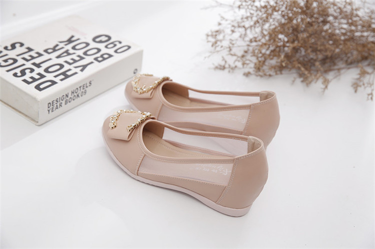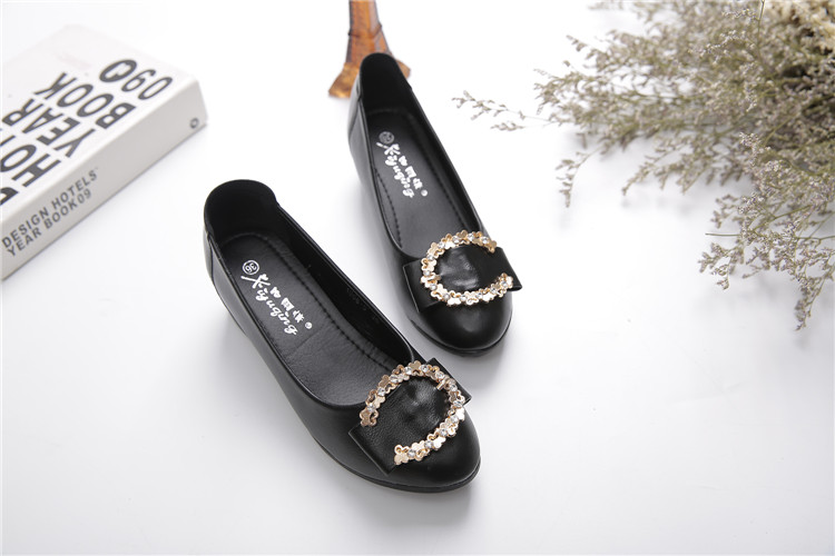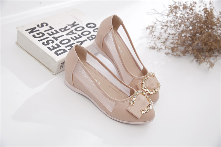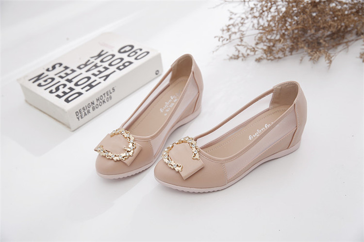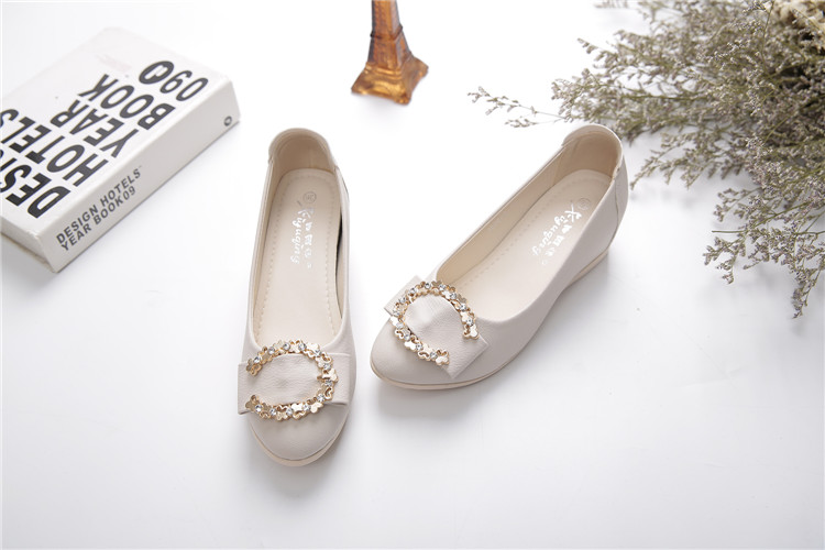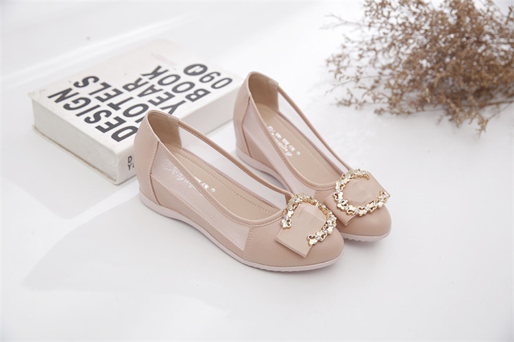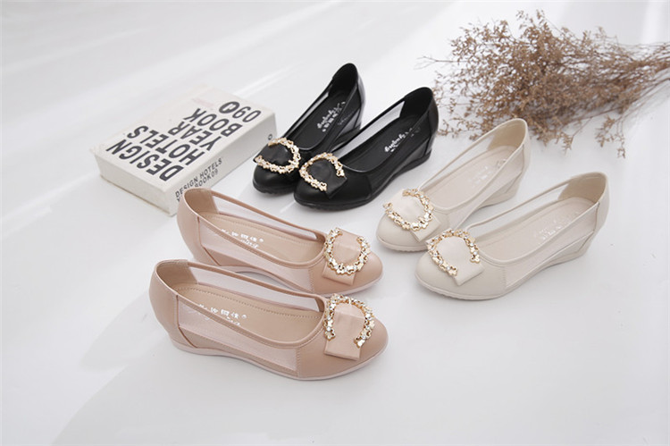 内增高单鞋女2025春季新款圆头舒适软皮妈妈鞋百搭水钻坡跟豆豆鞋