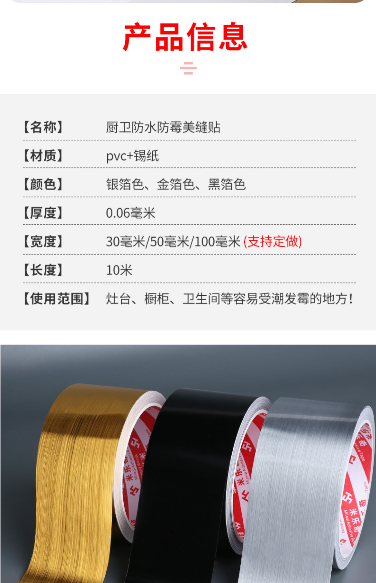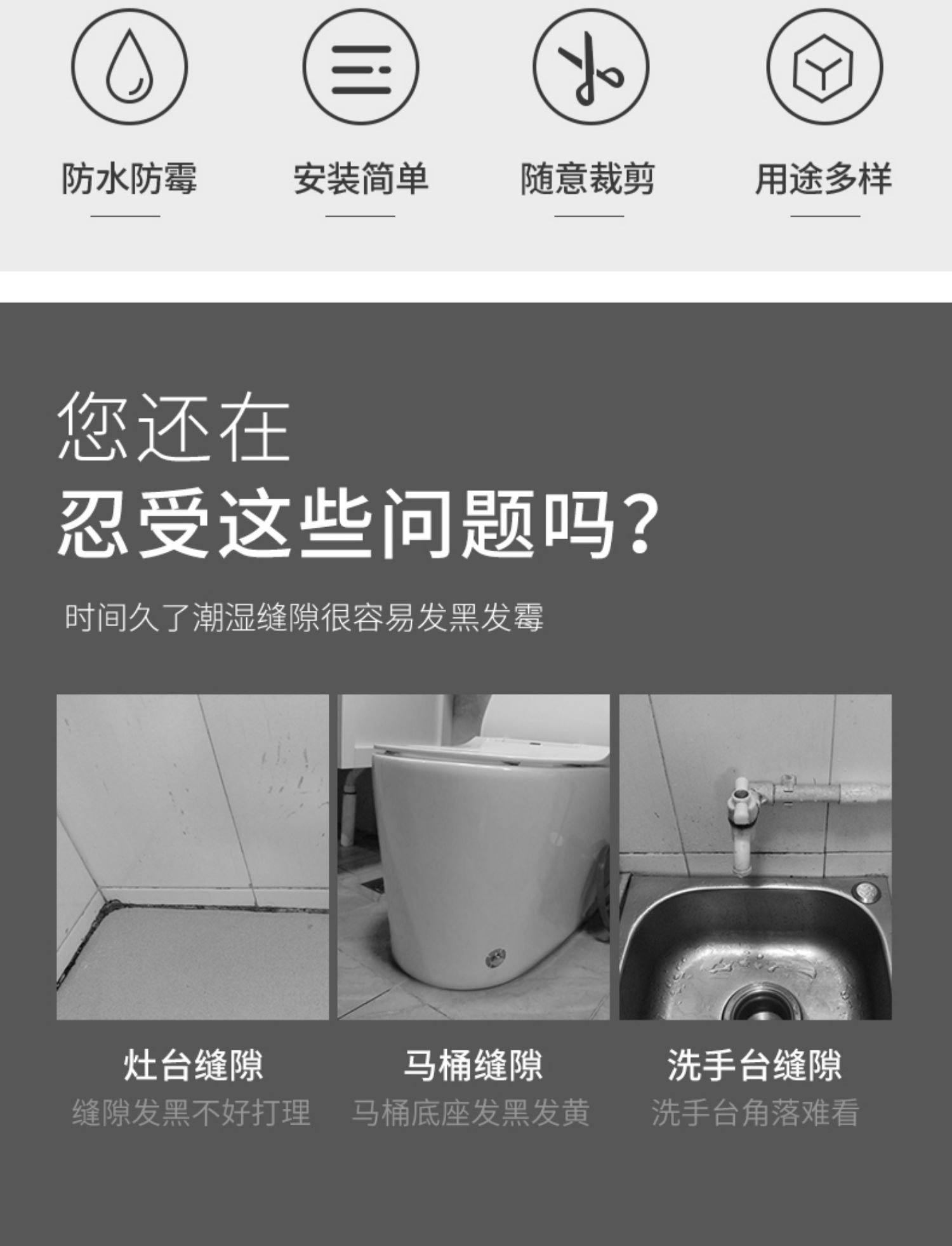 灶台防水封边美缝贴条厨房洗碗池洗菜盆缝隙防霉浴室水池密封胶条